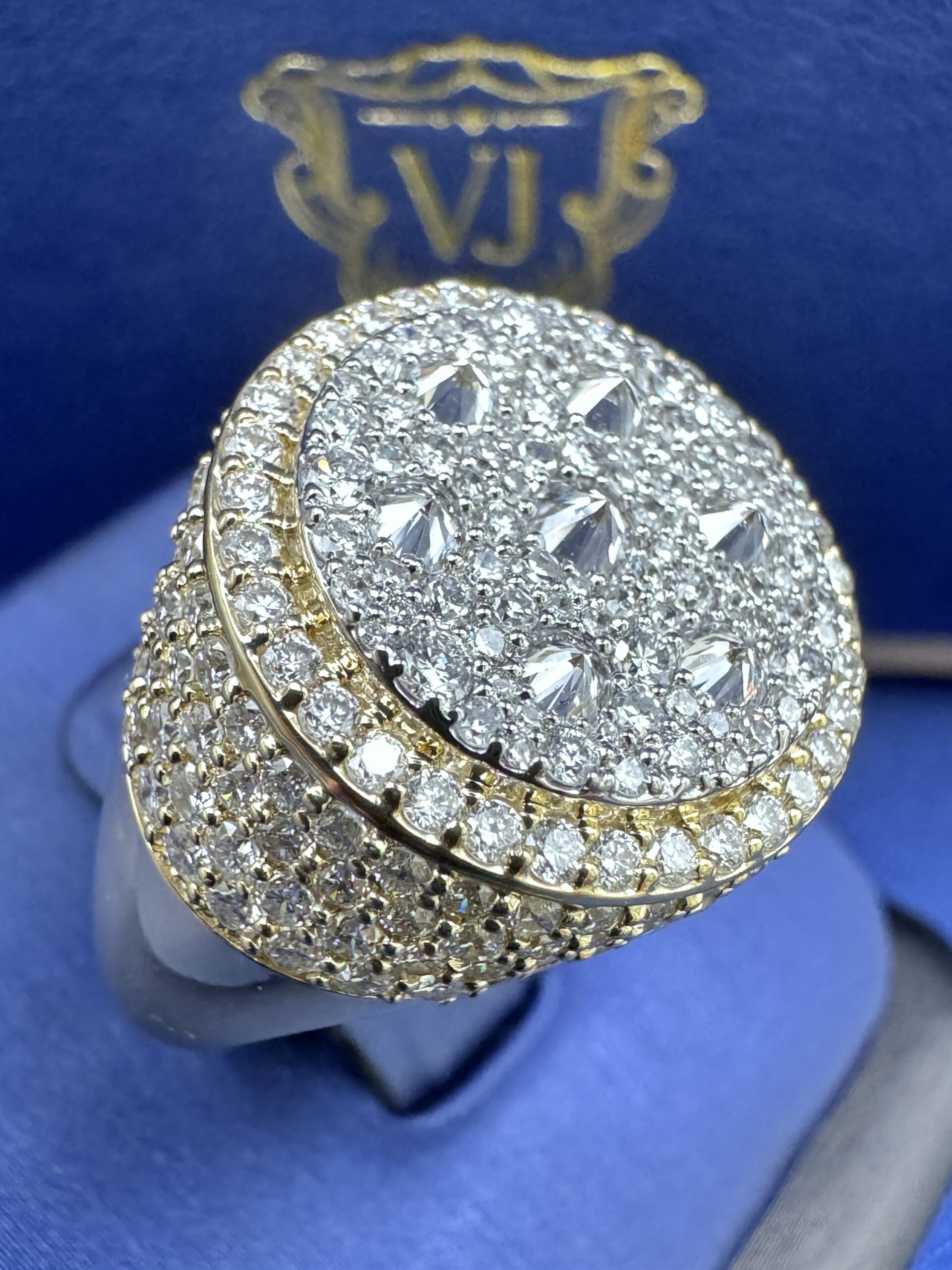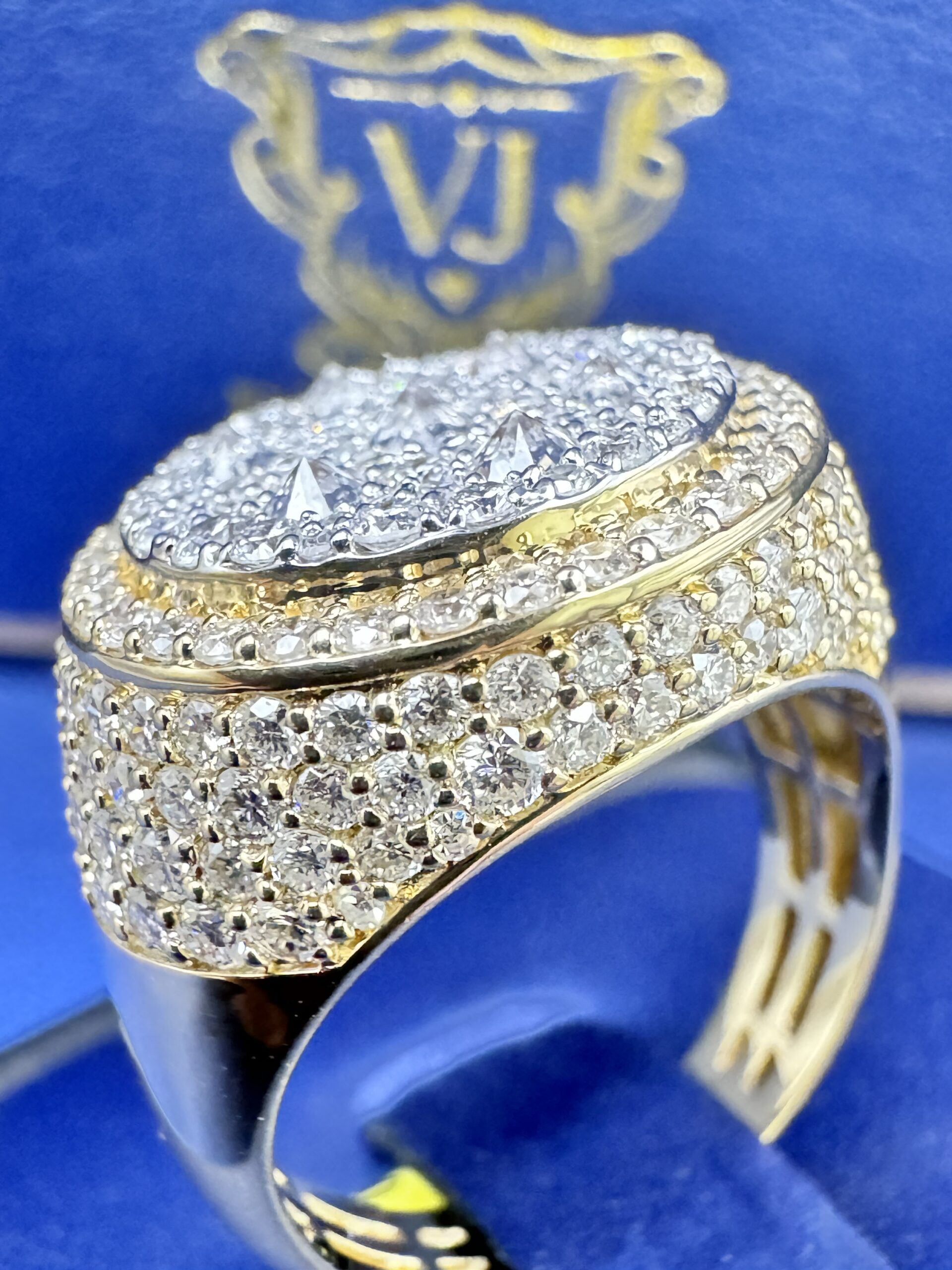 10KT Gold 3.40CT LabGrown Diamond Mens Ring Reverse Setting VVs Clarity F Color Size 10 Approx Gold Weight 8.5 Gram 19 MM Width