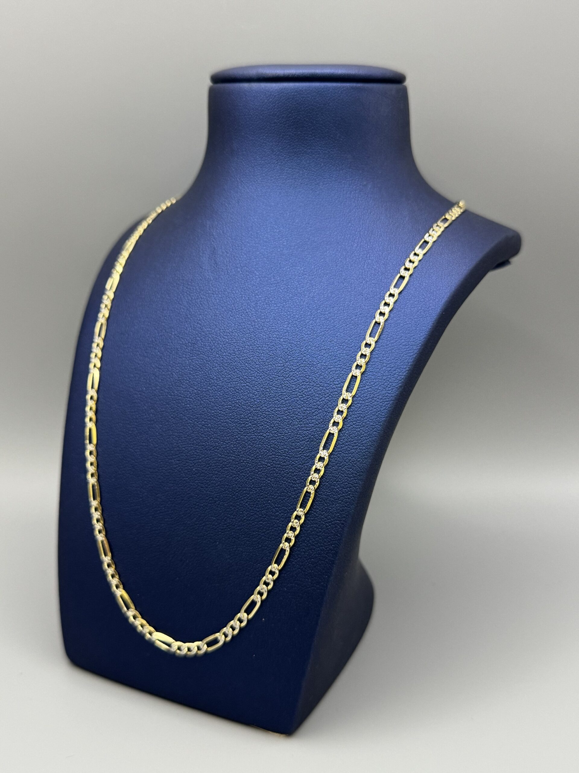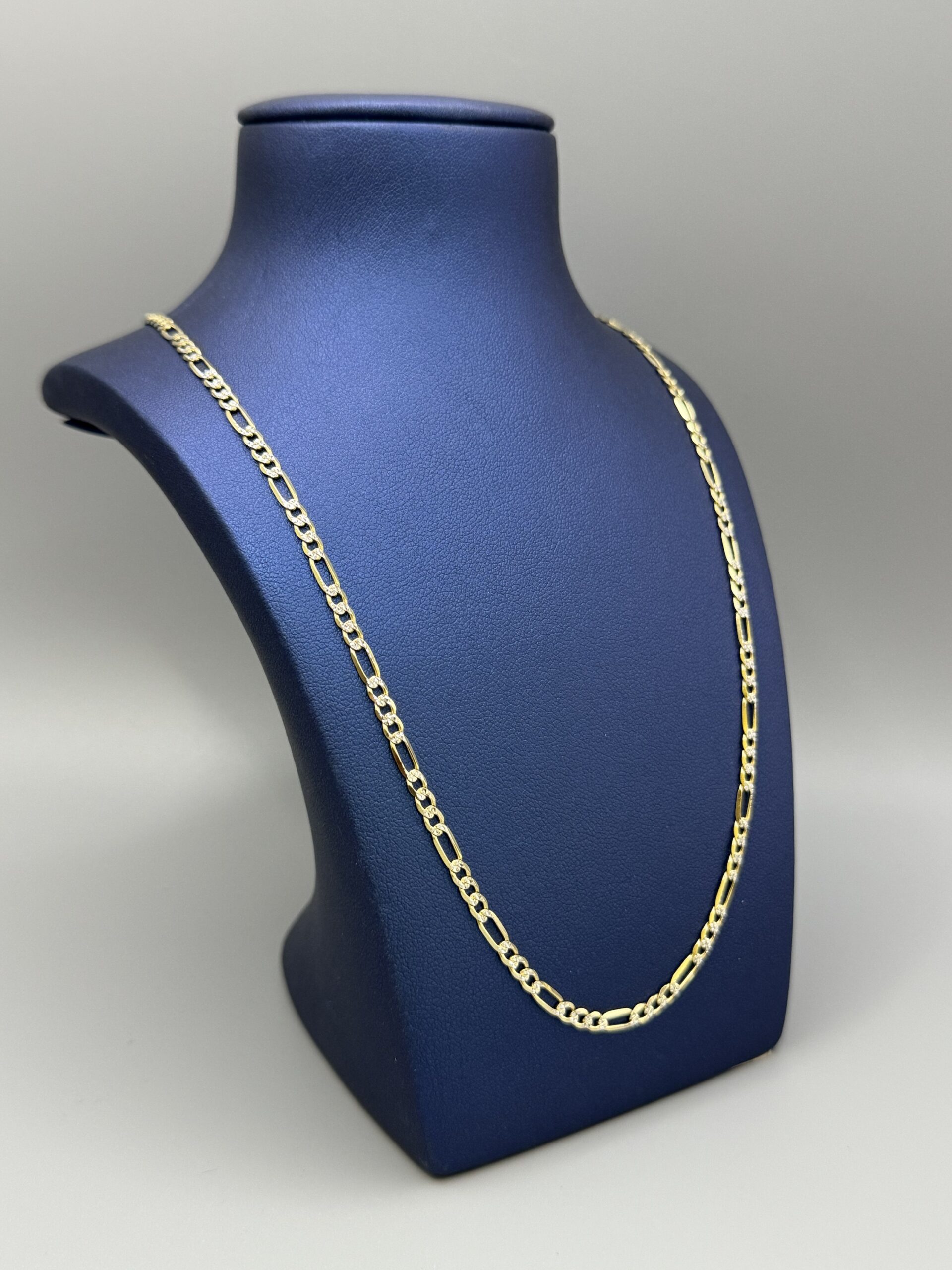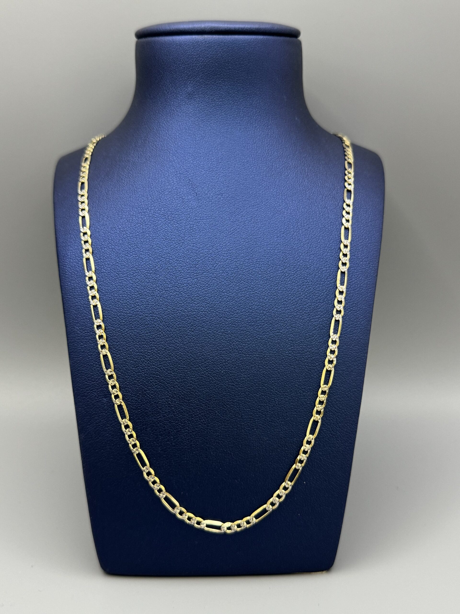 10KT Gold 4MM 20” Solid DiaCut Figaro Necklace