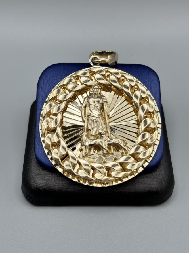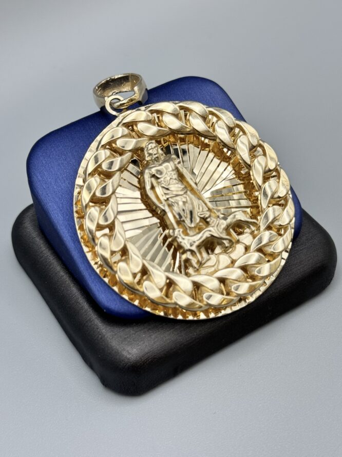 10KT Gold 3D Saint Lazaro Pendant With Solid Back Approx Gold Weight 18.7 Gram 2.30″ Tall By 1.75″ Wide