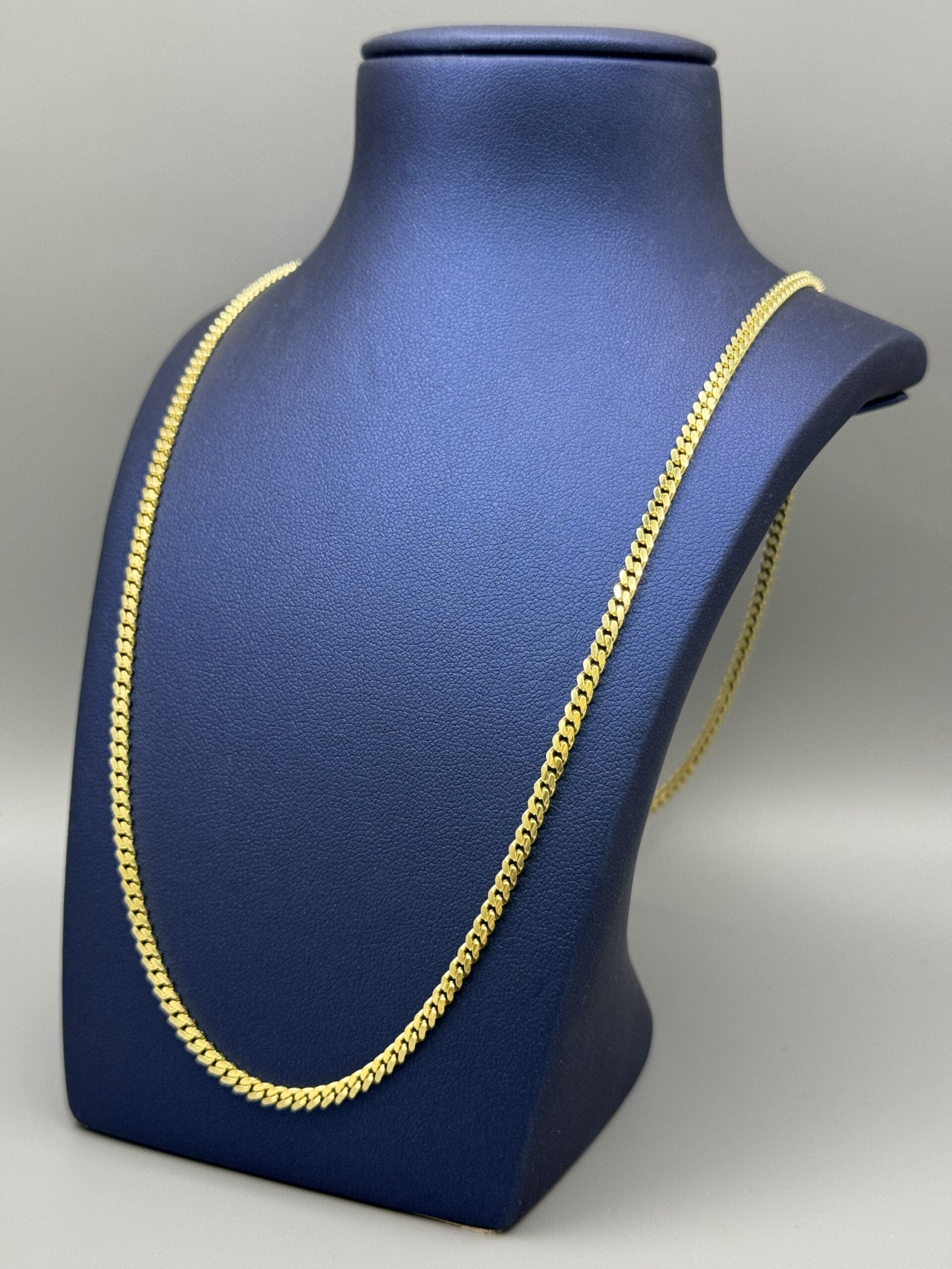 10KT Gold 3MM Solid MiamiCuban Necklace 24″