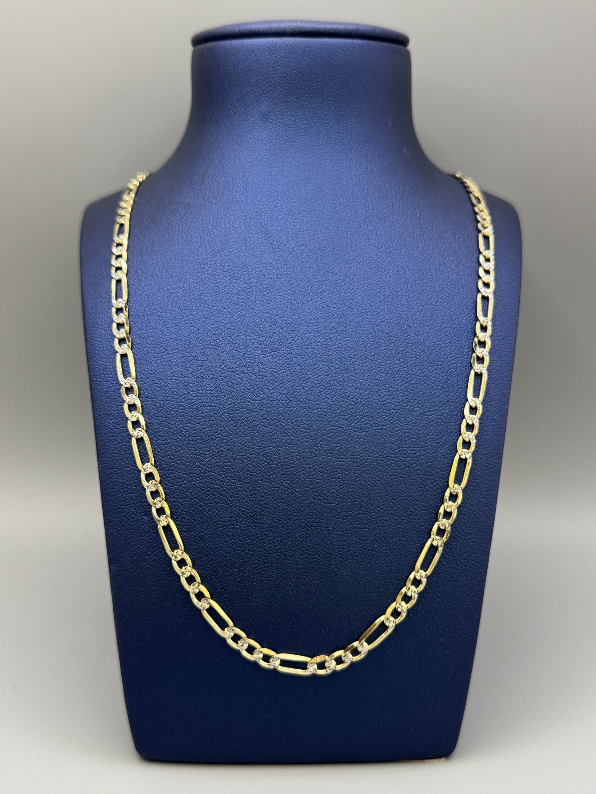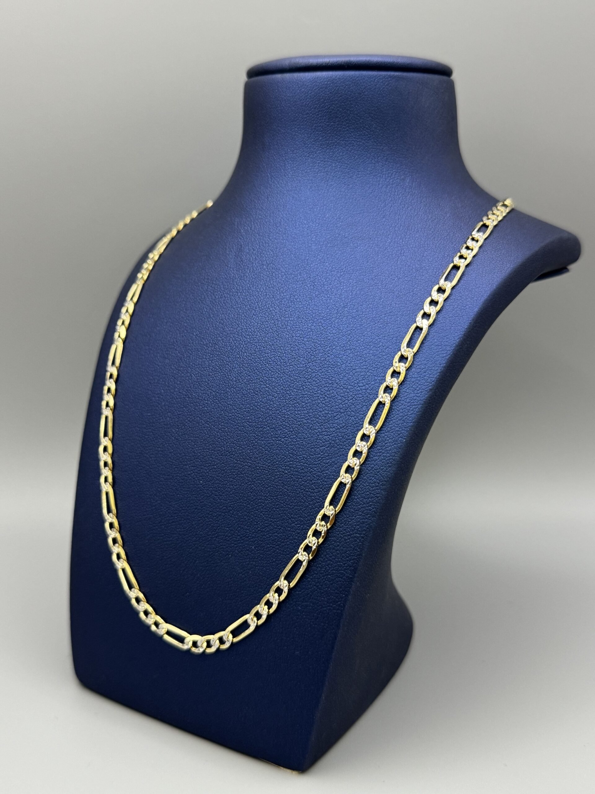 10KT Gold 4MM 20” Solid DiaCut Figaro Necklace