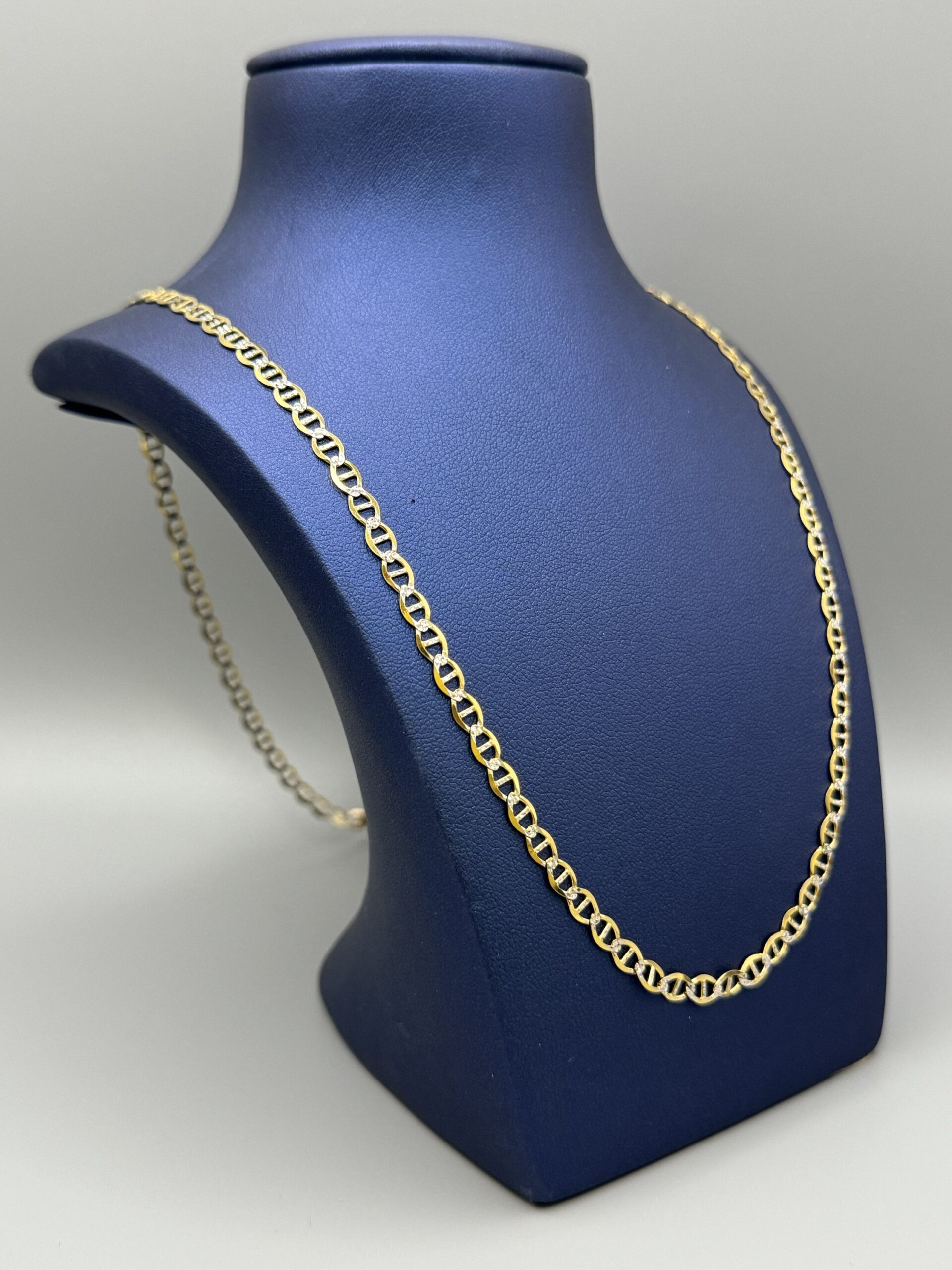 10Kt Gold 4MM DiaCut Mariners Link Necklace 22”