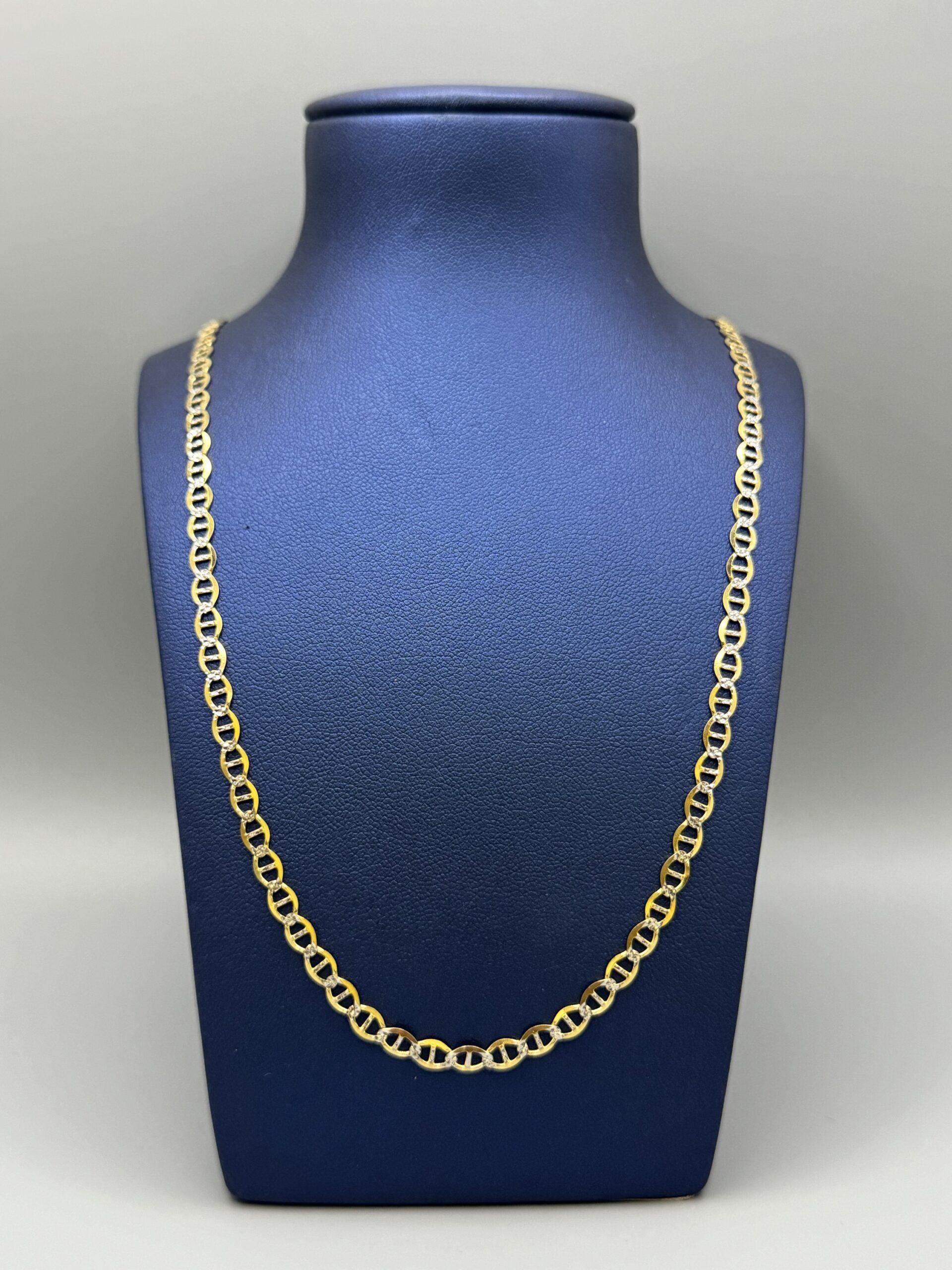 Adorn your neck with elegance! This 10Kt Gold 22” necklace features 4MM DiaCut Mariners links, weighing approximately 7.2 grams. A timeless piece for those who love to shine!