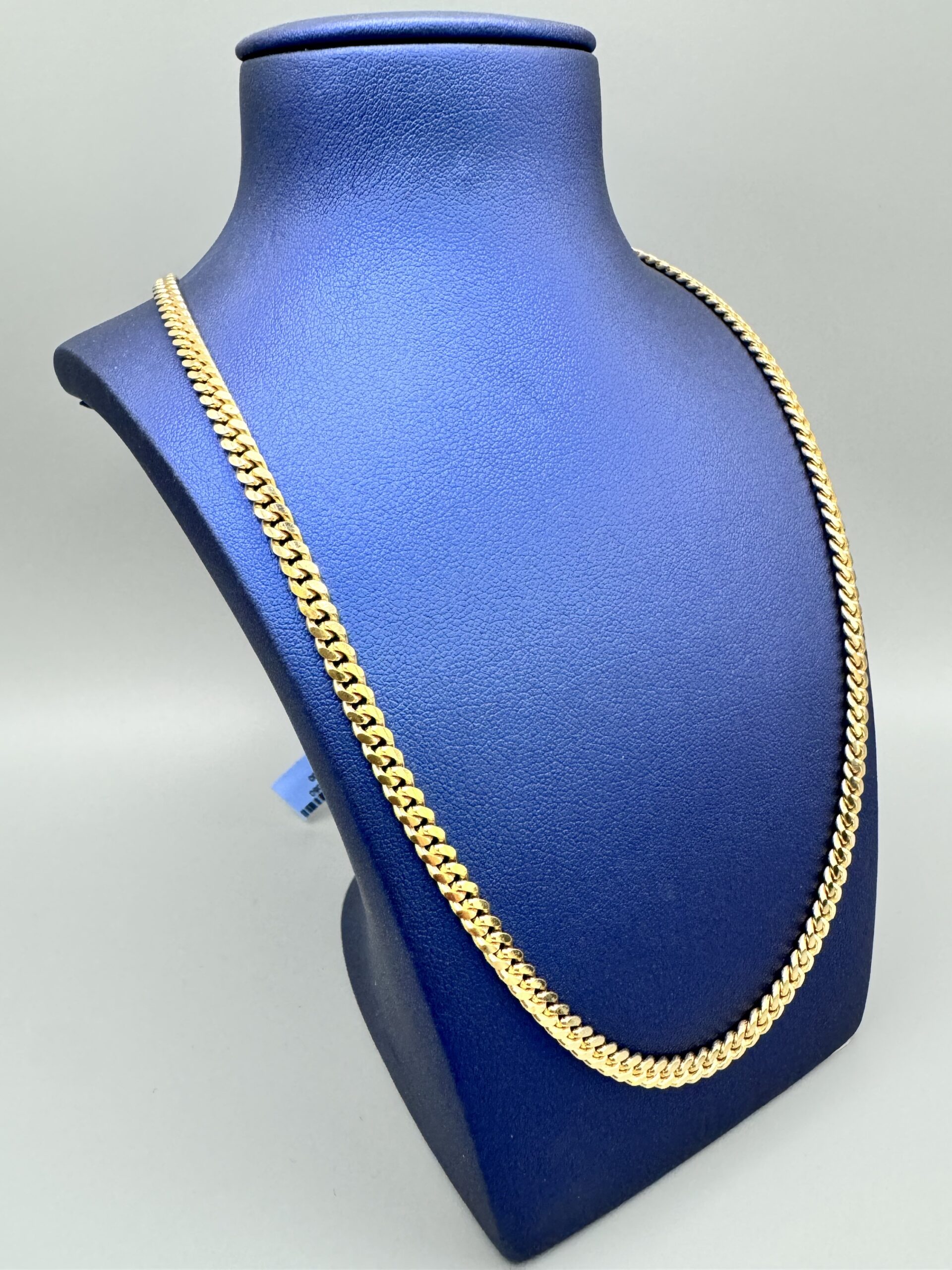 10KT Gold 4MM Solid MiamiCuban Necklace 22”