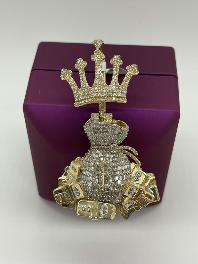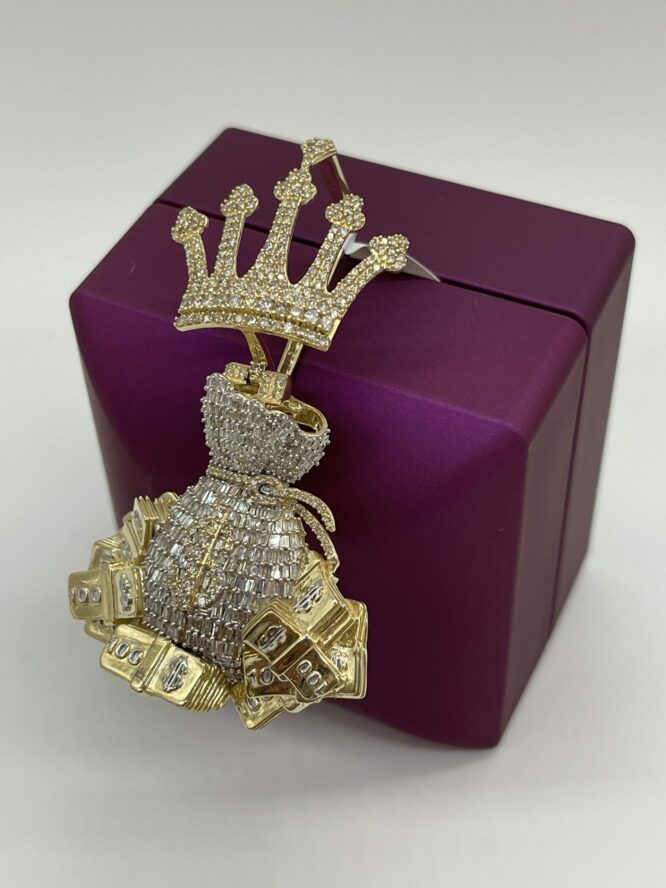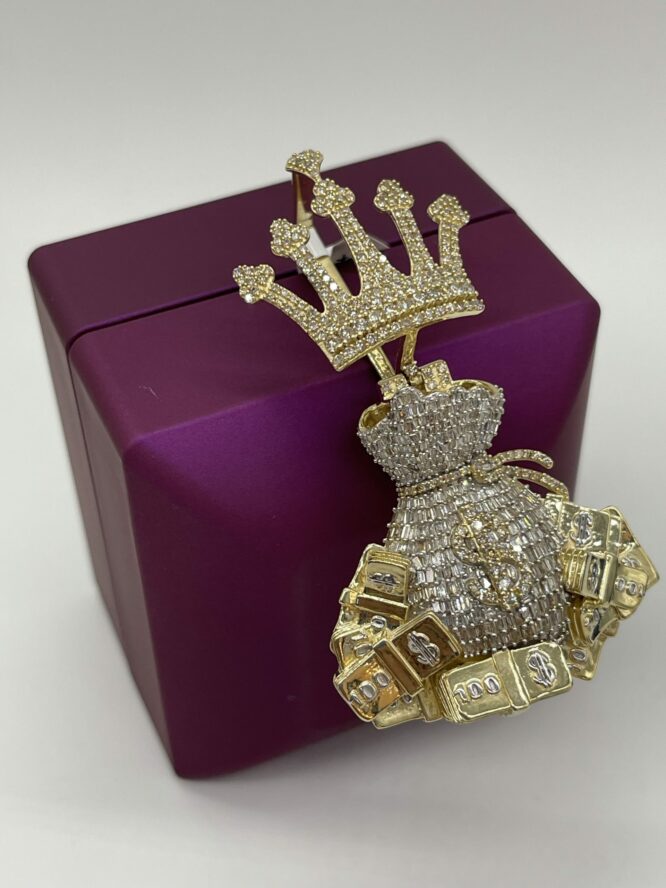 10Kt Gold 5.50CT Diamond Money Bag Pendant With Crown Bell Custom Made