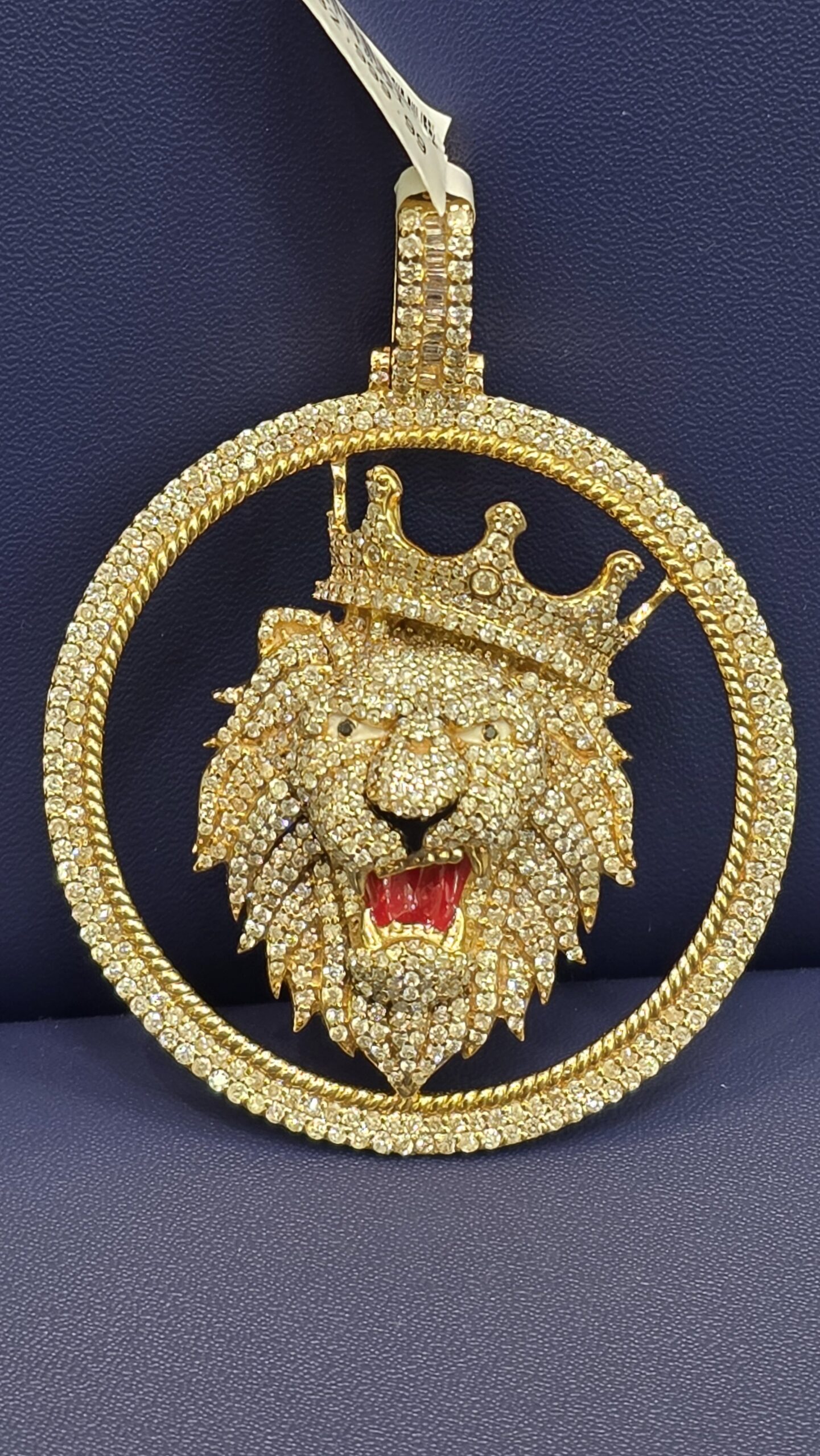10KT Gold 6.00CT Diamond Lion Pendant 2.5″ Tall 2″ All Around Approx Gold Weight 35.2 Grams
