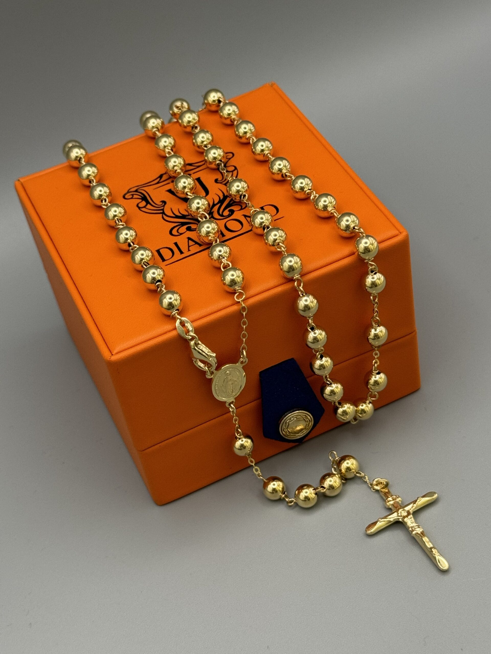 10KT Gold 6MM Rosary Necklace 24” Solid Shinny Beads Approx Gold Weight 14.8 Gram