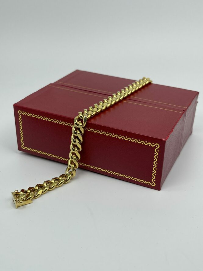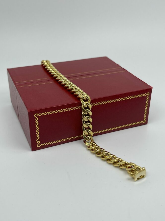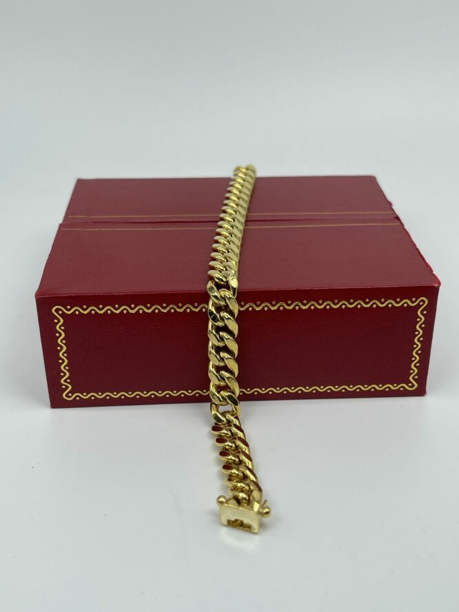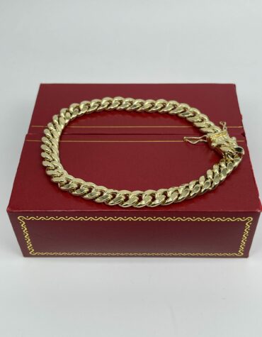10KT Gold 7.5MM Semi Solid MiamiCuban Bracelet 9″ Approx Gold Weight 14.61 Grams
