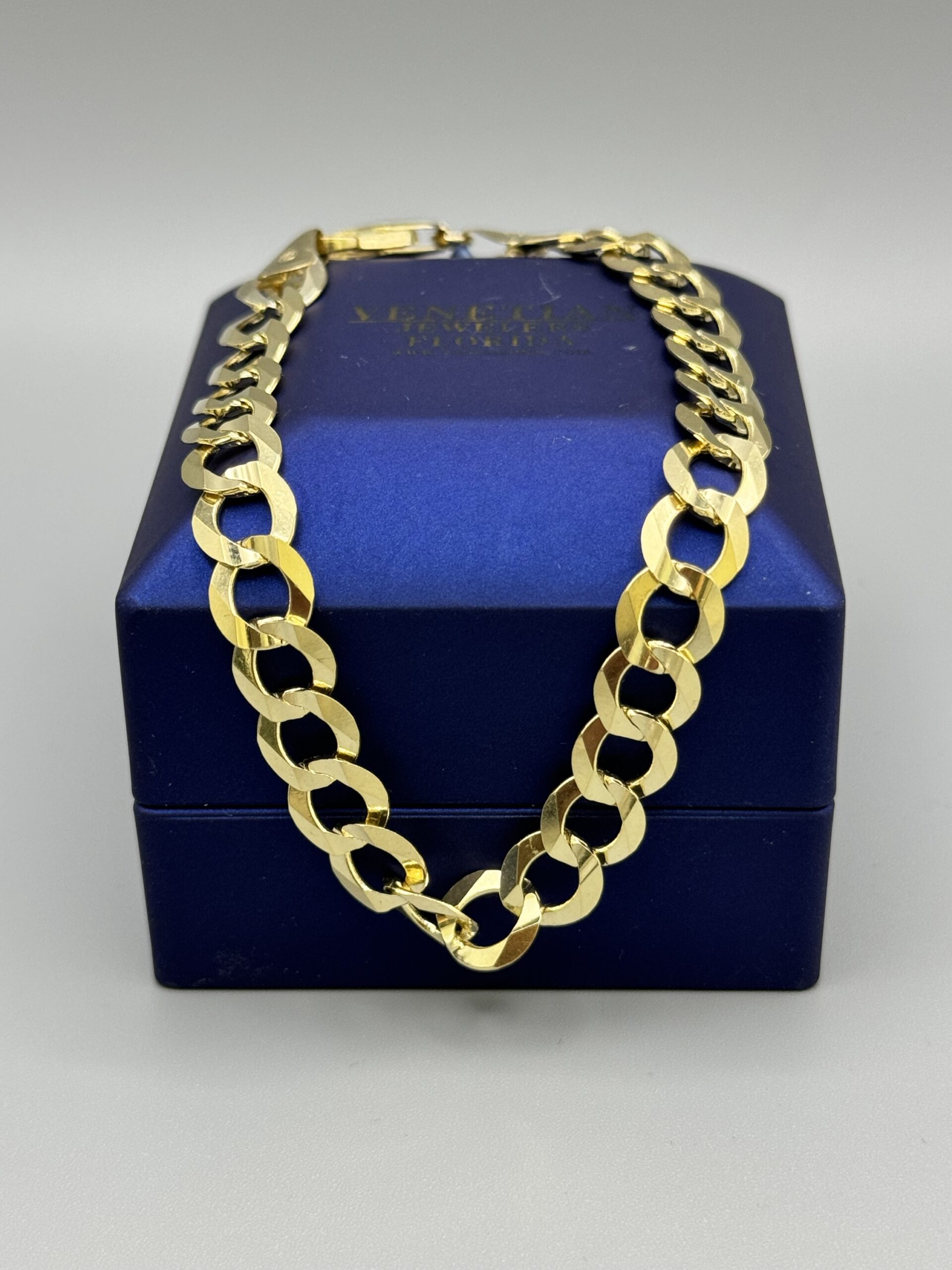 Elevate your style with this stunning 10KT Gold CurbLink Solid Bracelet. Measuring 8.5 inches with a gleaming 8.5MM link design, it weighs approximately 12.1 grams for a luxurious feel.