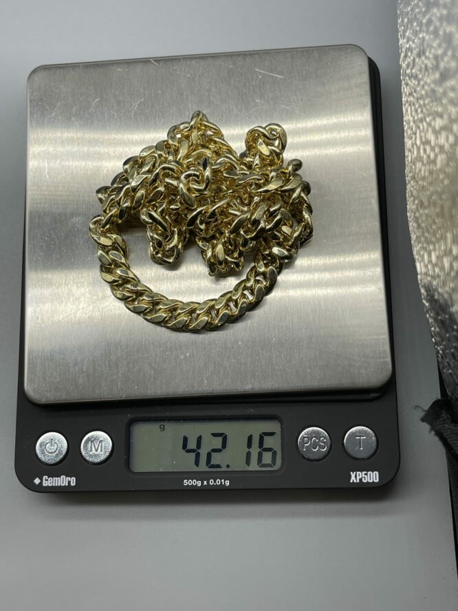10KT Gold Semi Solid 8.5MM MiamiCuban Necklace 22″ Approx Gold Weight 42.16 Grams