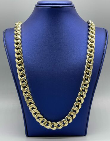10KT Gold 11MM Semi Solid MiaCuban Necklace 26”