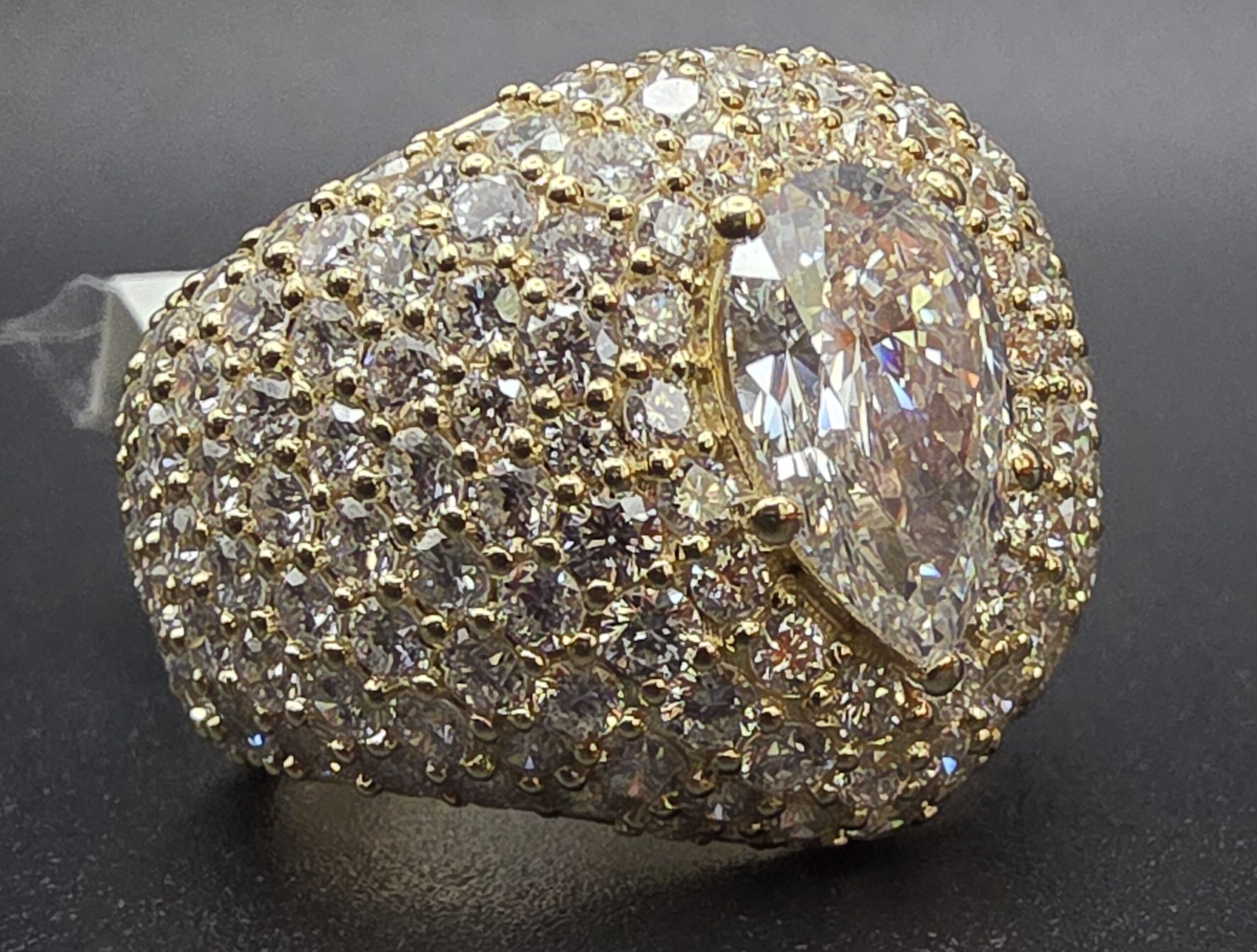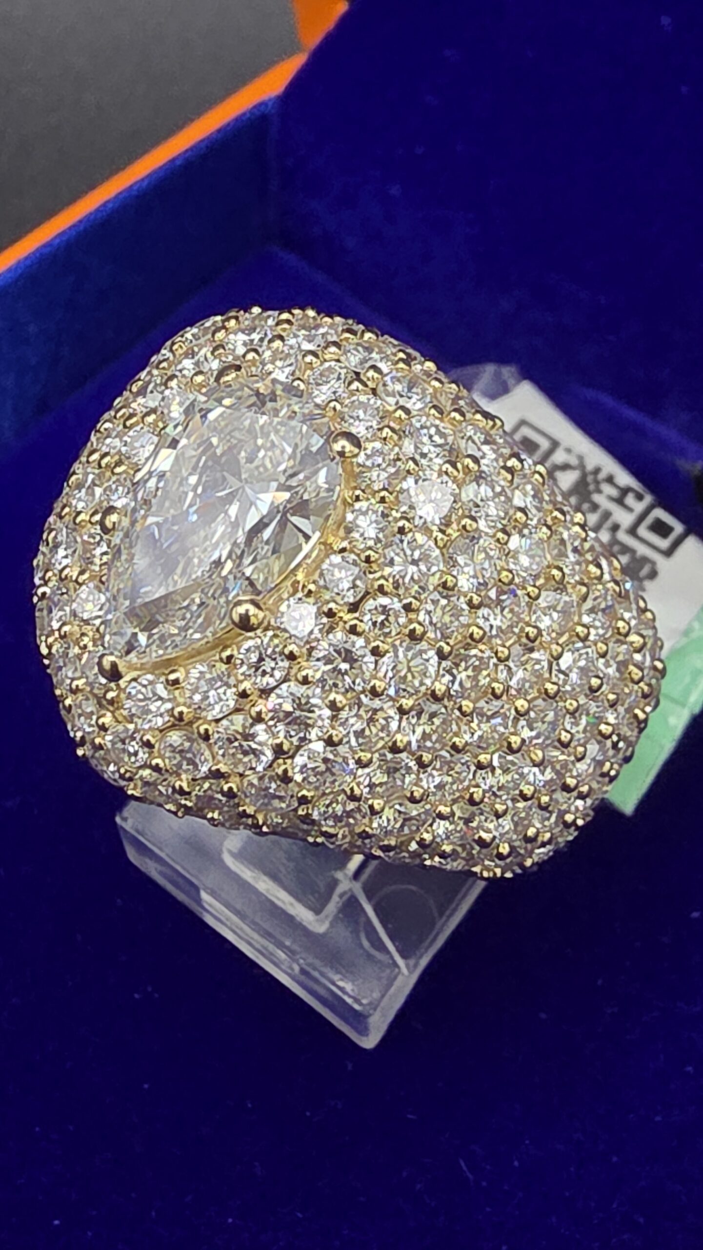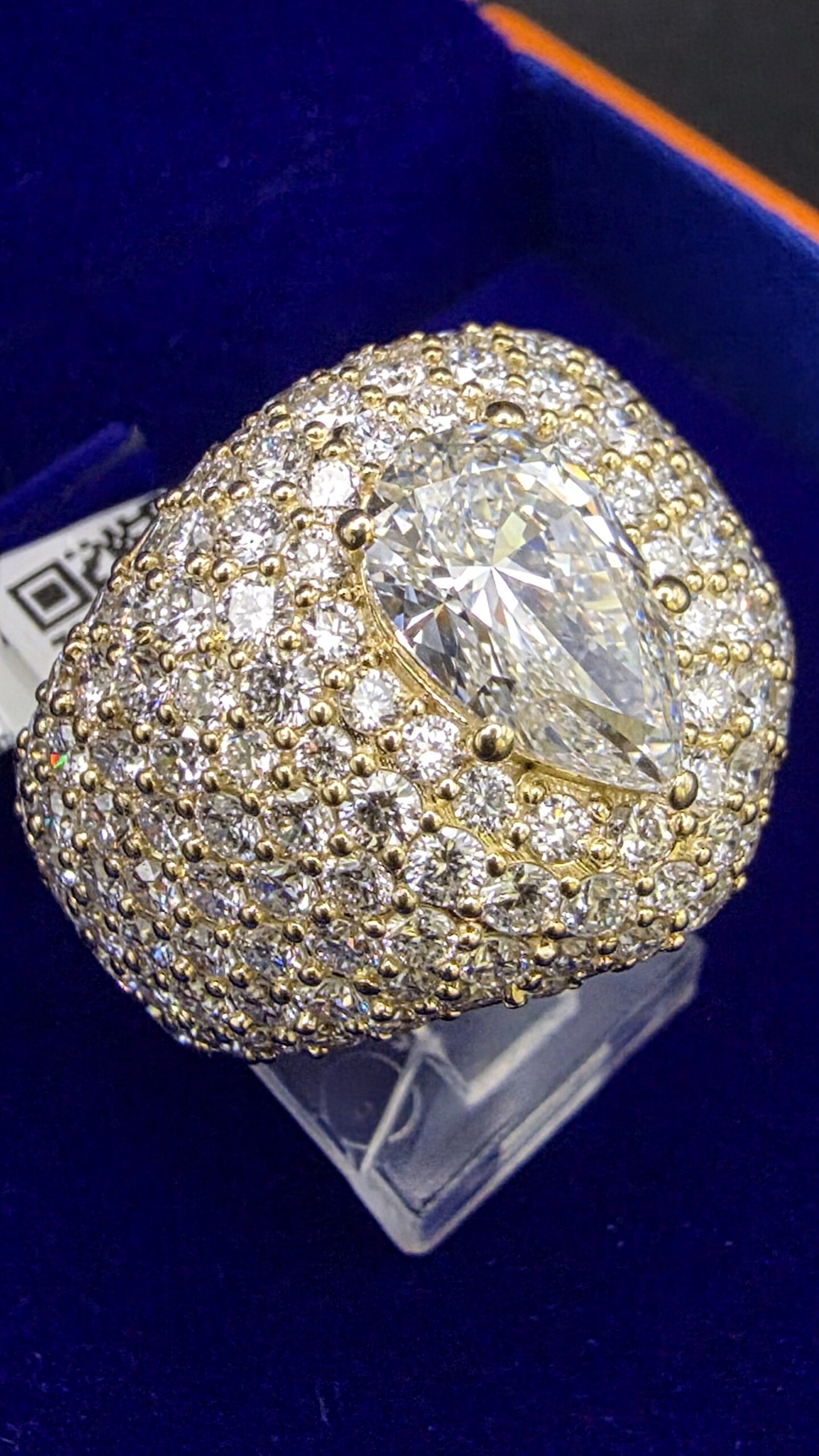 10KT Gold 9.93CT LGD Diamond Mens Ring Vvs Clarity F-G Color Size 10 Approx Gold Weight 16.0 Gram 2.53CT Center Pear Brilliant Cut Solitaire