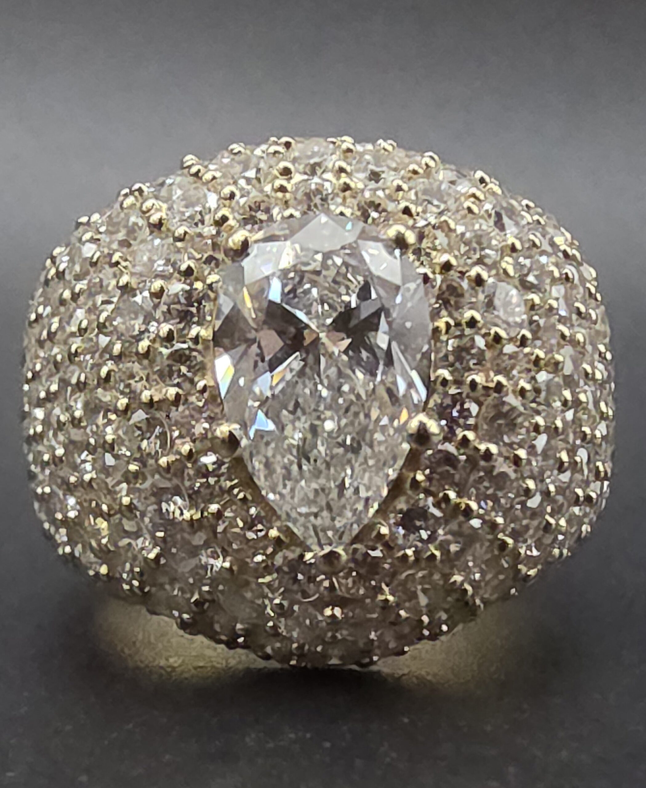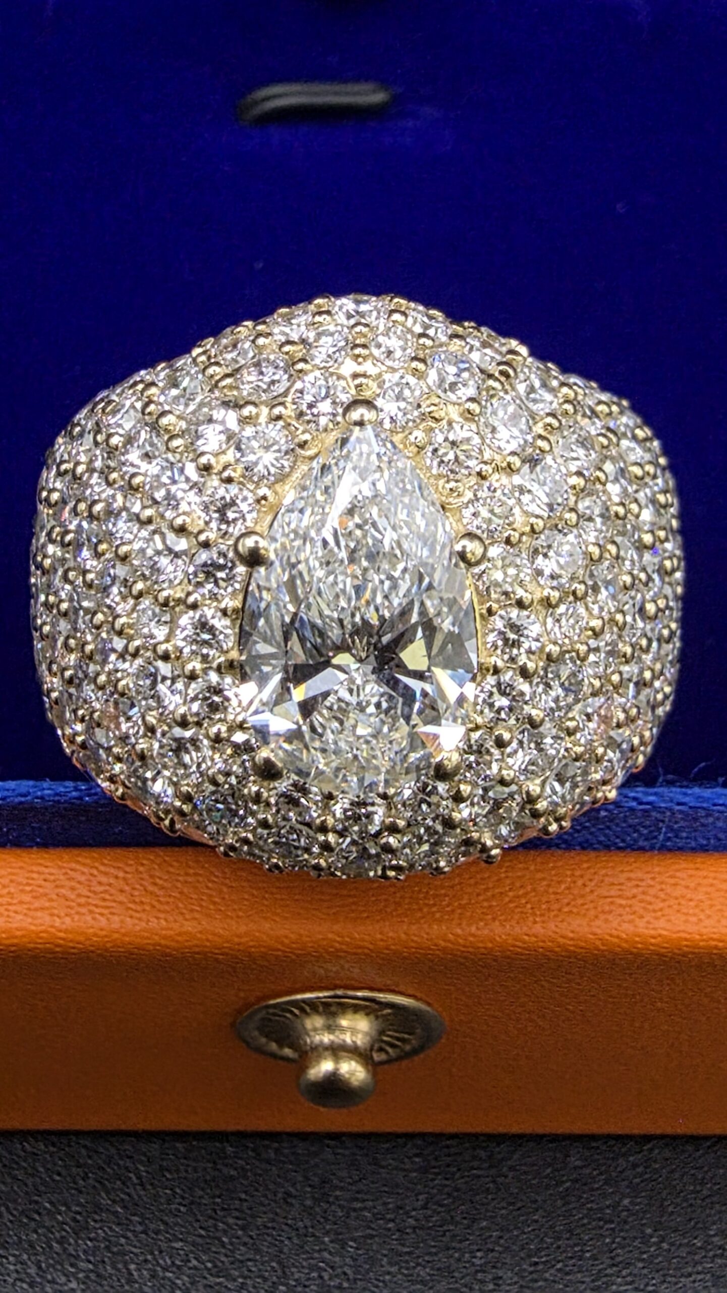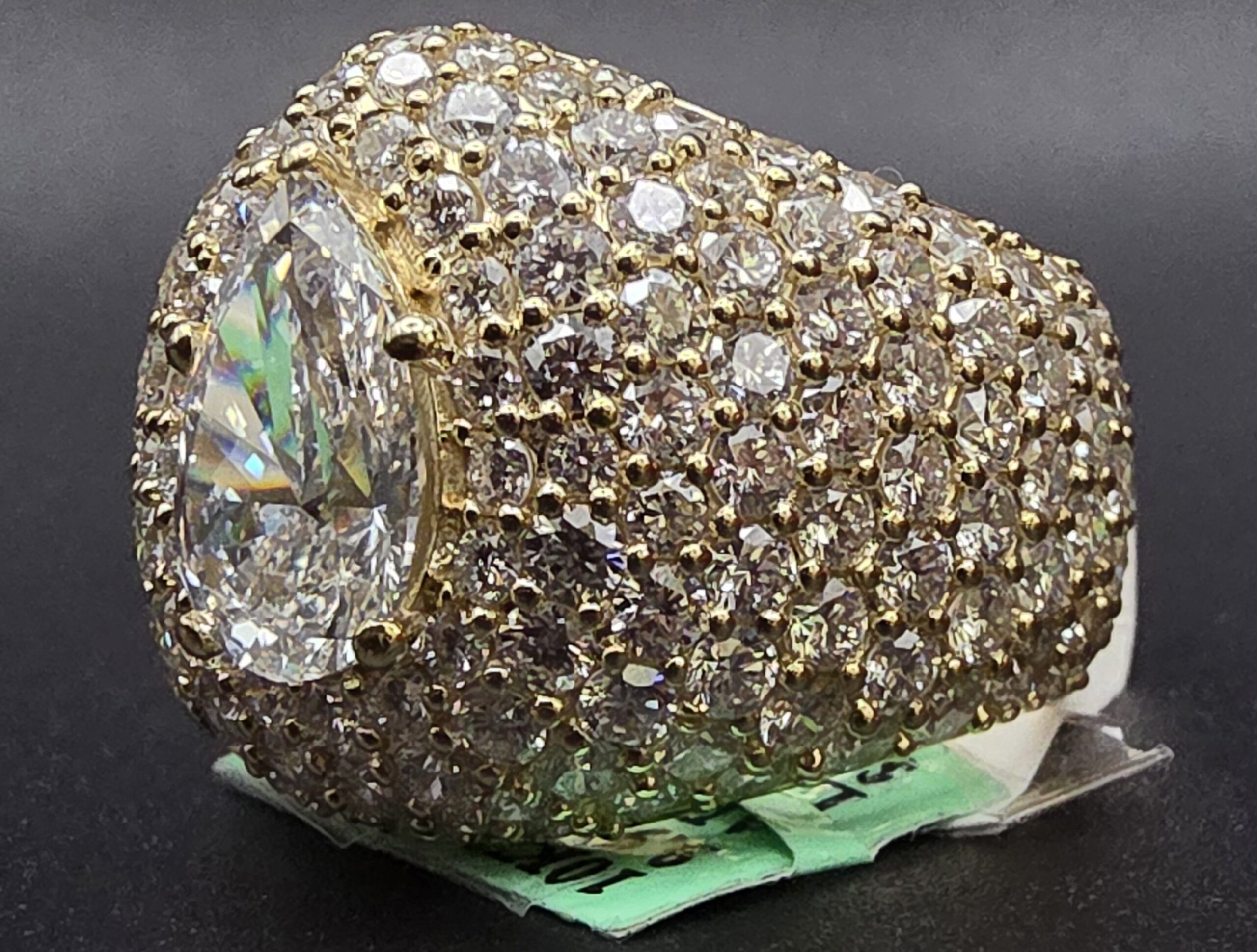 10KT Gold 9.93CT LGD Diamond Mens Ring Vvs Clarity F-G Color Size 10 Approx Gold Weight 16.0 Gram 2.53CT Center Pear Brilliant Cut Solitaire