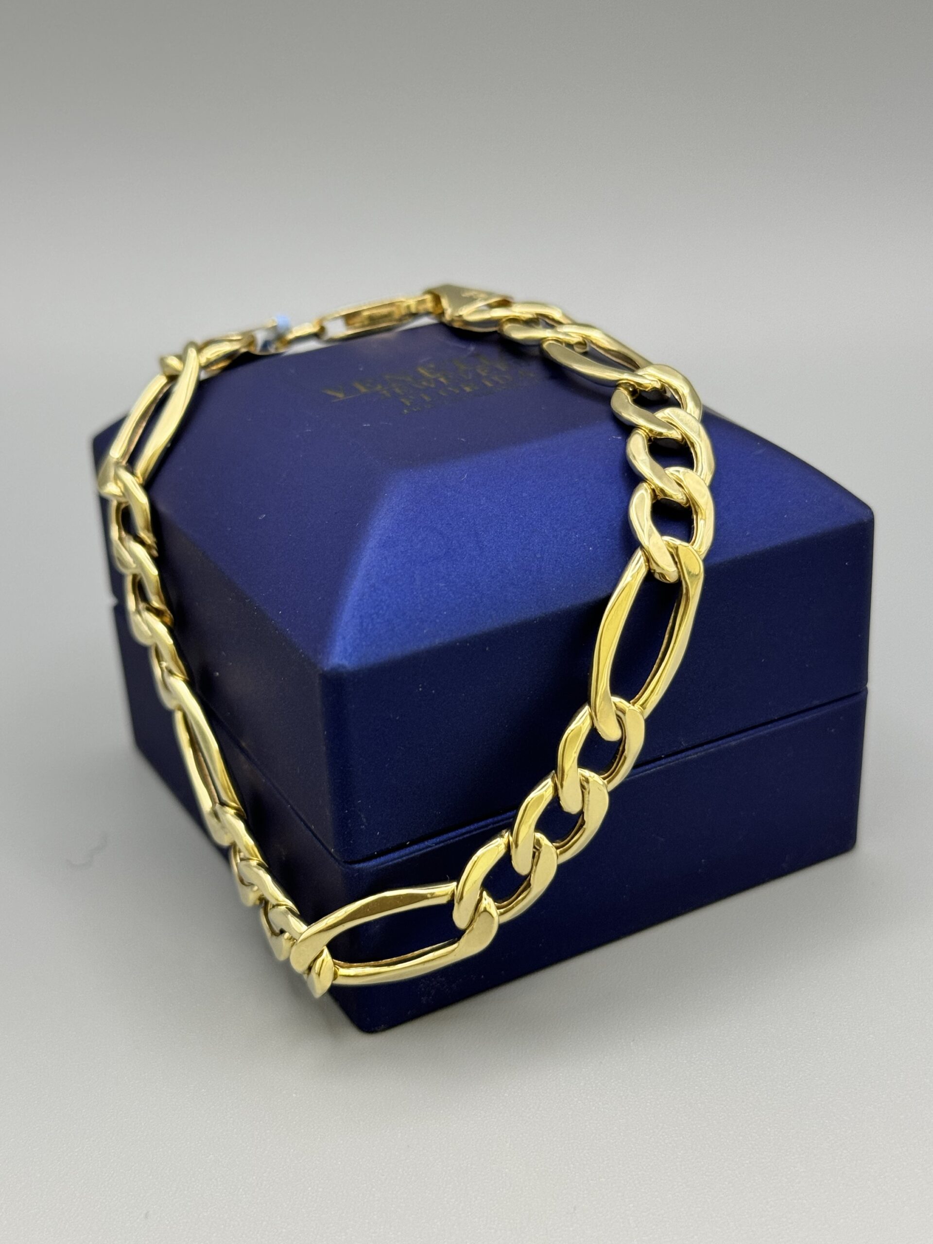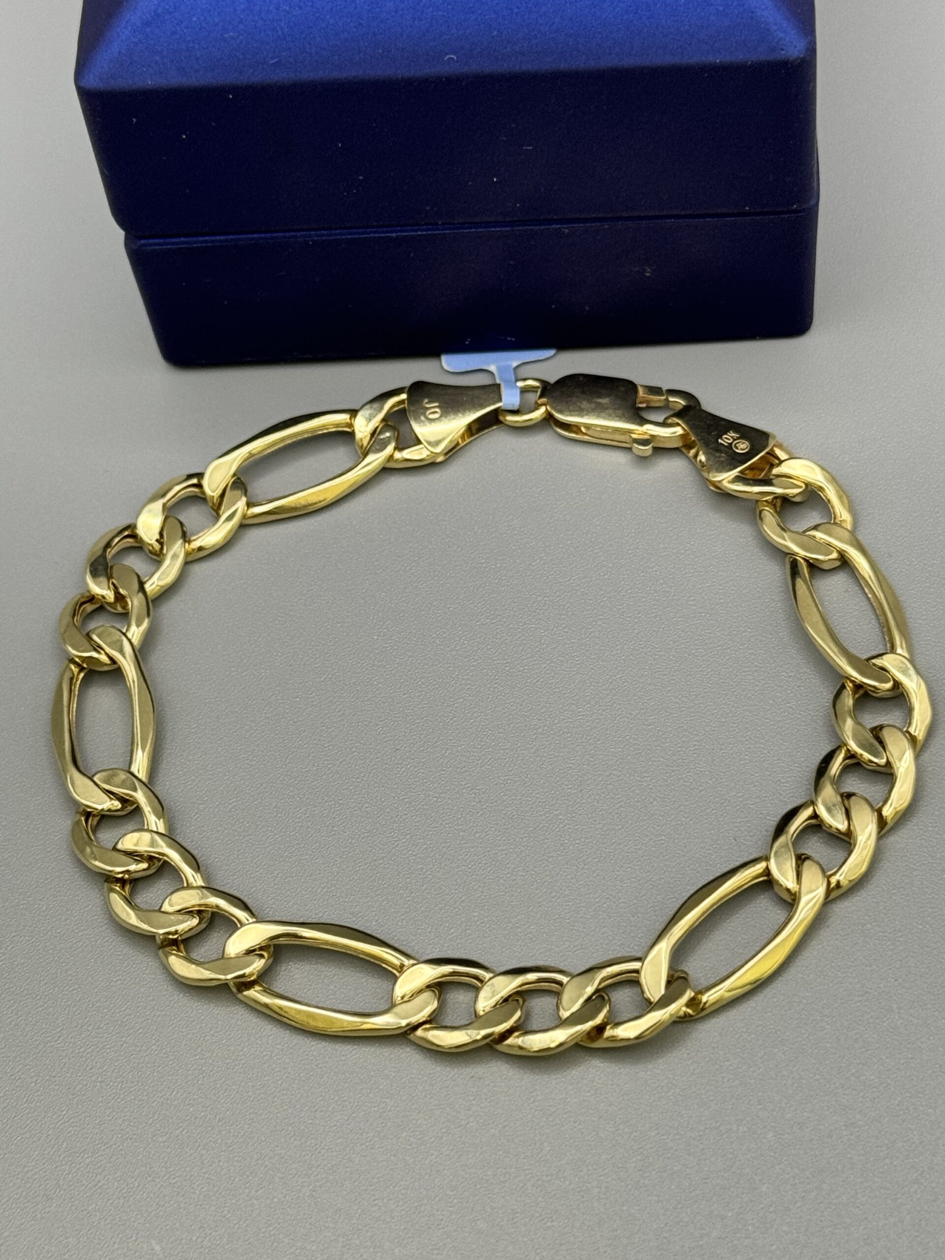 10KT Gold 9MM FigaroLink Bracelet 8.5″ Approx Gold Weight 8.5 Gram