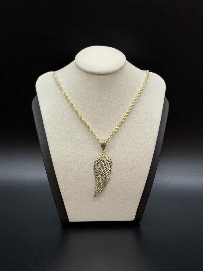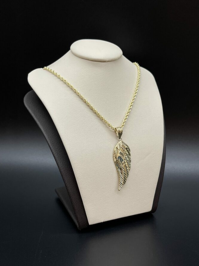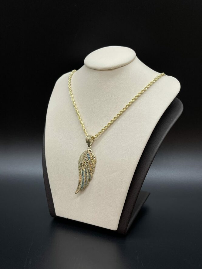 10KT Gold Angel Wing Pendant Set Comes With 20″ Rope Necklace Approx Gold Weight 4.16 Grams