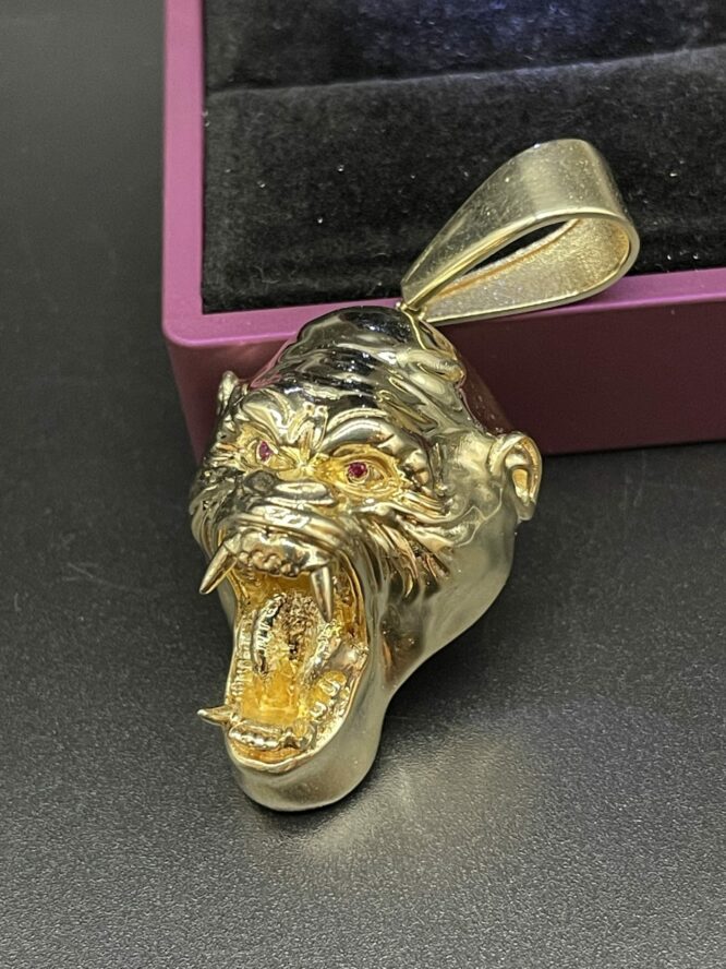 10KT Gold Ape Pendant Size 2.25″ Approx Gold Weight 9.00 Gram Comes With Red Ruby Eyes