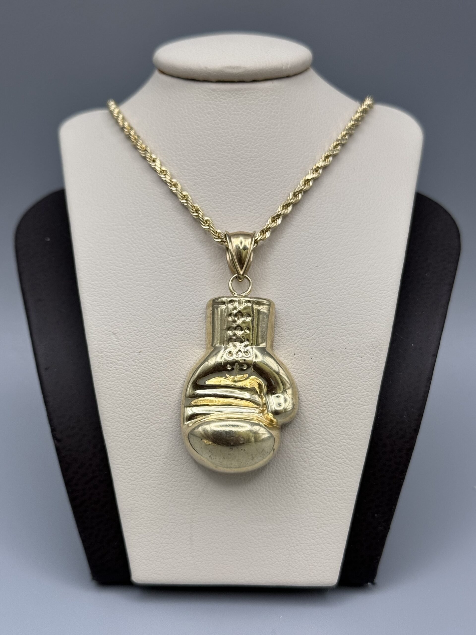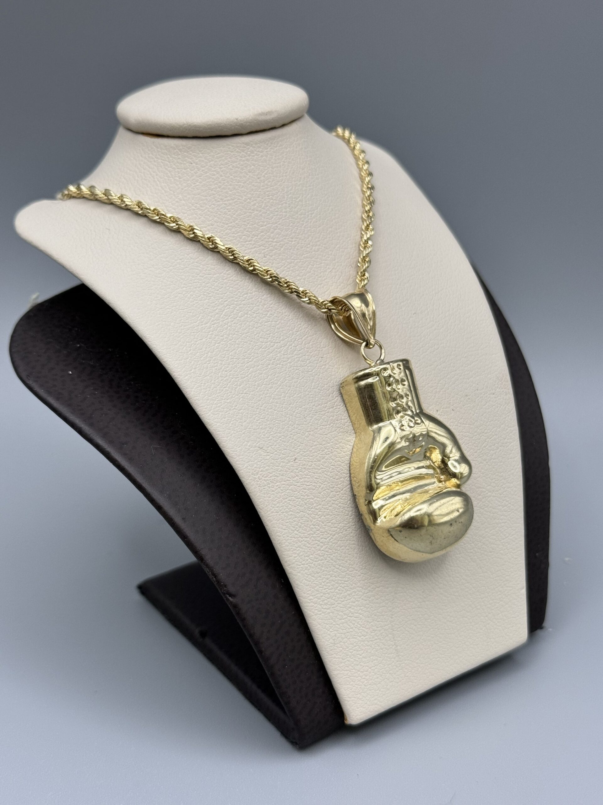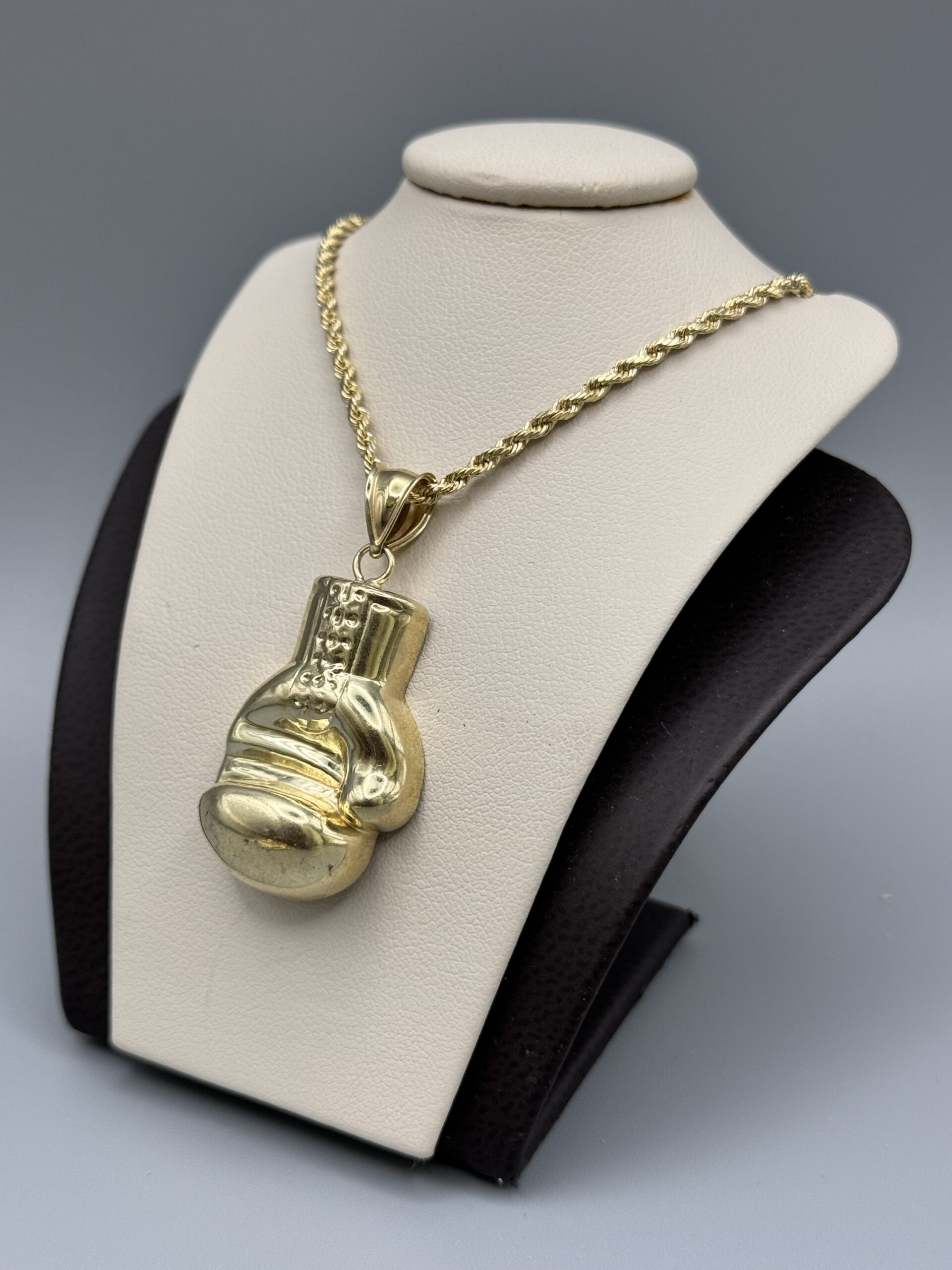 10KT Gold Boxing Gloves Pendant ComboSet Comes With 10KT Gold 2MM Rope Necklace 22″ Approx Gold Weight 3.1 Gram Pendant 1.50″ Tall By 0.75″ Wide Approx Gold Weight 4.7 Gram