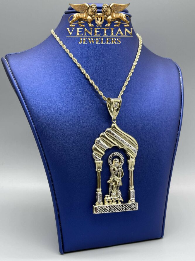 10KT Gold Combo Saint Lazaro Pendant Comes With “24 Inches Rope Chain Approx Weight 13.4G