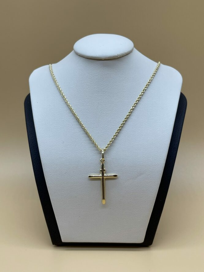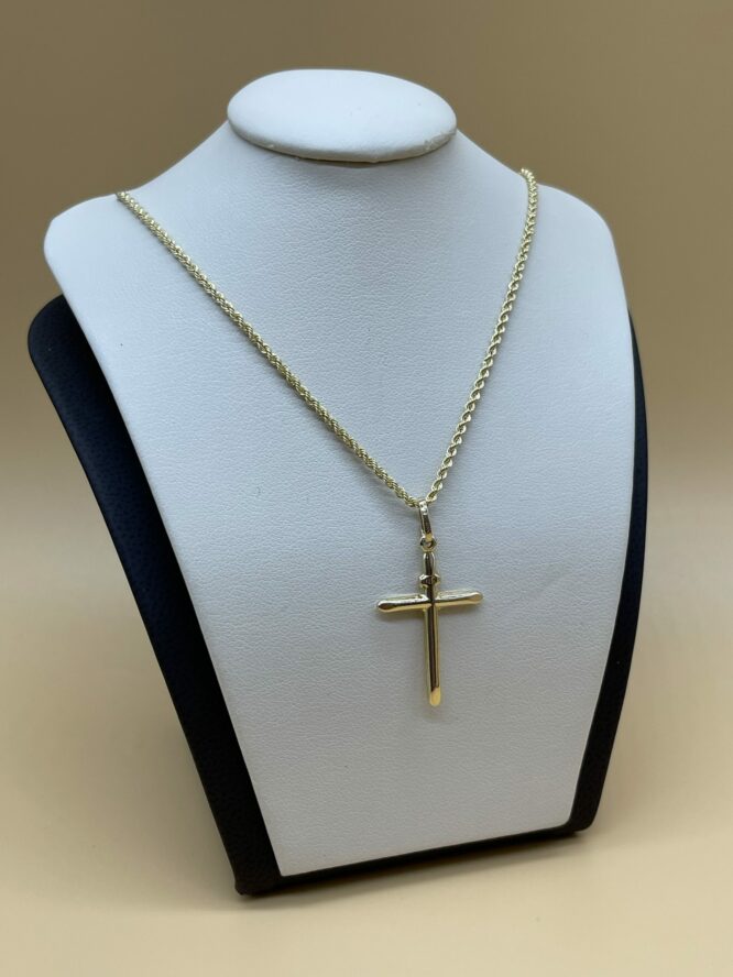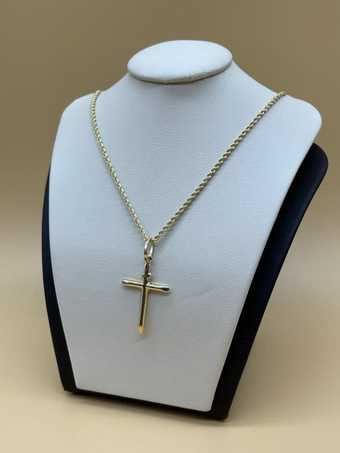 10KT Gold Cross Pendant Set Comes With 18″ Rope Chain Approx Gold Weight 2.29 Grams