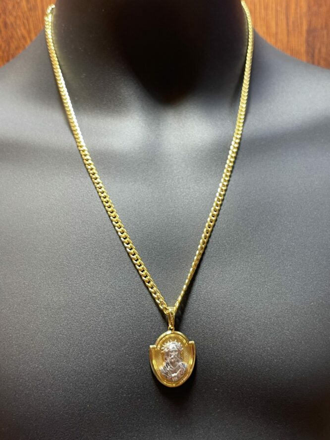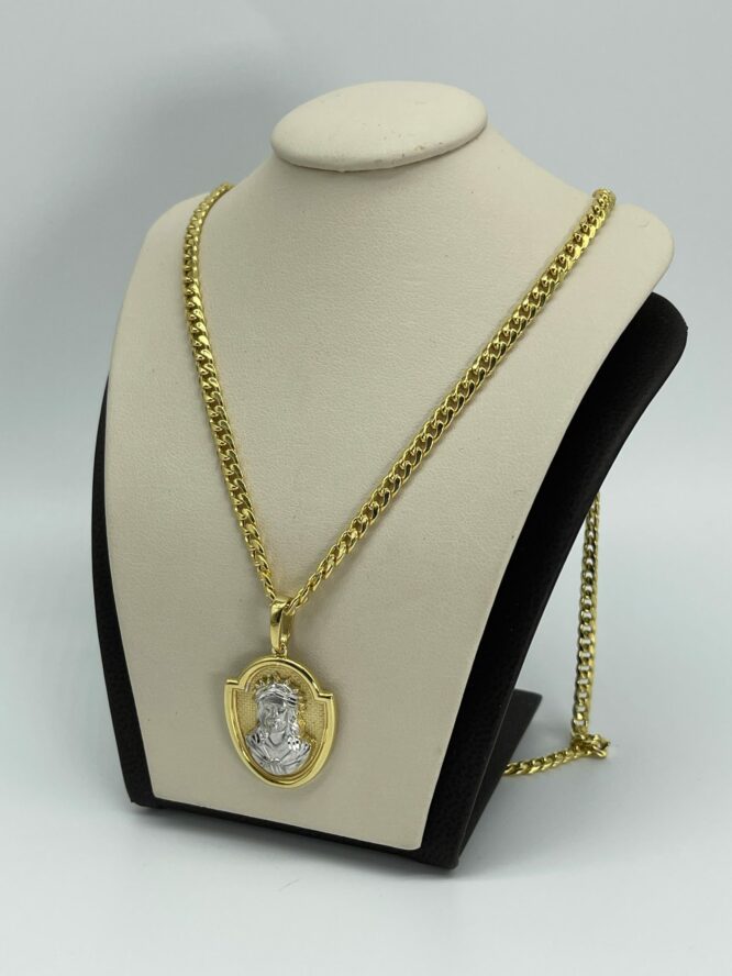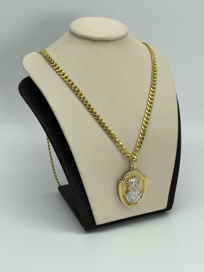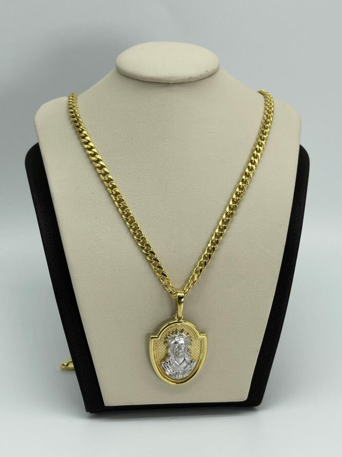 10kT Gold MiamiCuban Jesus Combo Set 20″ Necklace Length 5MM Thickness Approx Gold Weight For Both Pieces 9.30 Grams
