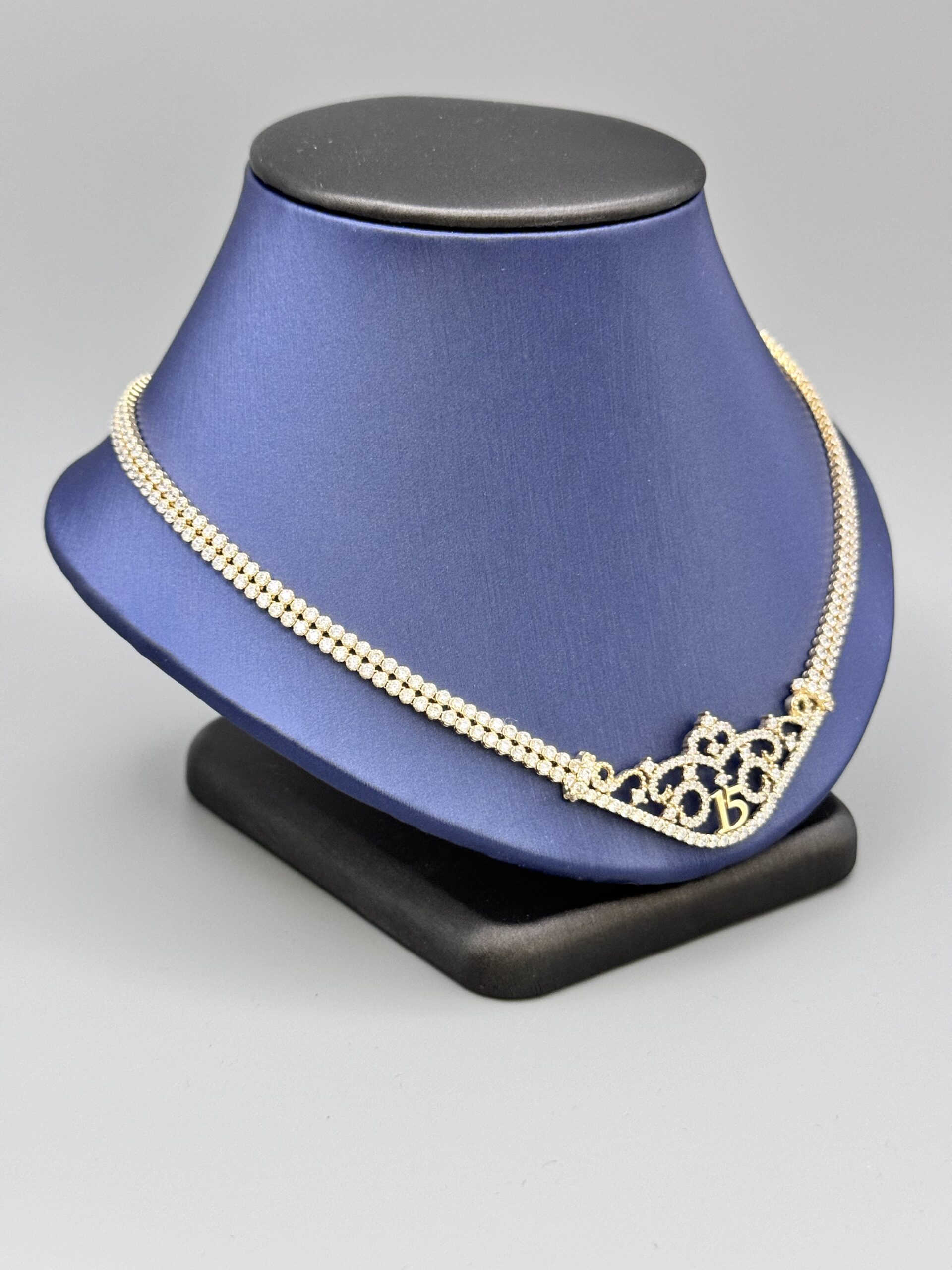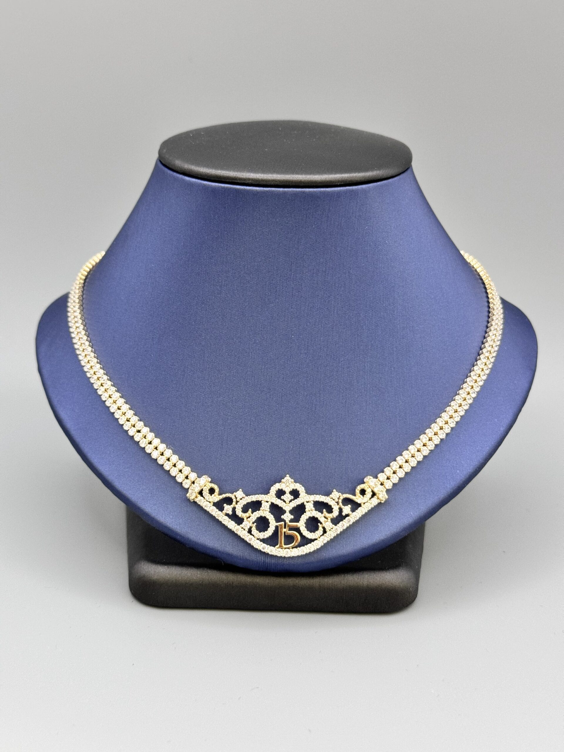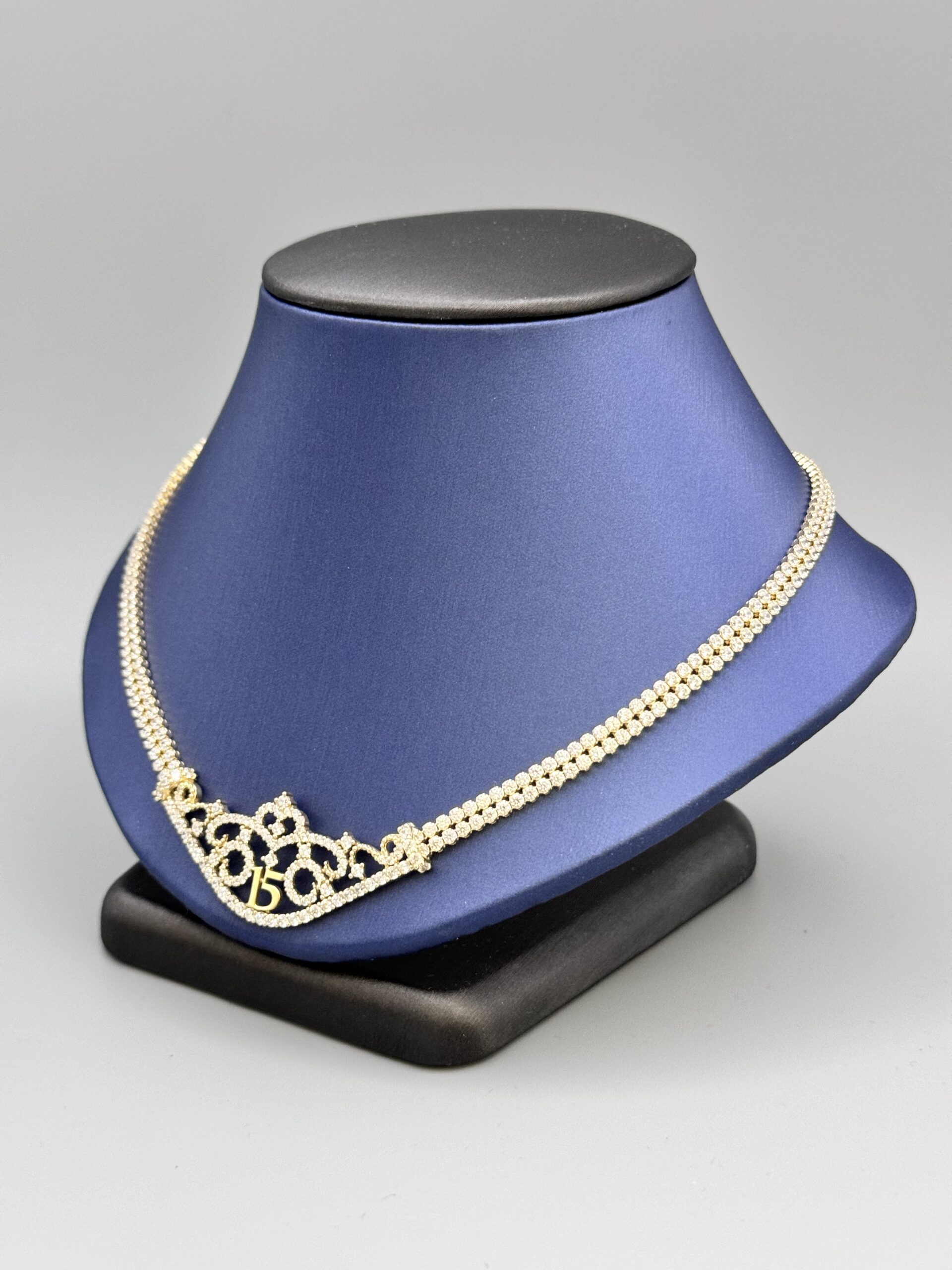 10KT Gold CZ 15Anos Ladies Necklace Aka Sweet 15 Necklace With Crown Approx Gold Weight 14.4 Gram
