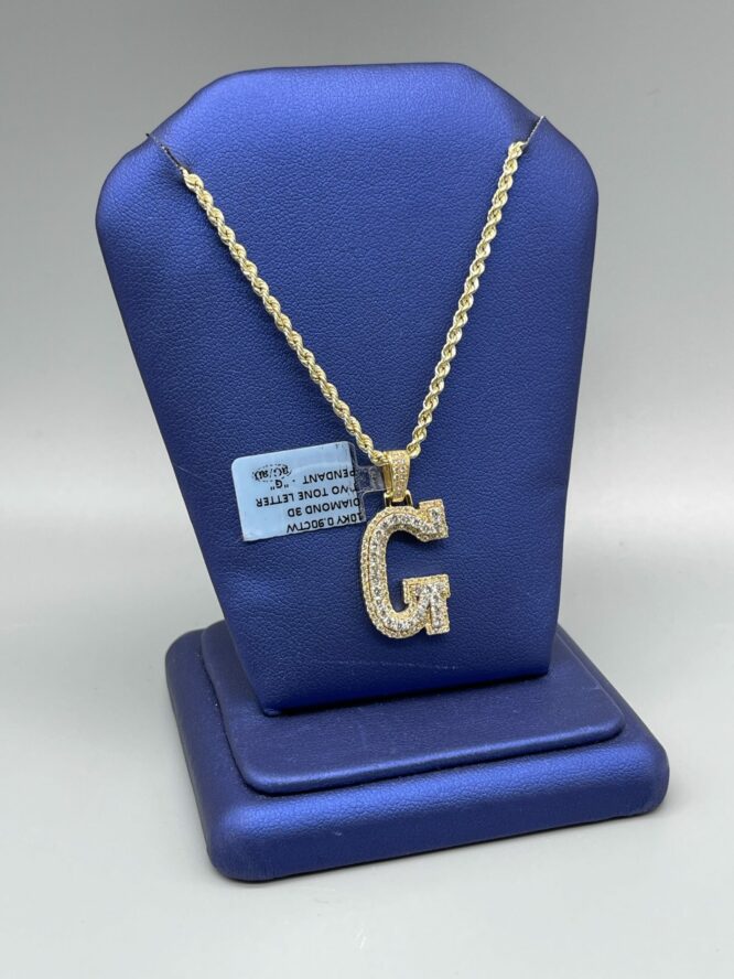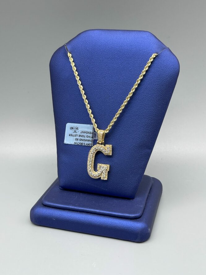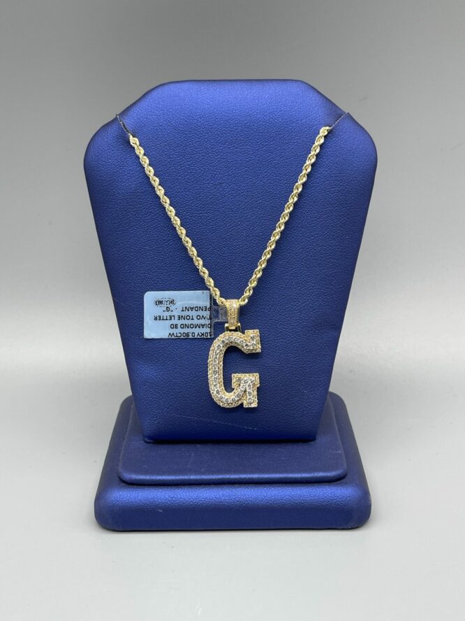 10KT 0.90CT Diamond G Initial Two Tone Double Layer Comes With 20″ Rope Chain Approx Weight For Necklace 3.0 Grams All Full Cut Excellent Clarity Diamonds Perfect For All Ages