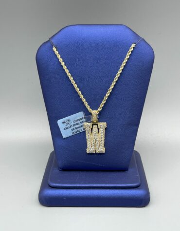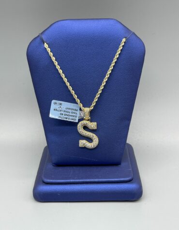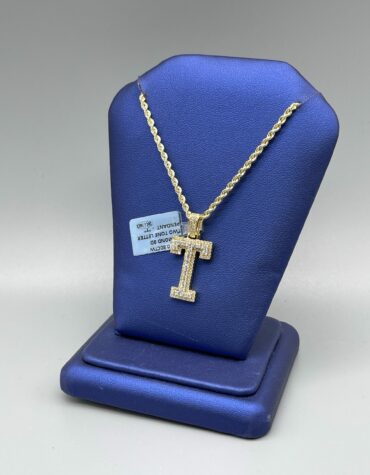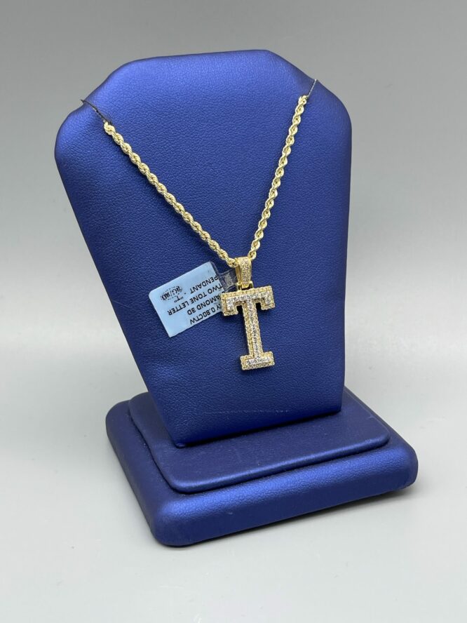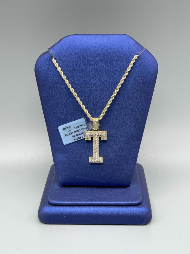 10KT 0.80CT Diamond T Initial Two Tone Double Layer Comes With 20″ Rope Chain Approx Weight For Necklace 3.0 Grams All Full Cut Excellent Clarity Diamonds Perfect For All Ages