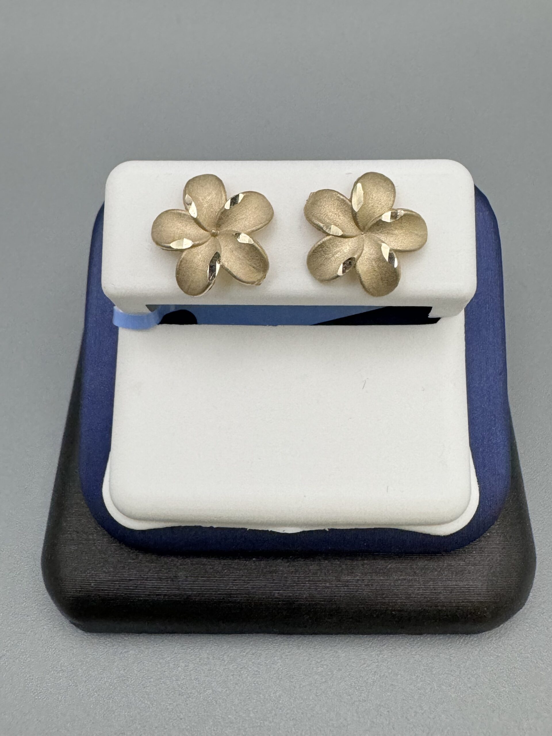10Kt Gold Fancy Flower Earrings With 12MM Width Push N Pull Back
