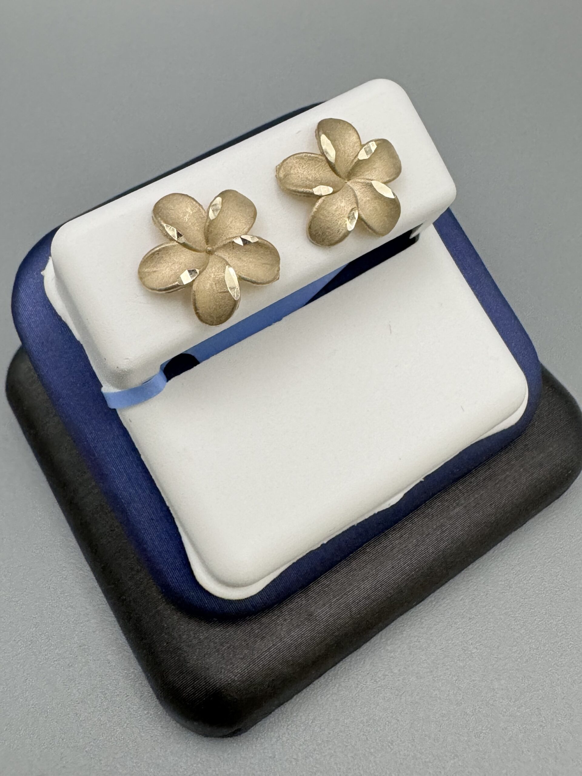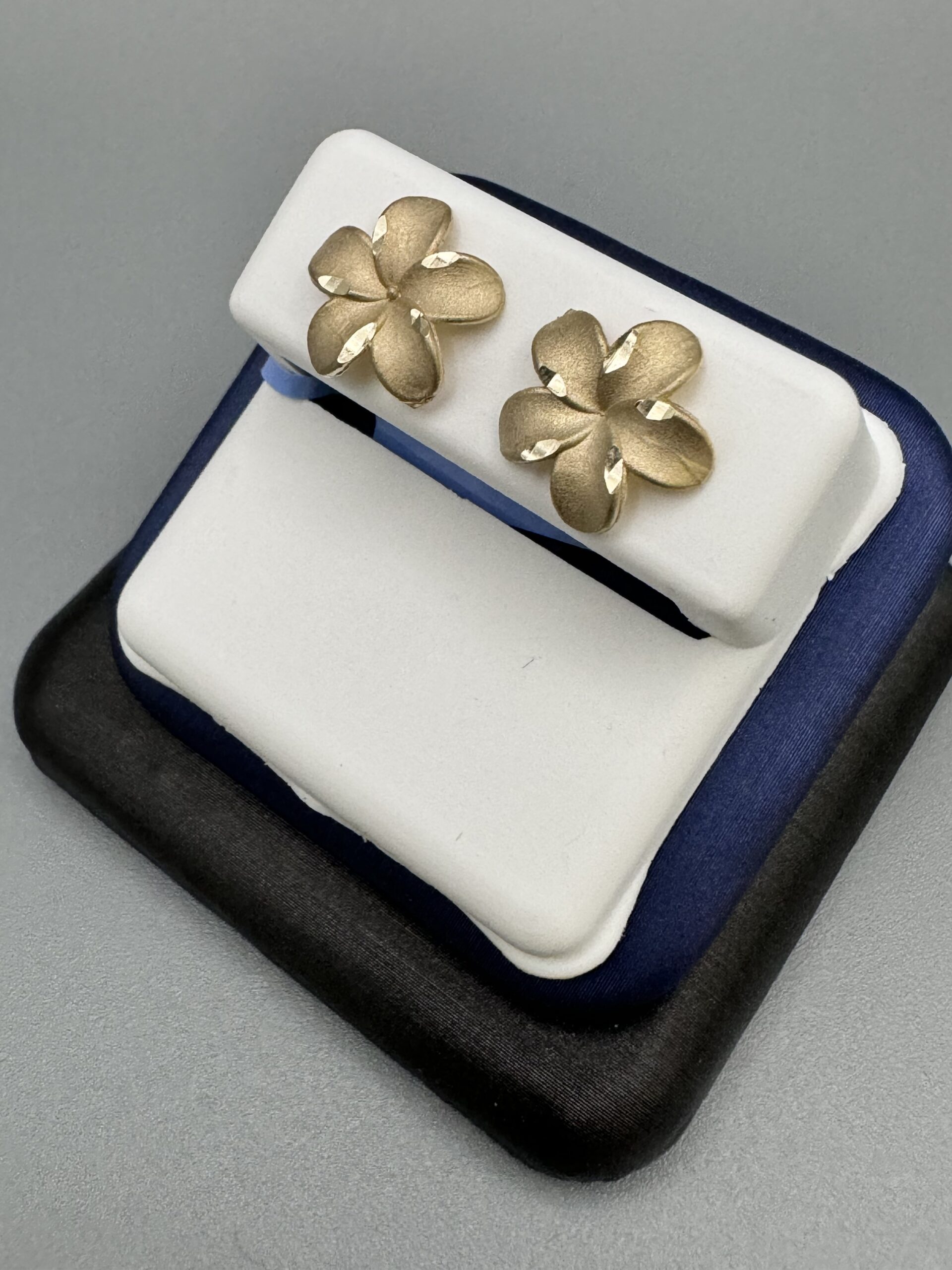 Adorn your ears with these stunning 10Kt gold fancy flower earrings. Featuring a delightful 12MM width and a secure push n pull back, they combine elegance with playful charm for any occasion!