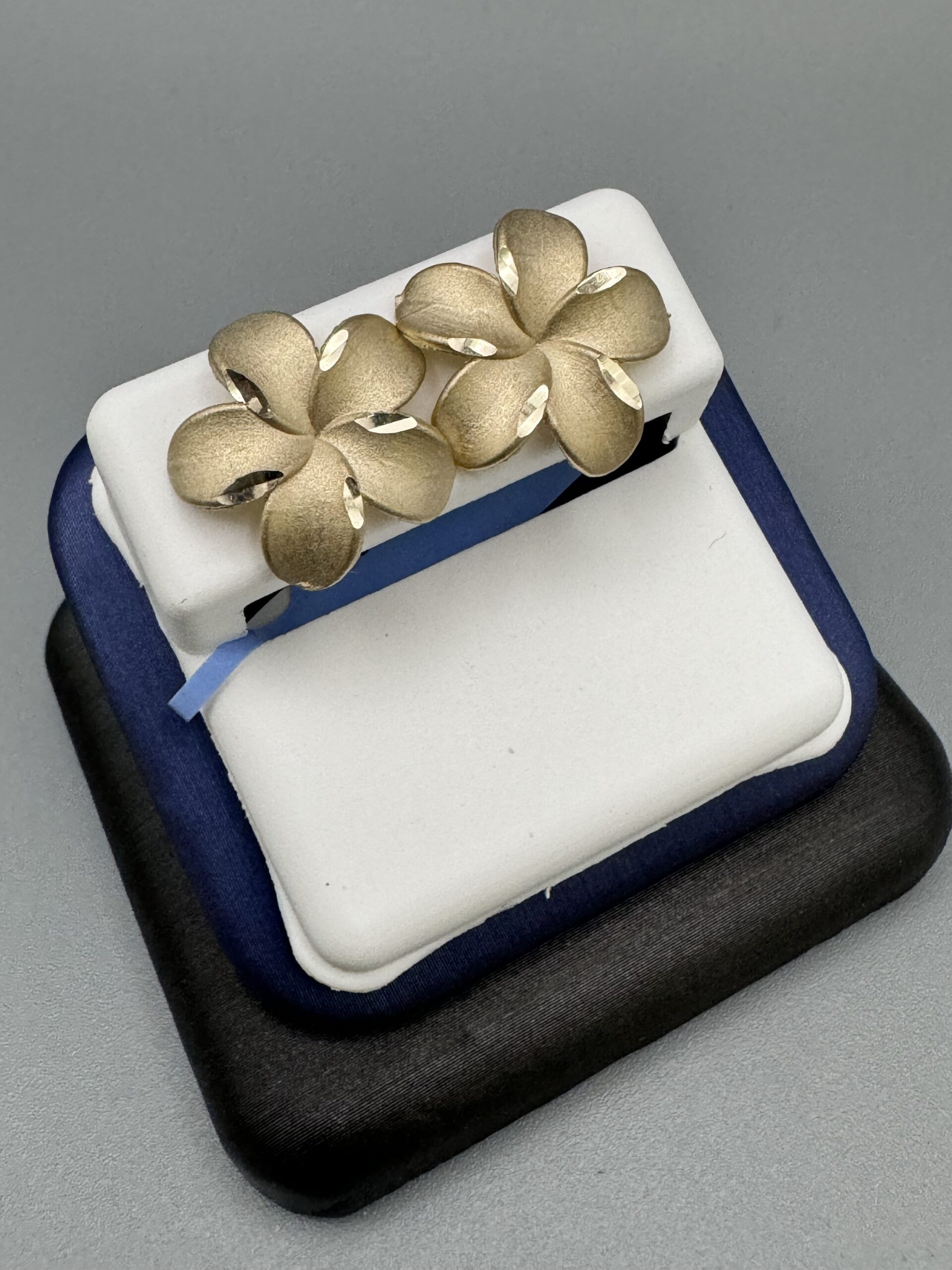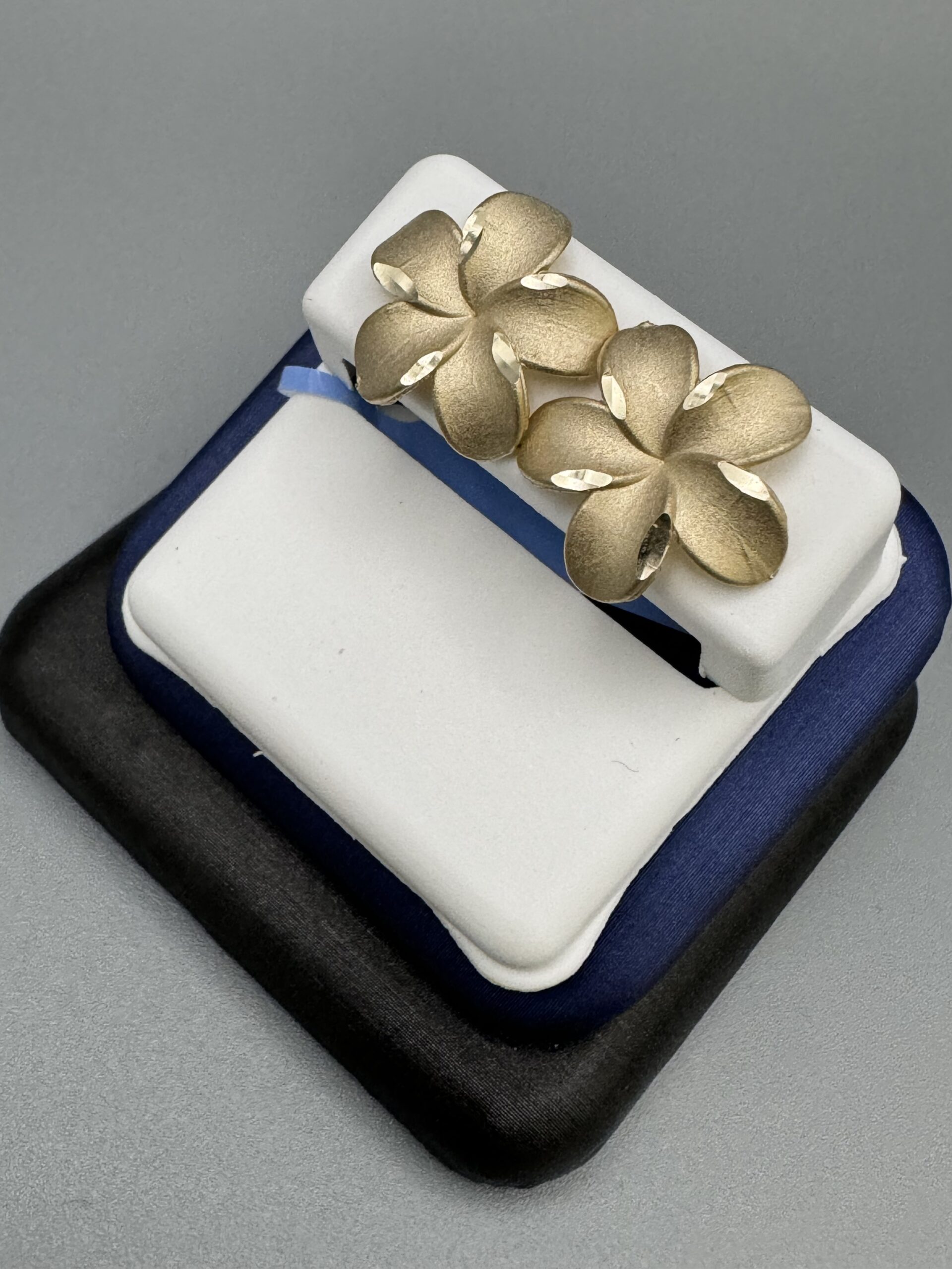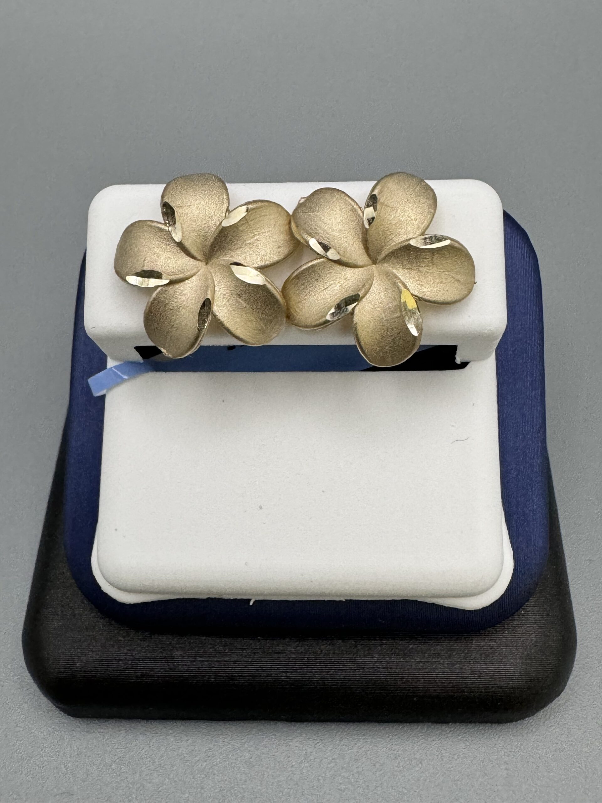 10Kt Gold Fancy Flower Earrings 15MM Width With Push n pull Back