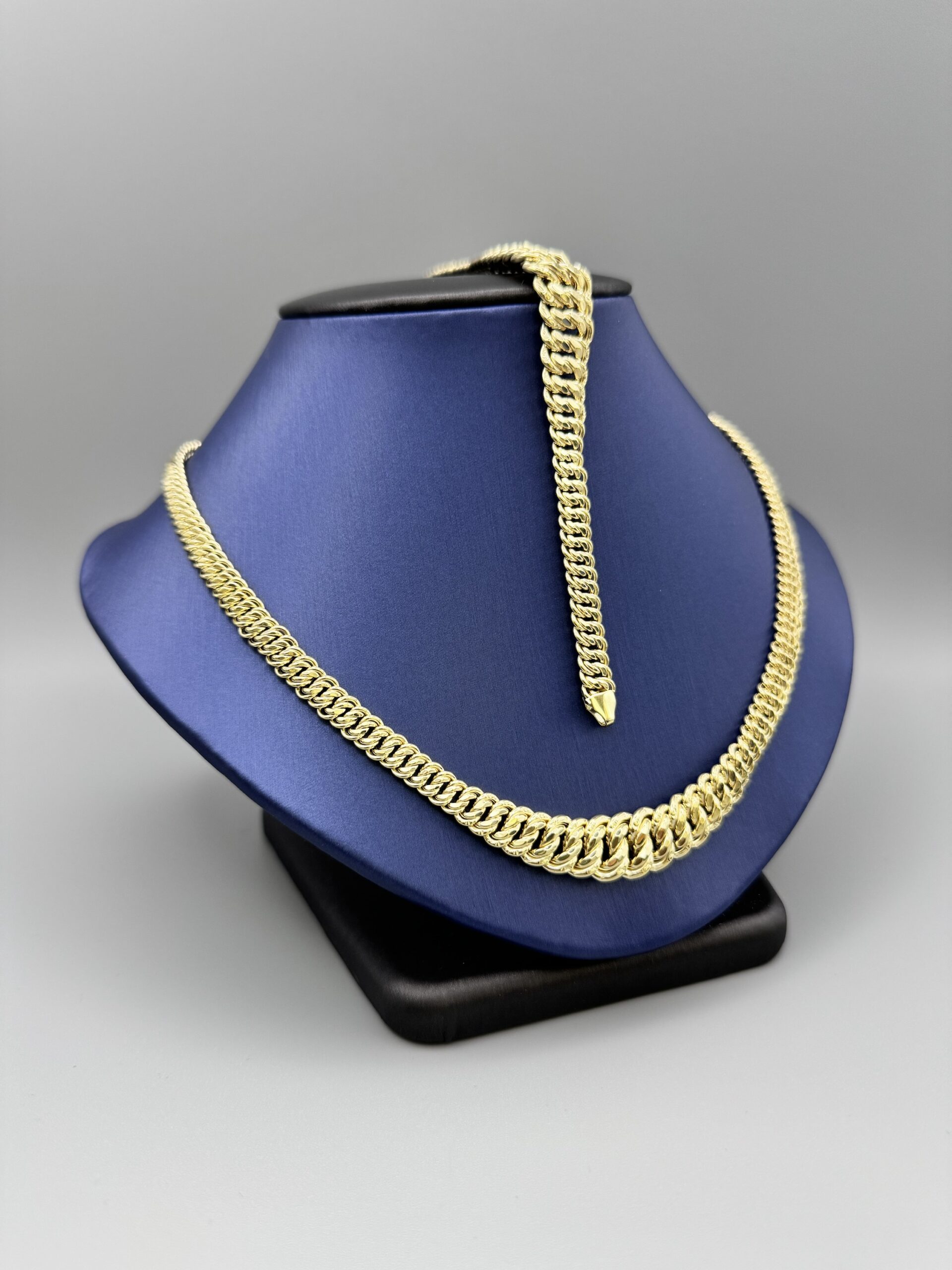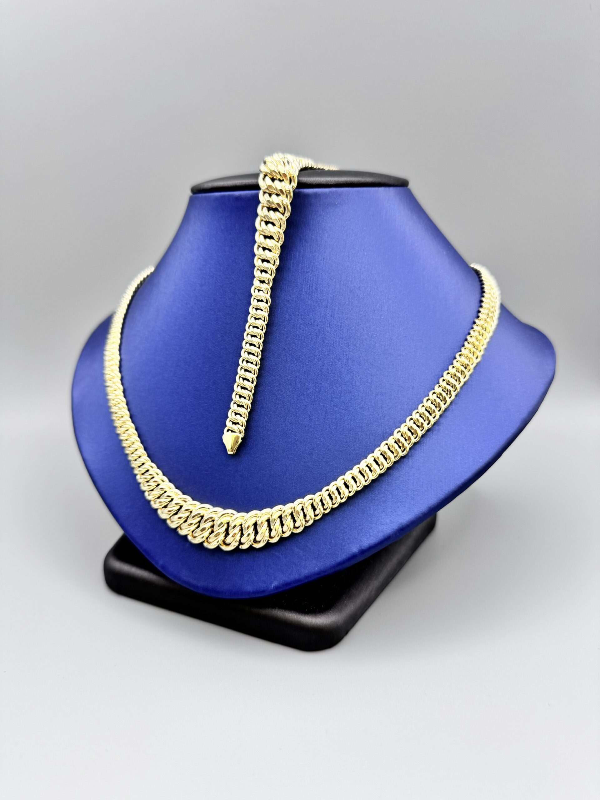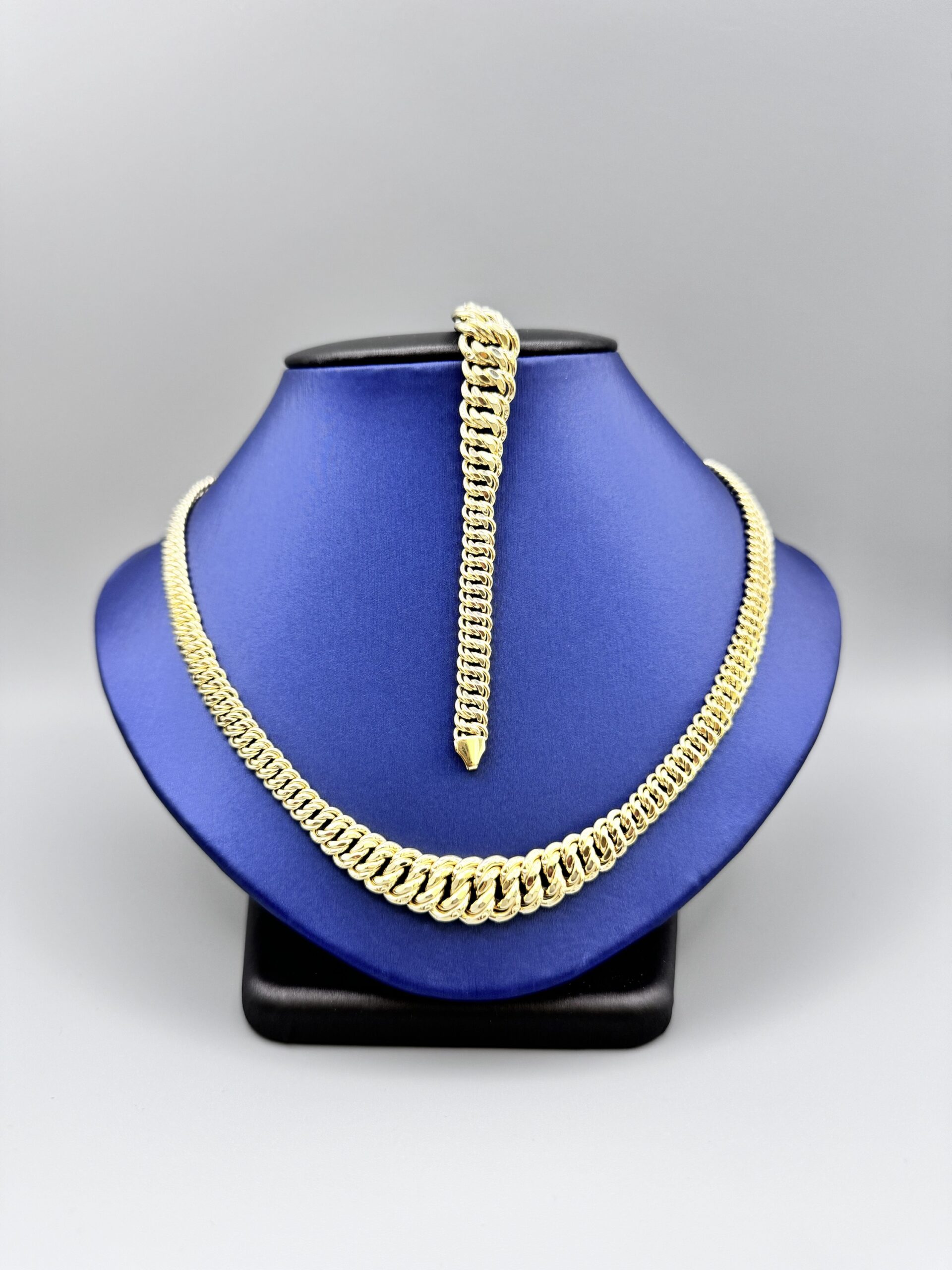 Adorn yourself with this stunning 10KT gold necklace and bracelet set. Weighing 19.9 grams, it features a beautiful 18″ necklace and a 7.5″ bracelet, perfect for any occasion. Elevate your style!