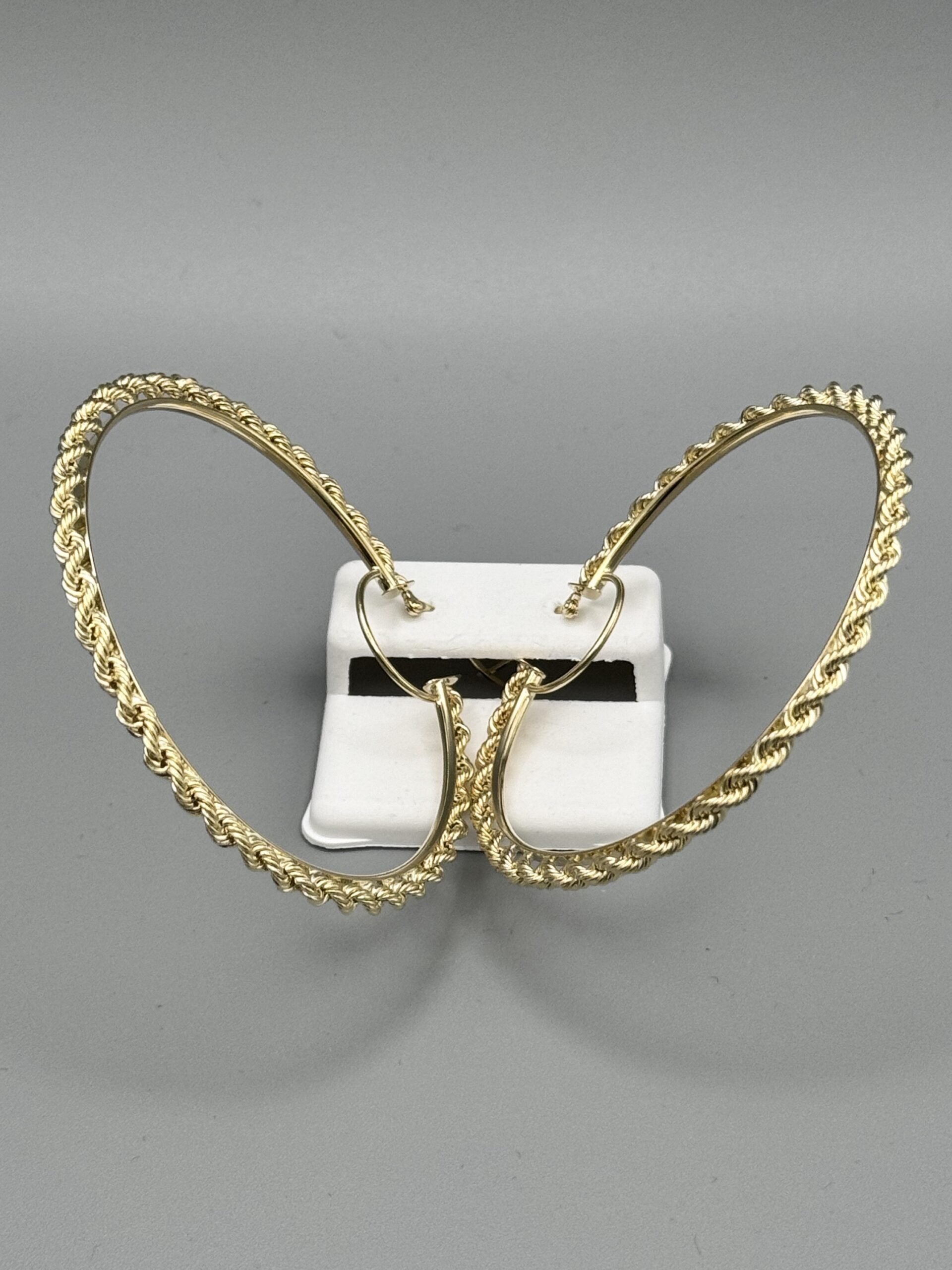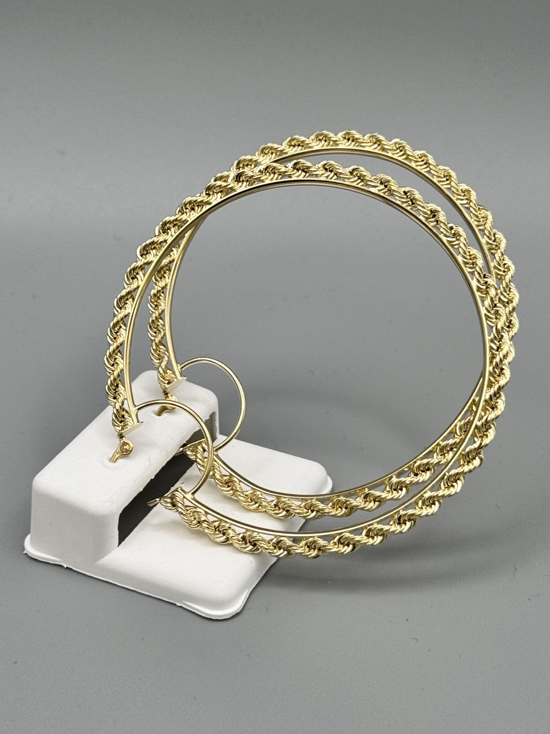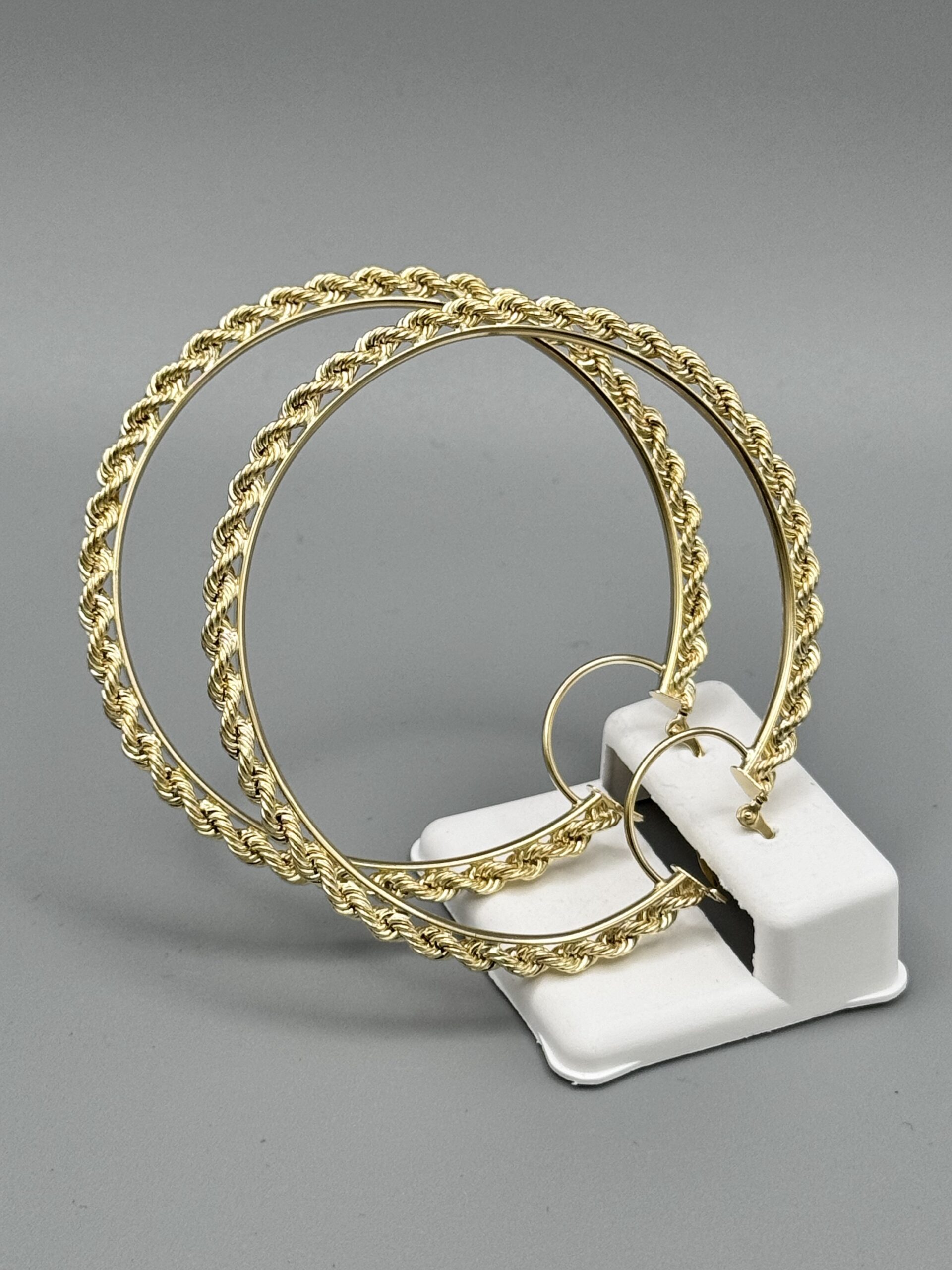 10KT Gold Fancy Rope Design Large Earrings 2.5″ Round Approx Gold Weight Gram 4MM Width 6.2 Gram