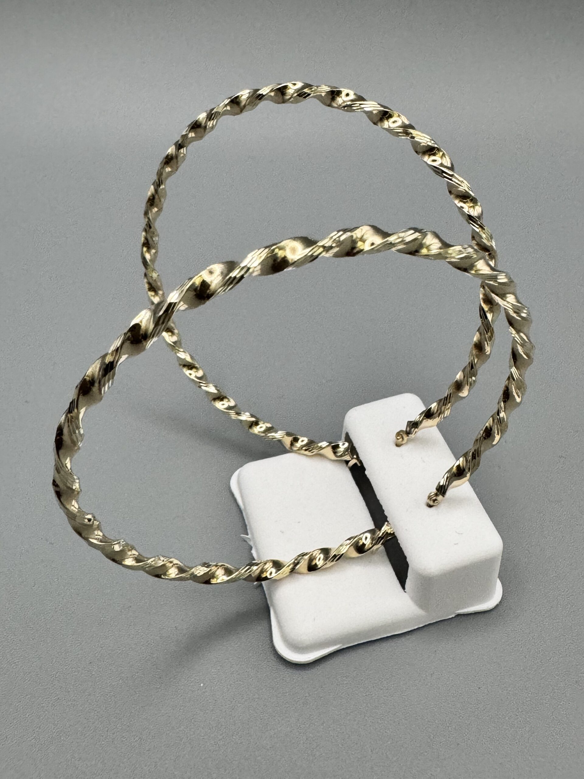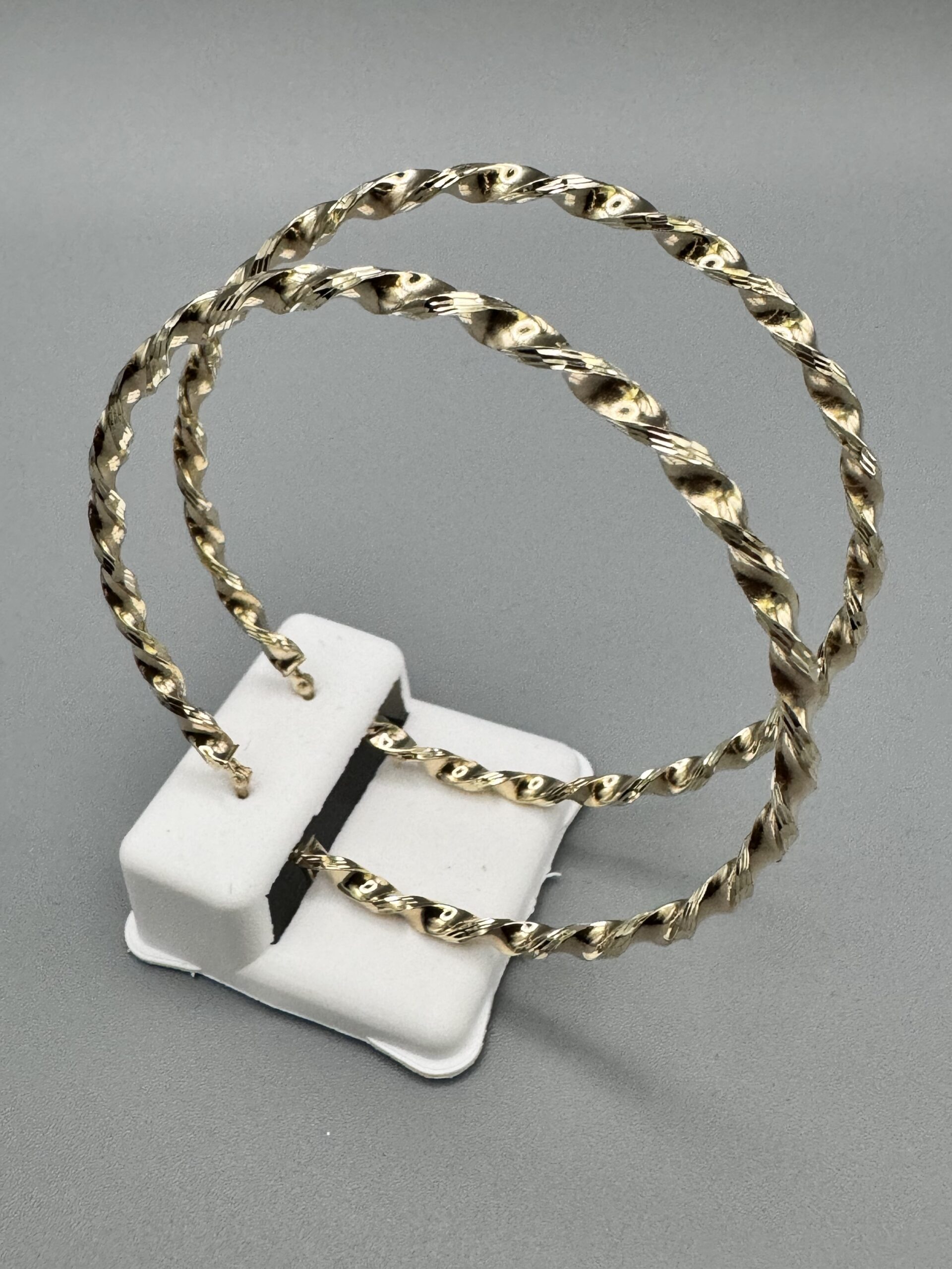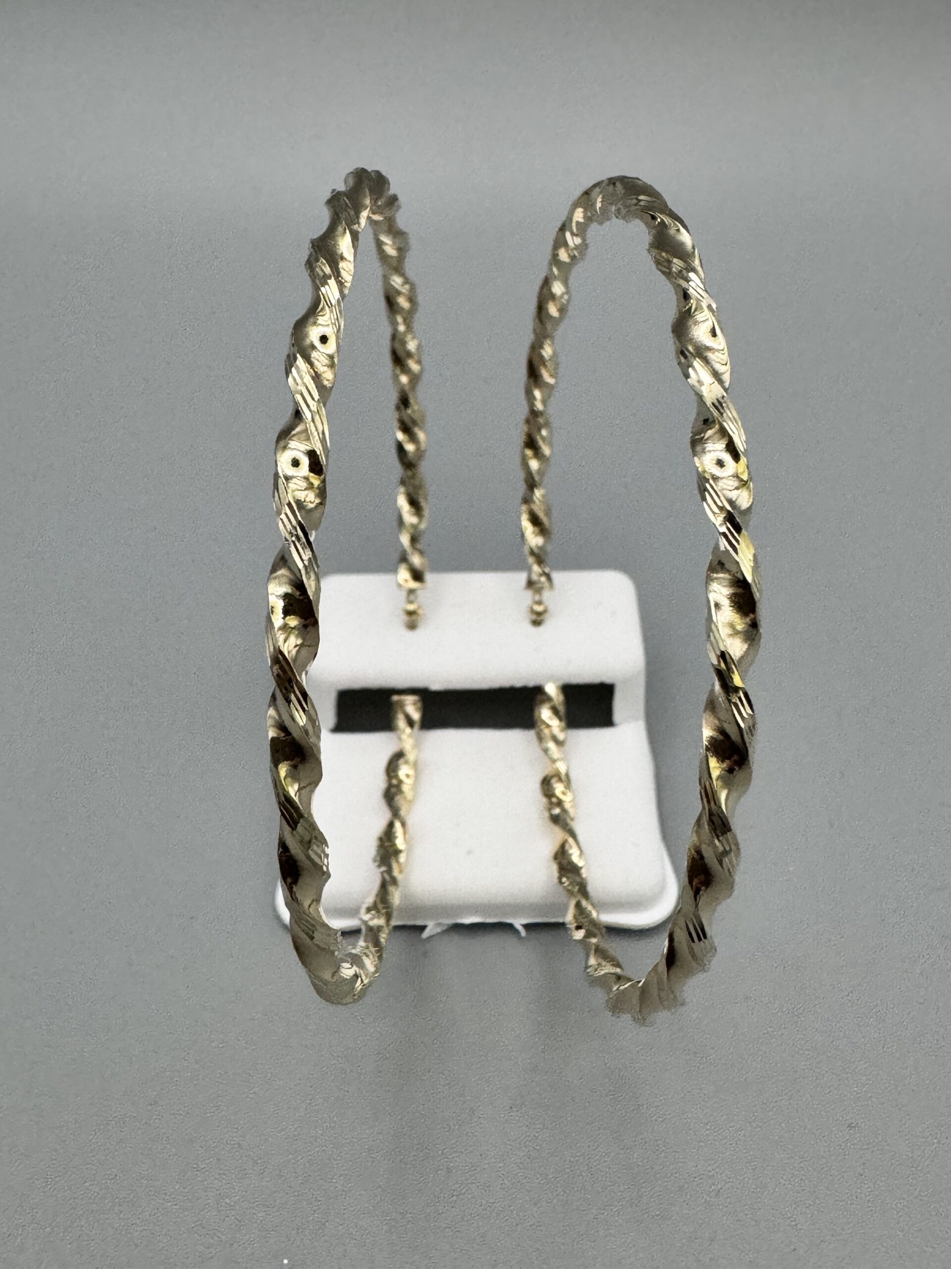 10KT Gold Fancy Spiral Hoop Earrings 2.5″ Round 3MM Width Approx Gold Weight 4.2 Gram