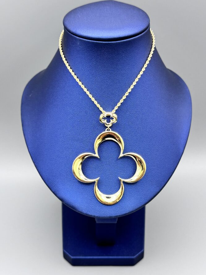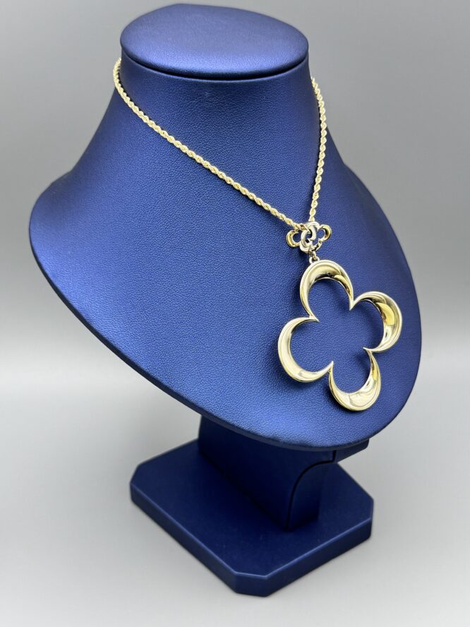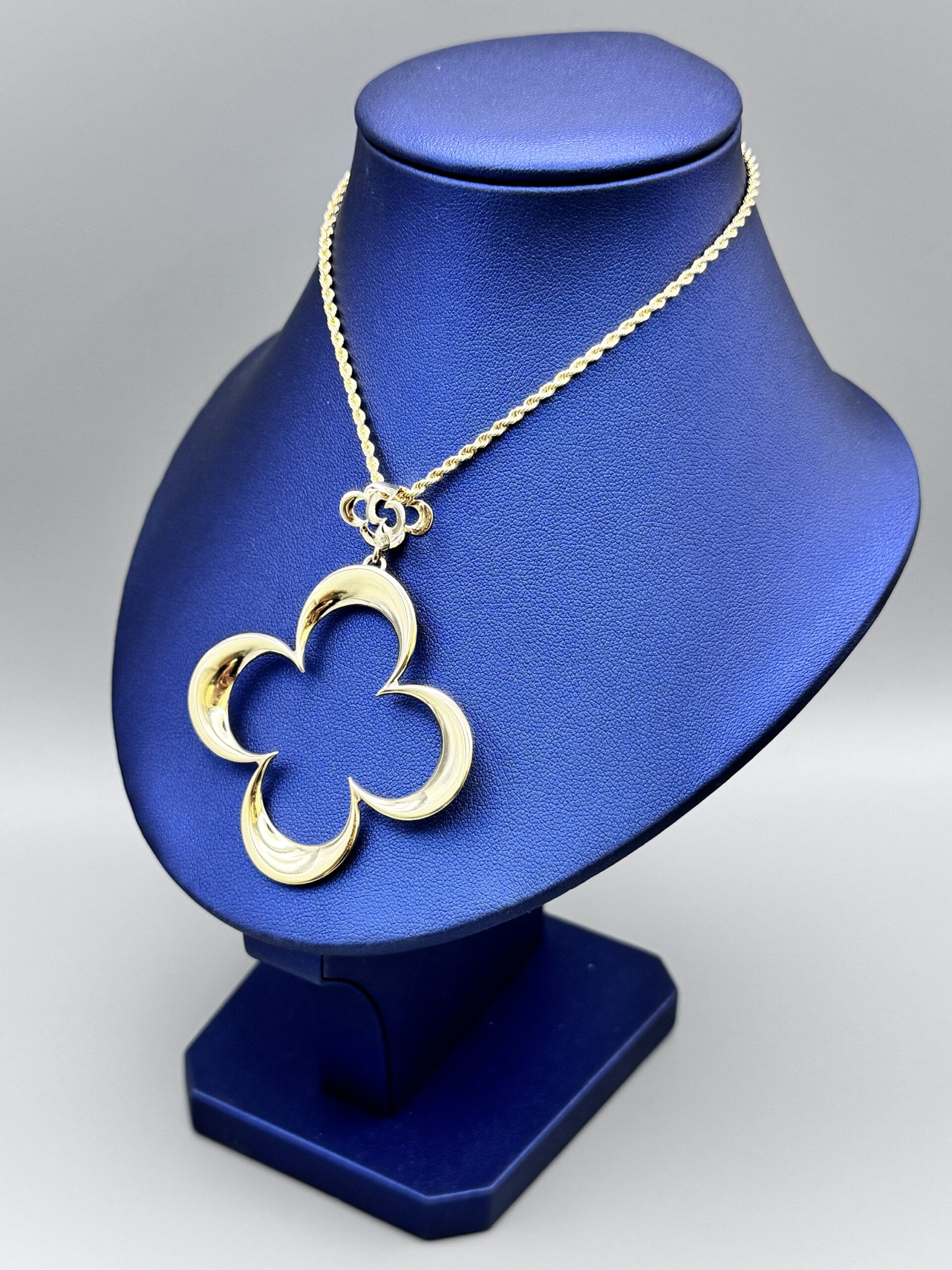 10KT Gold Flower Pendant ComboSet Comes With 2MM Rope Necklace 18″ Combine Approx Gold Weight For Both Pieces 6.4 Gram 2.5″ Tall By 2″ Wide