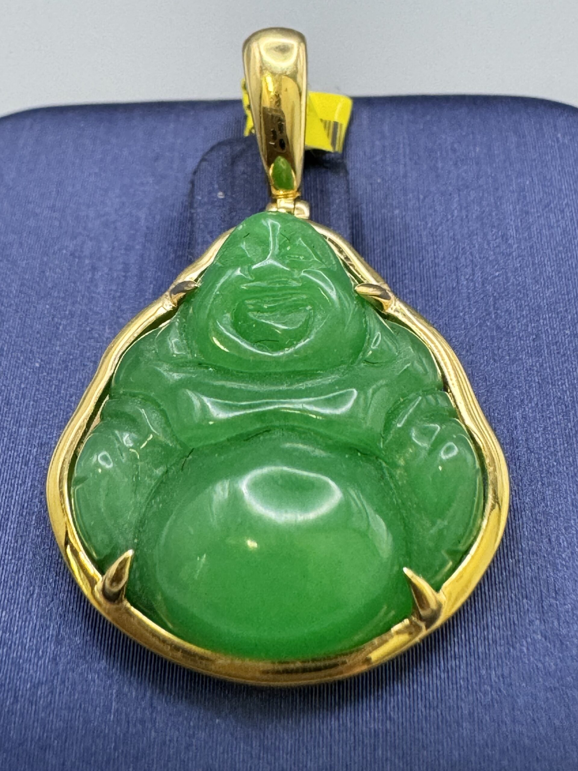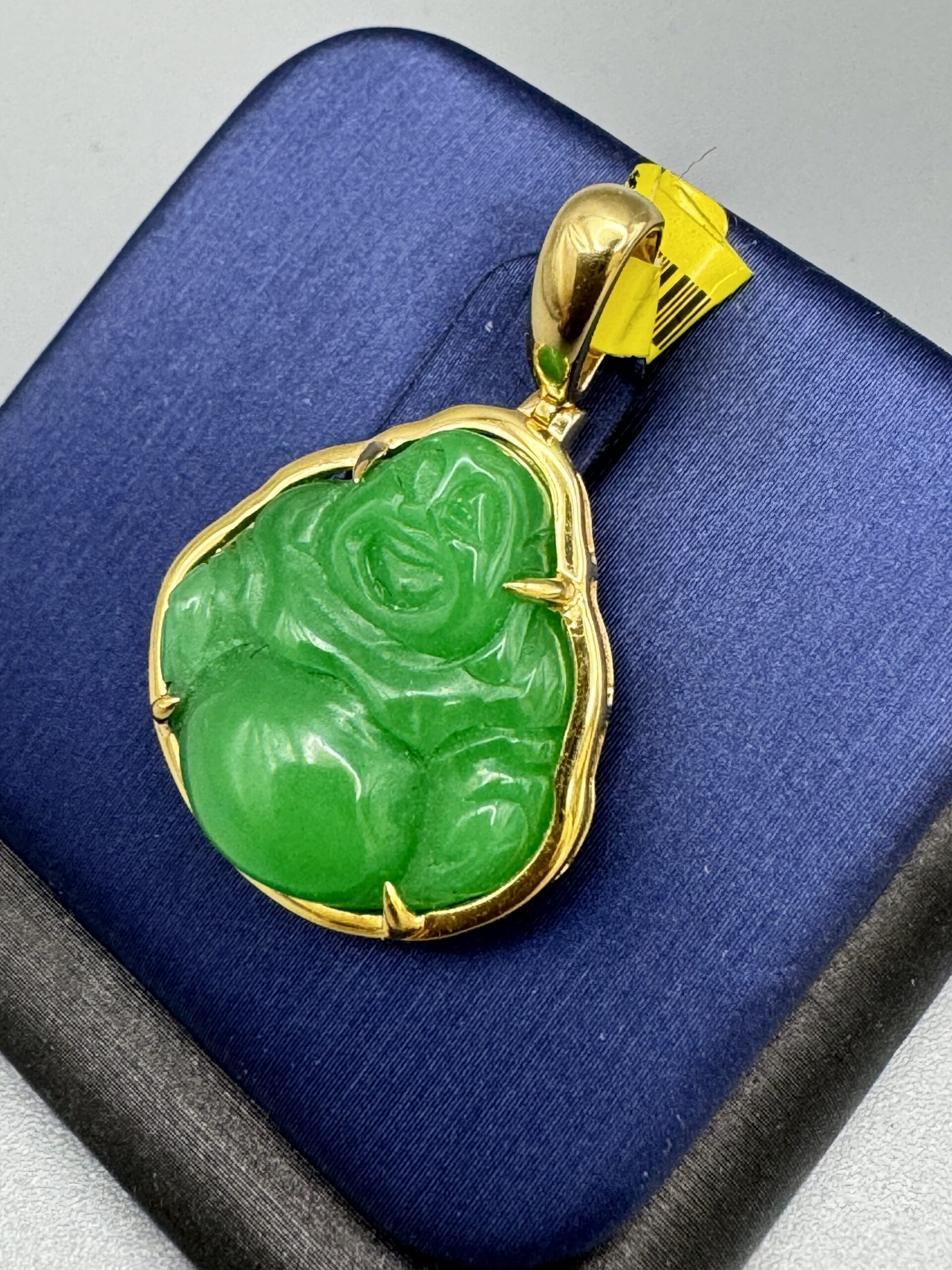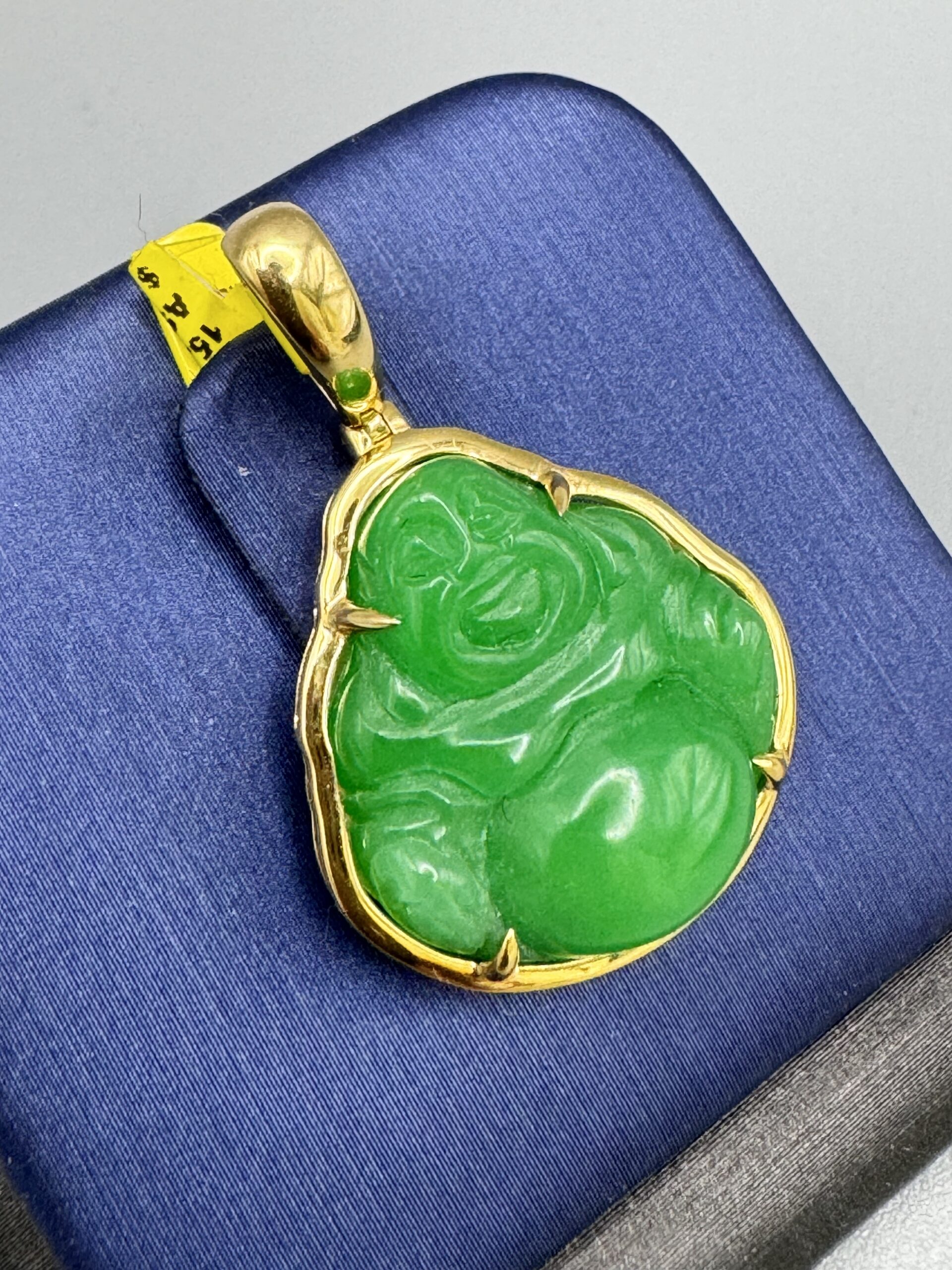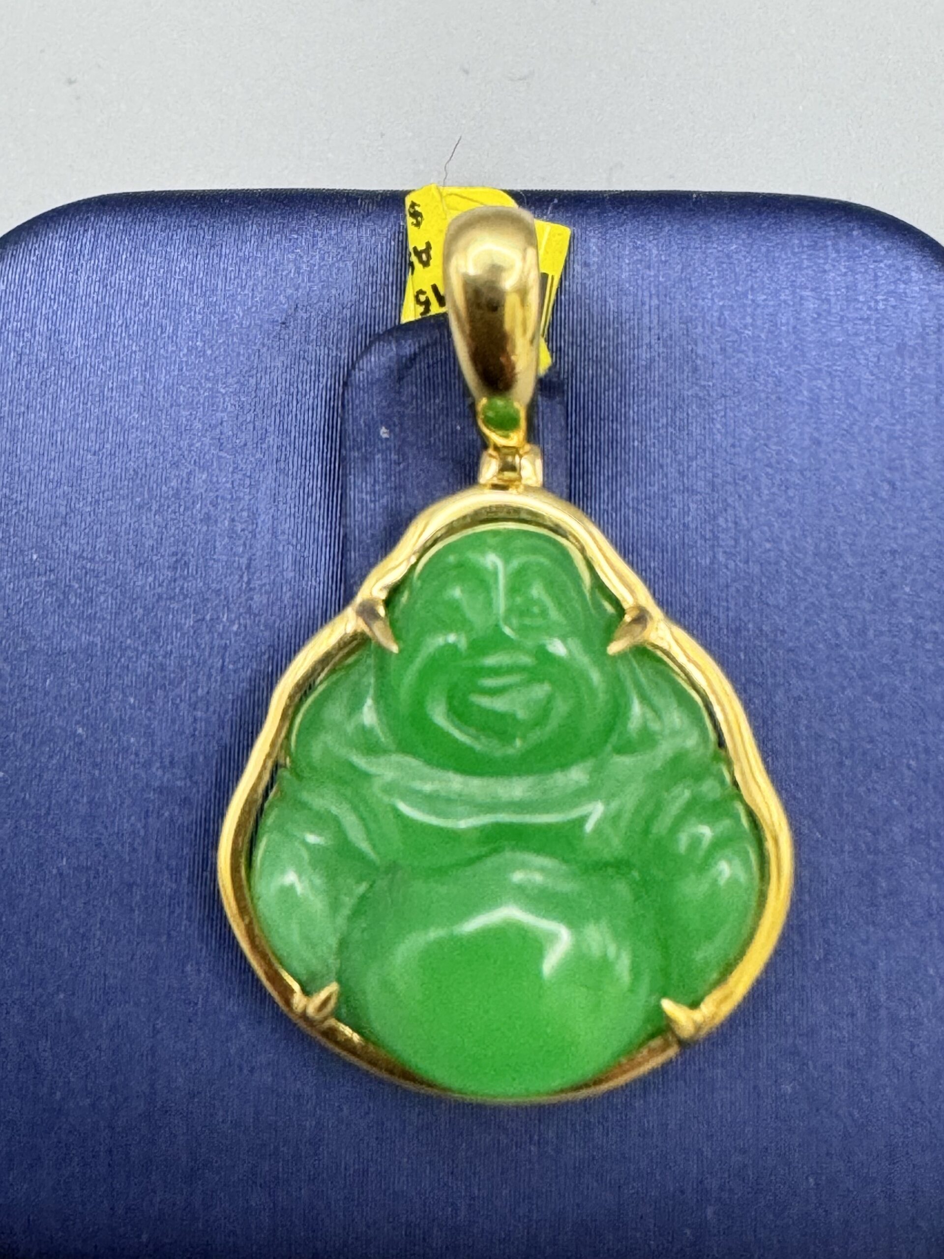 10KT Gold Green Jade Buddah Pendant 15.0CT Jade 1.25″ Tall By 0.75″ Wide Approx Weight 6.1 Gram