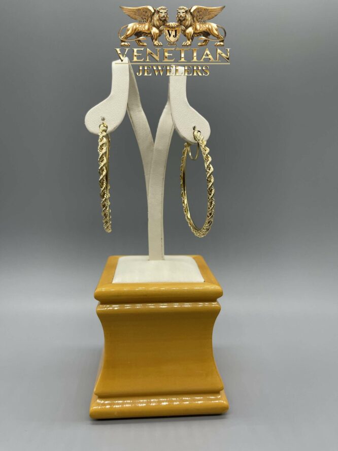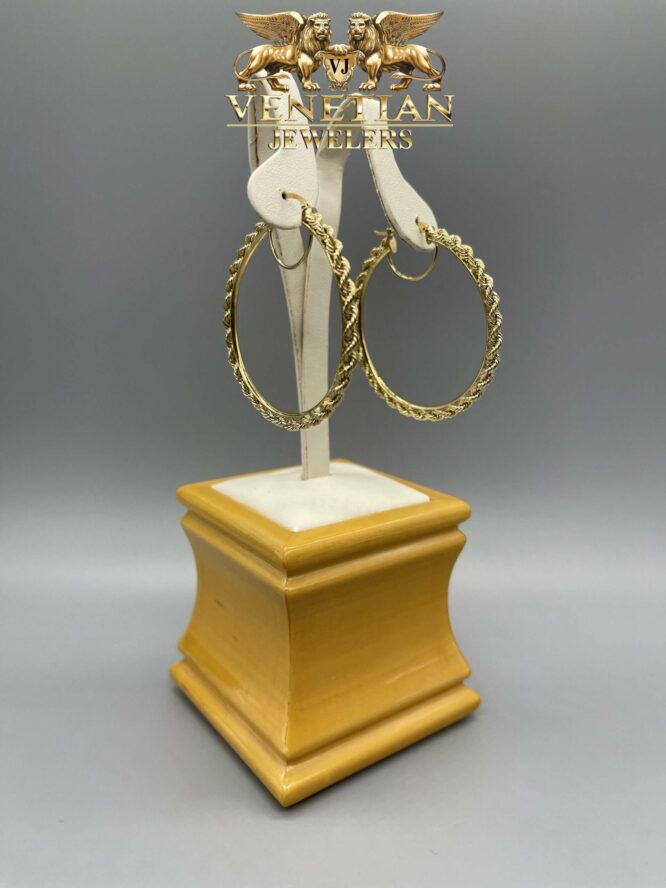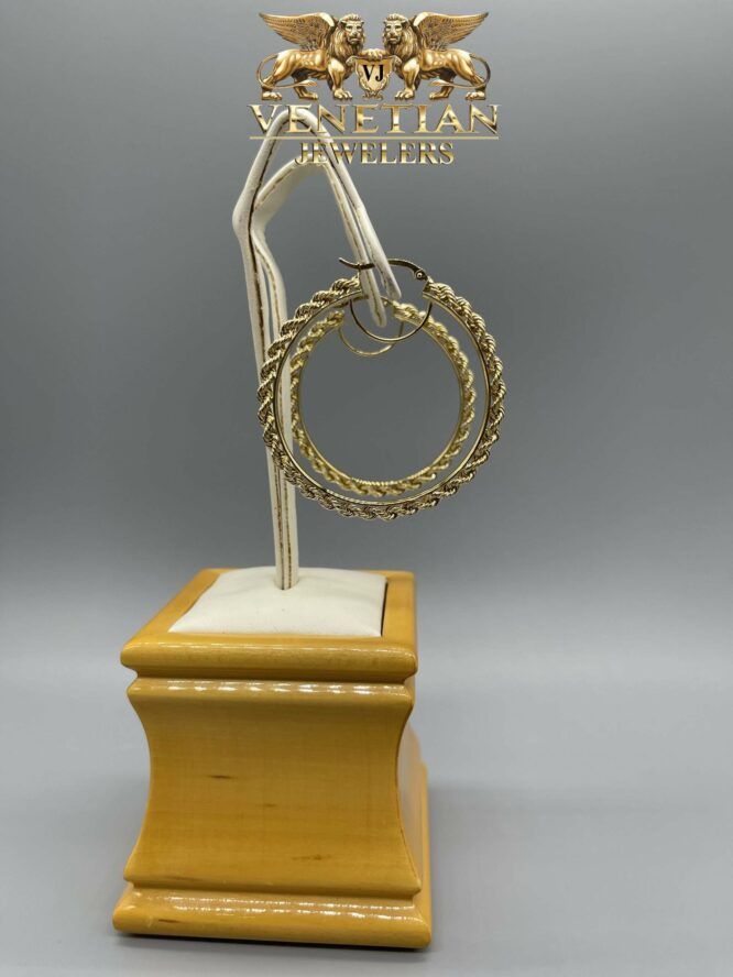 10KT Gold Hoop Earrings Fancy With Rope Around It 5.1Grams Gold