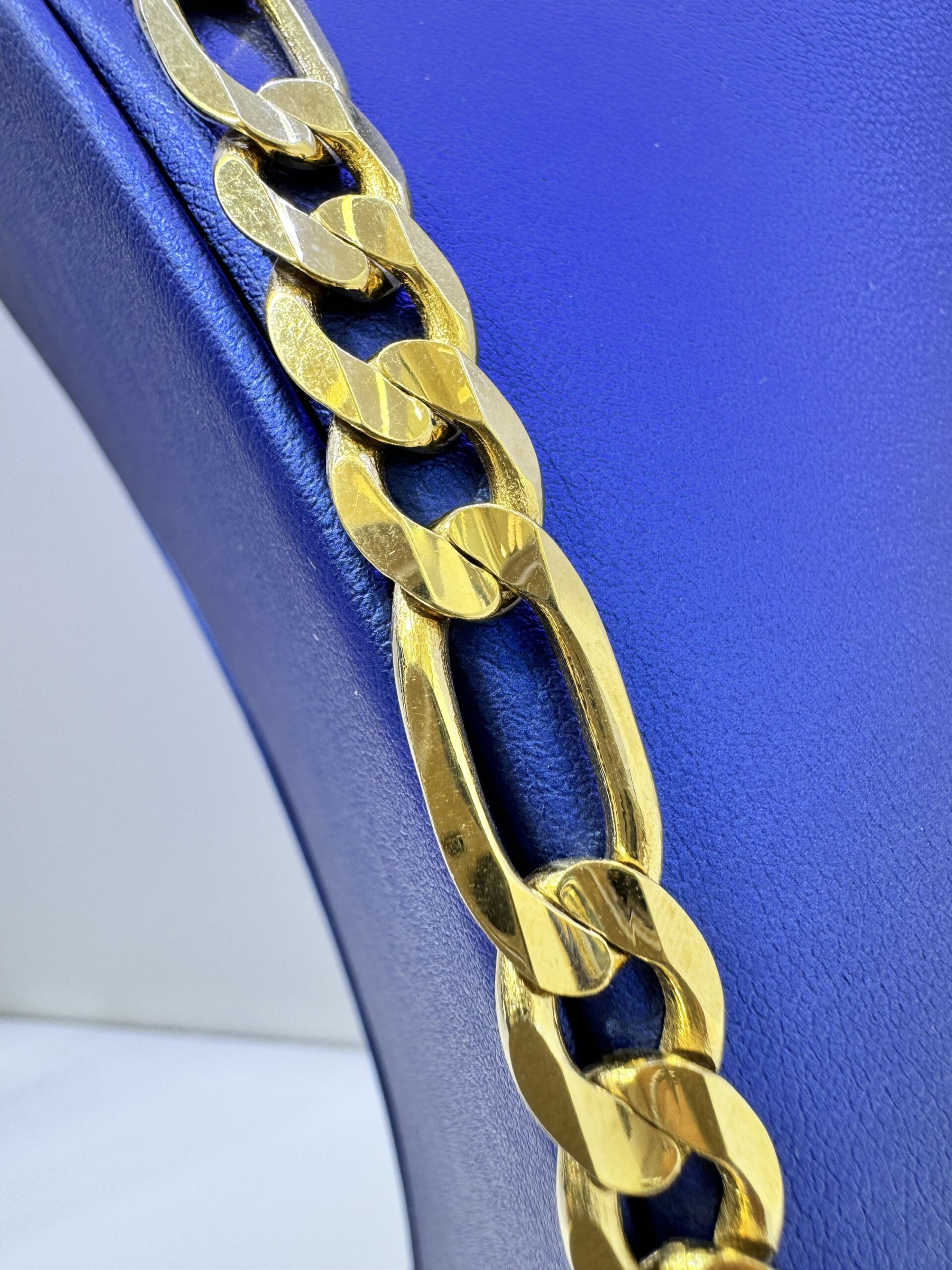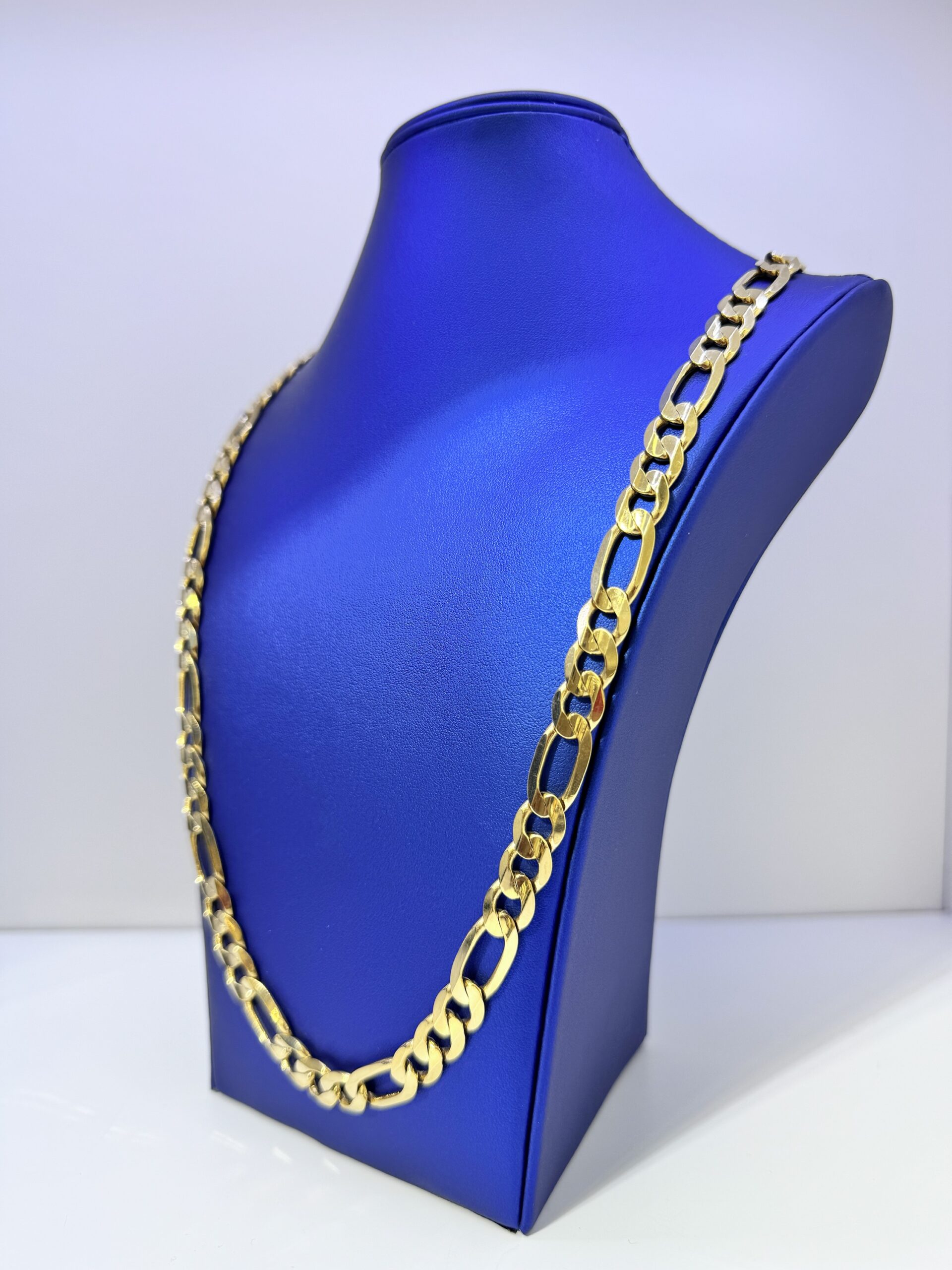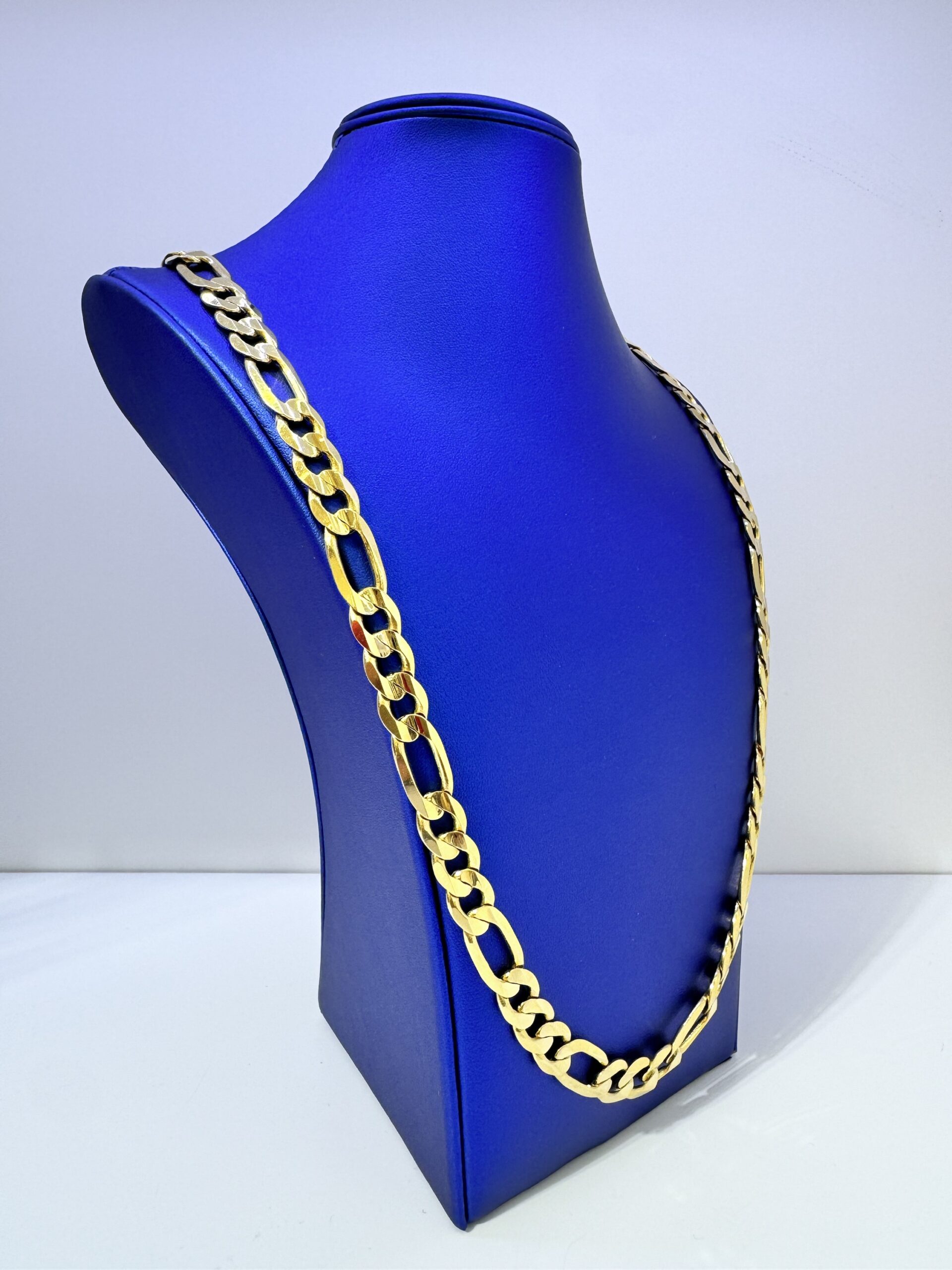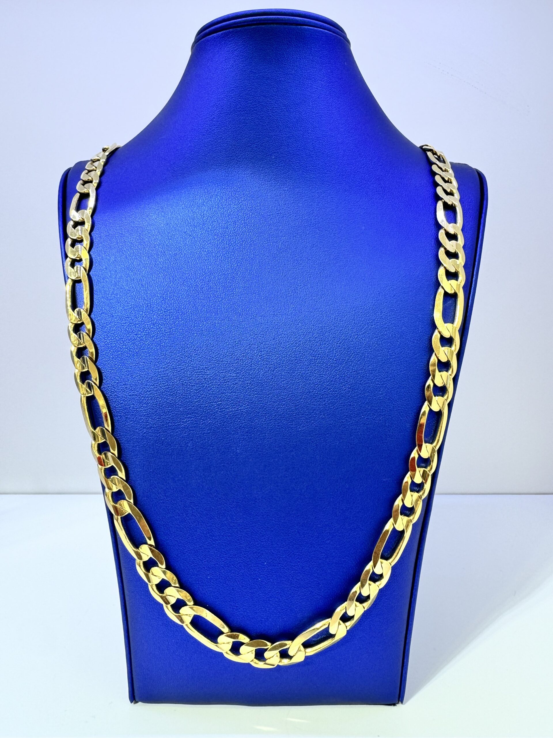10KT Gold Imported Italian 10MM Figaro 28” Necklace Smooth Butter Finish DiamondCut Edges Approx Gold Weight 81.3 Gram