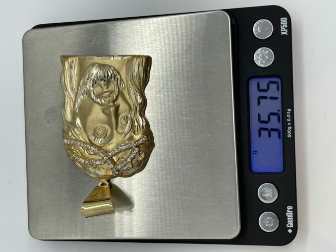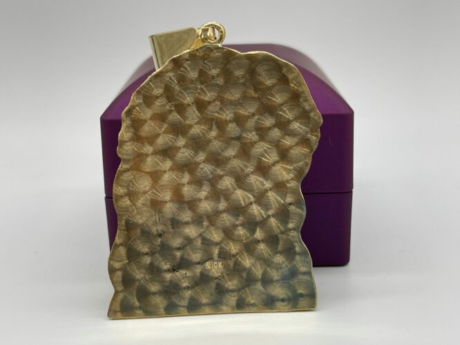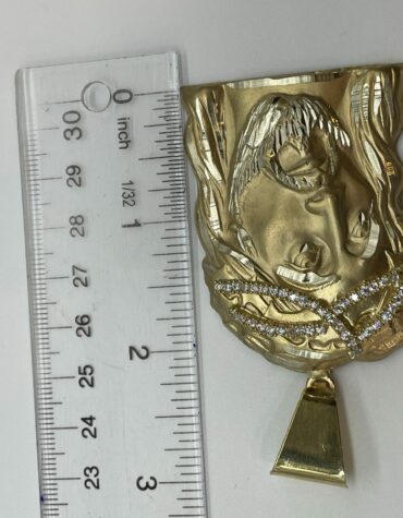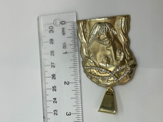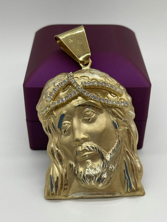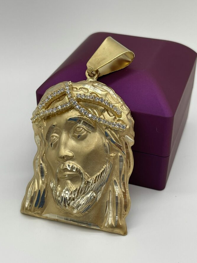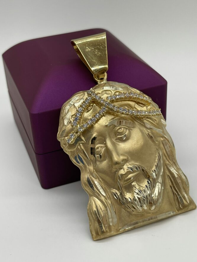 10Kt Gold Jesus Head Pendant 3 Inches Tall With Solid Back Frosted Finish Approx Gold Weight 35.75 Grams With Cz Stones On Jesus Throne