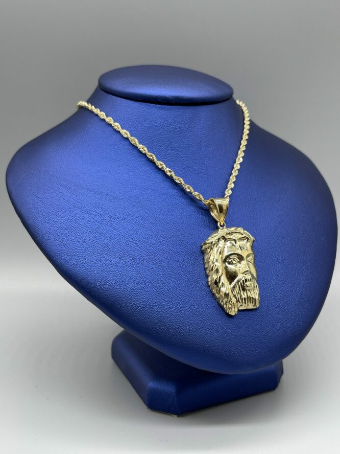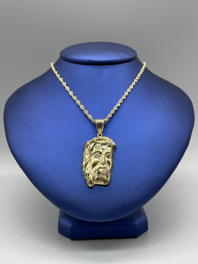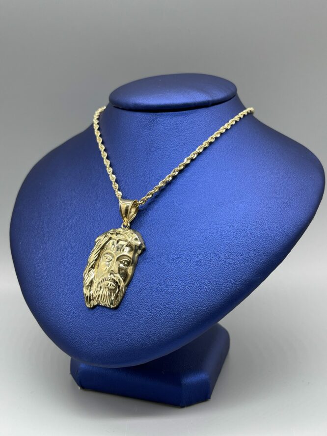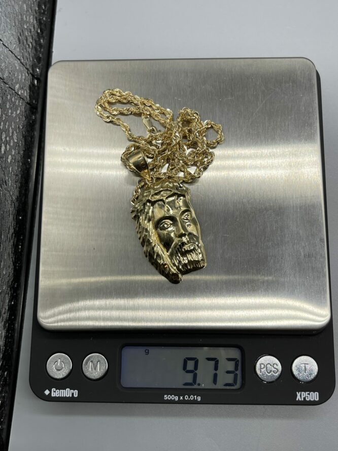 10KT Gold Jesus Pendant Combo Set Comes WiTh “22 Inch Rope Approx Gold Weight 9.73 Grams