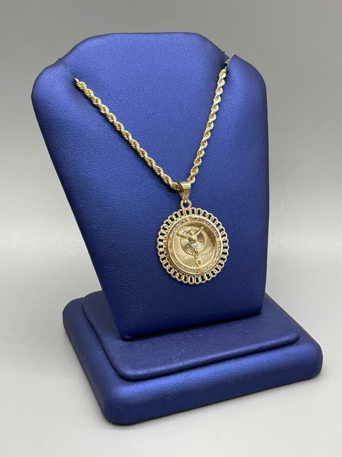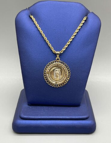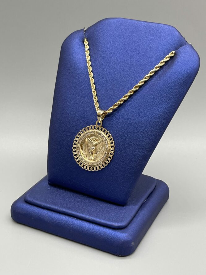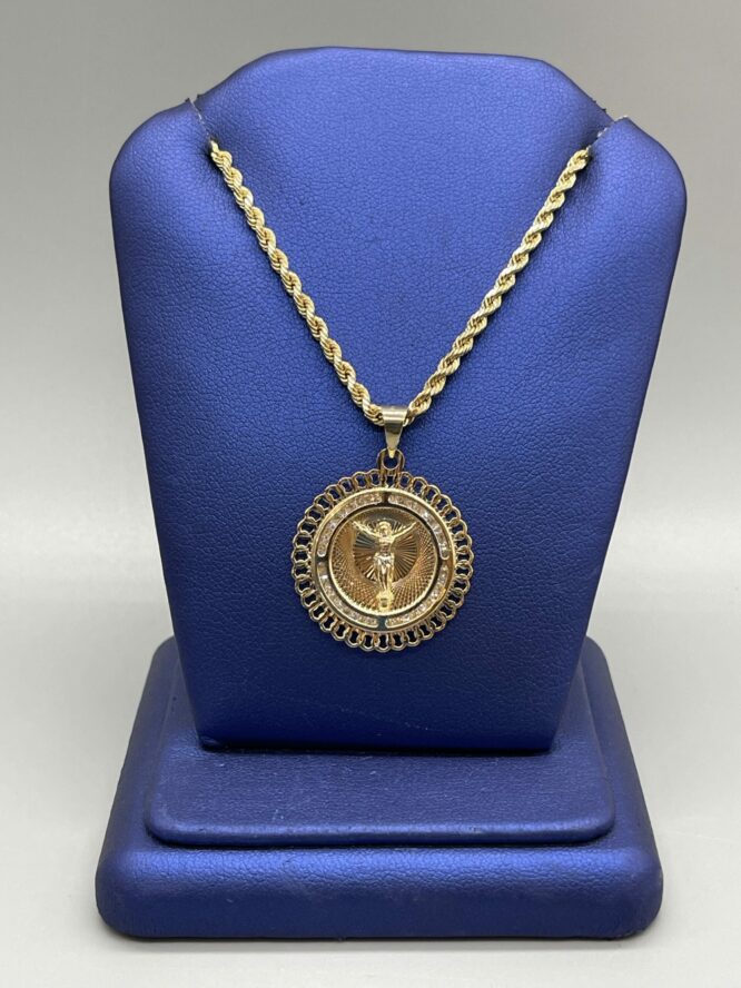 10KT Gold Jesus Pendant ComboSet Approx Gold Weight Of The Pendant 1.7 Grams 1.50″ Tall Includes Bell By 1″Wide Comes With 10KT 2MM DiaCut Rope Necklace 18″ Approx Gold Weight 2.7 Grams