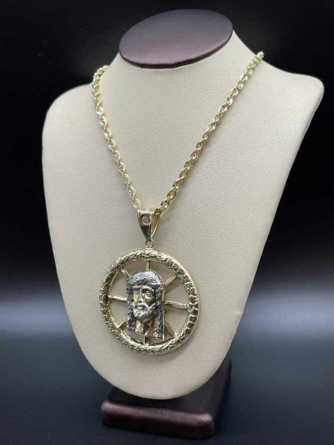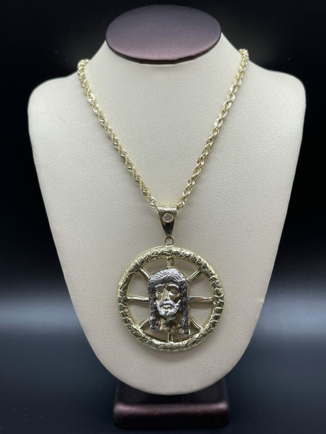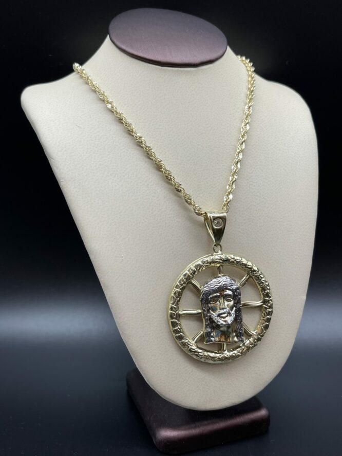 10KT Gold Jesus Pendant ComboSet With 4 MM 10KT Gold Rope 20″ length 2″ Tall Approx Gold Weight Altogether 11.23 Grams