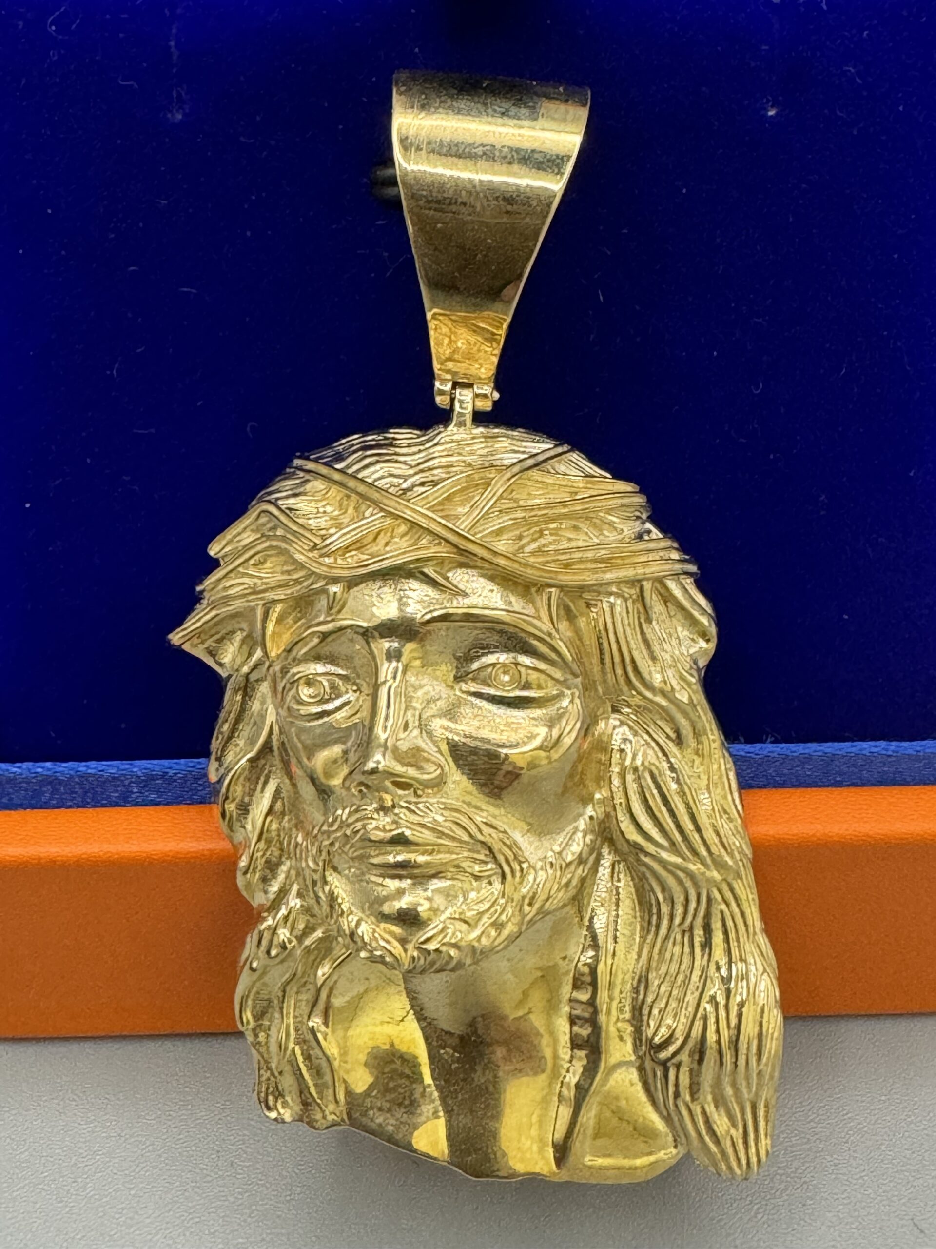 10KT Gold Jesus Pendant With Bigger Opening Bell Cage Back Approx Gold Weight 14.0 Gram 2.5″ Tall by 1.5″ Wide