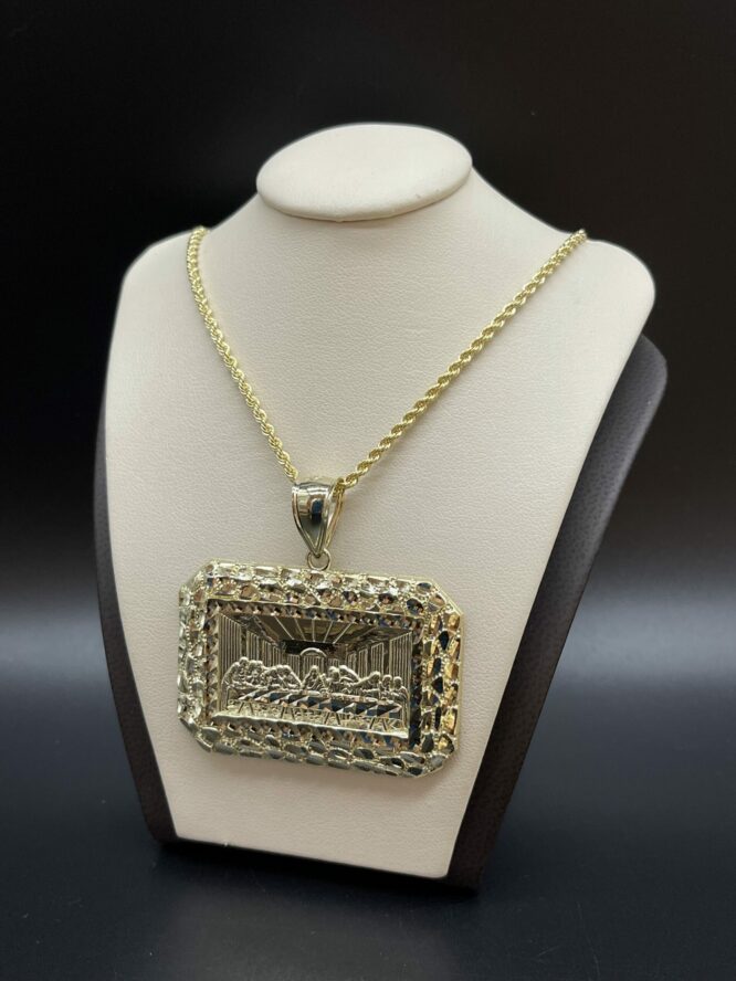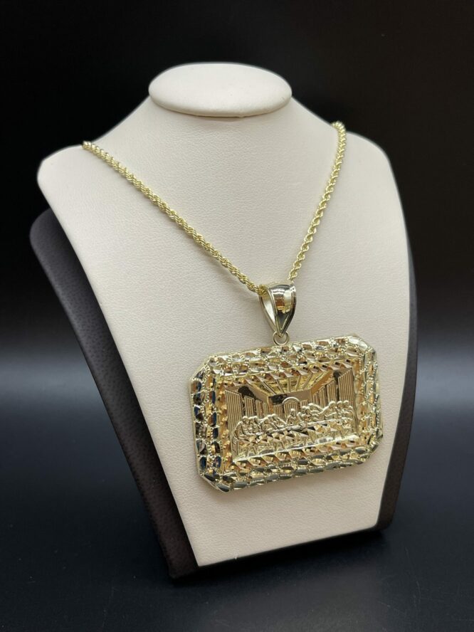 10KT Gold Last Supper Pendant ComboSet Comes With 24″ semi Solid Rope 2 MM Approx Gold Weight 3.06 Grams Pendant Approx Gold Weight 9.91 Grams 2.” Tall 2″ Round