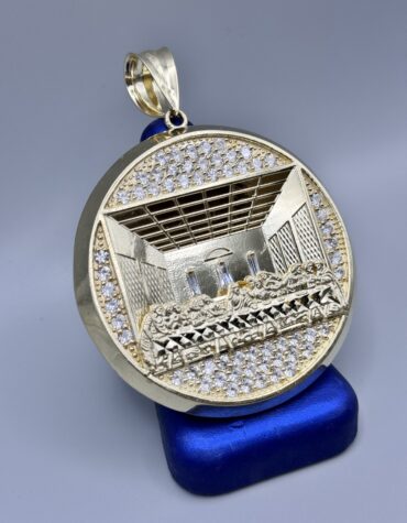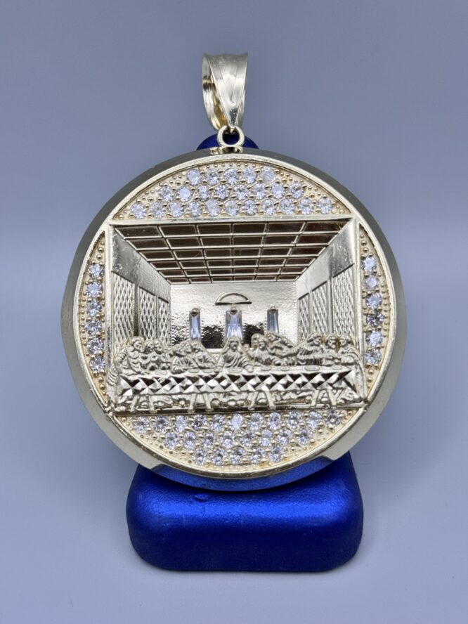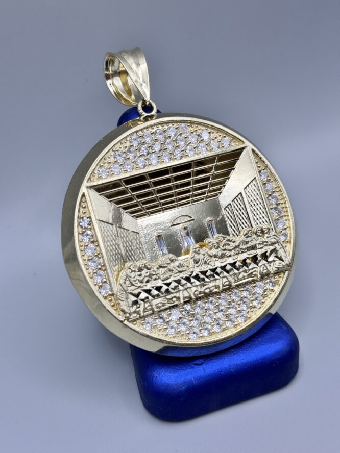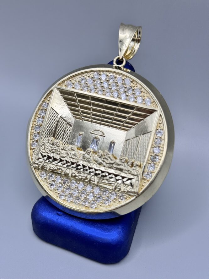 10KT Gold LastSupper Pendant With CZ 2.5″ Round by 3.5″ Tall Approx Gold Weight 33.08 Gram