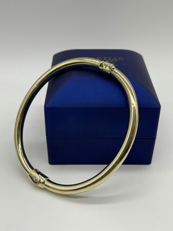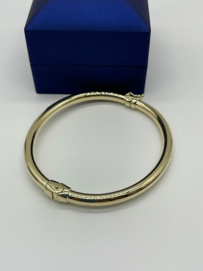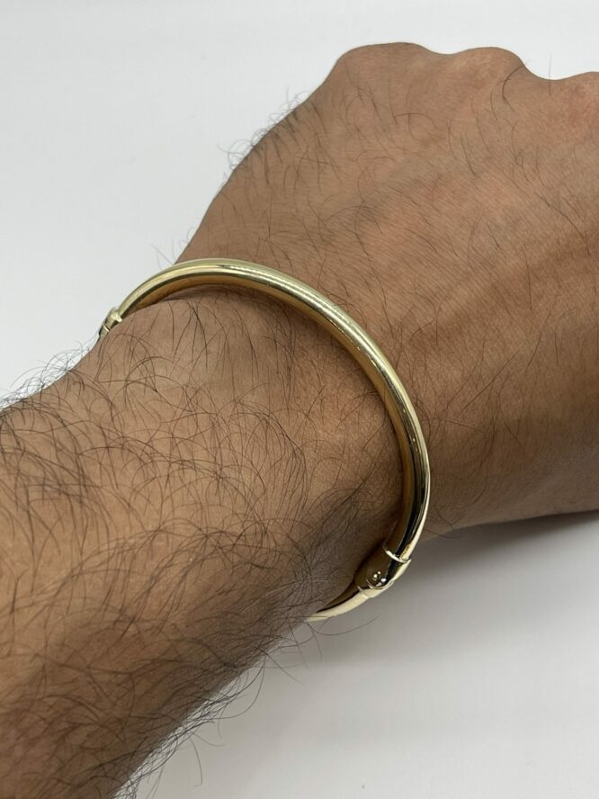 10KT Gold Mens Bangle Size 8.5″ Wrist Size Flex Design Easy To Put On And Off With Double Security Latch 3.0″ Size Approx Gold Weight 9.5 Grams