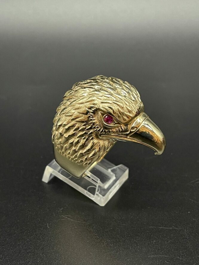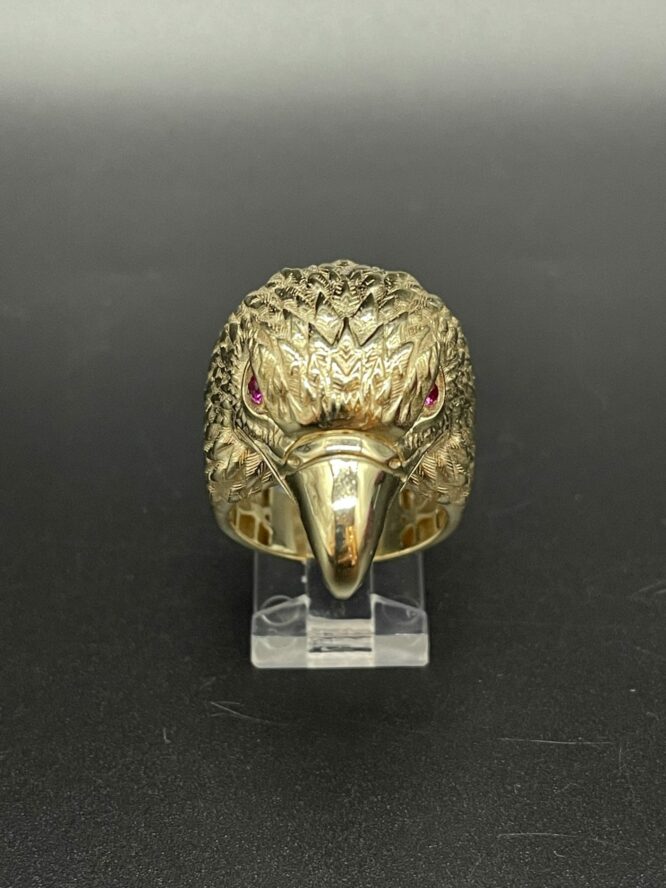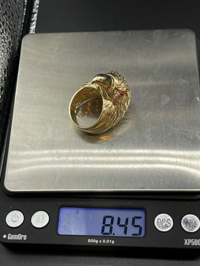 10KT Gold Mens Eagle Ring With Red Ruby Eyes Size 10 Sizing Available Approx Gold Weight 8.45 Gram