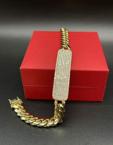 14KT Solid Gold Mens 5.50CT Diamond ID Cuban Bracelet