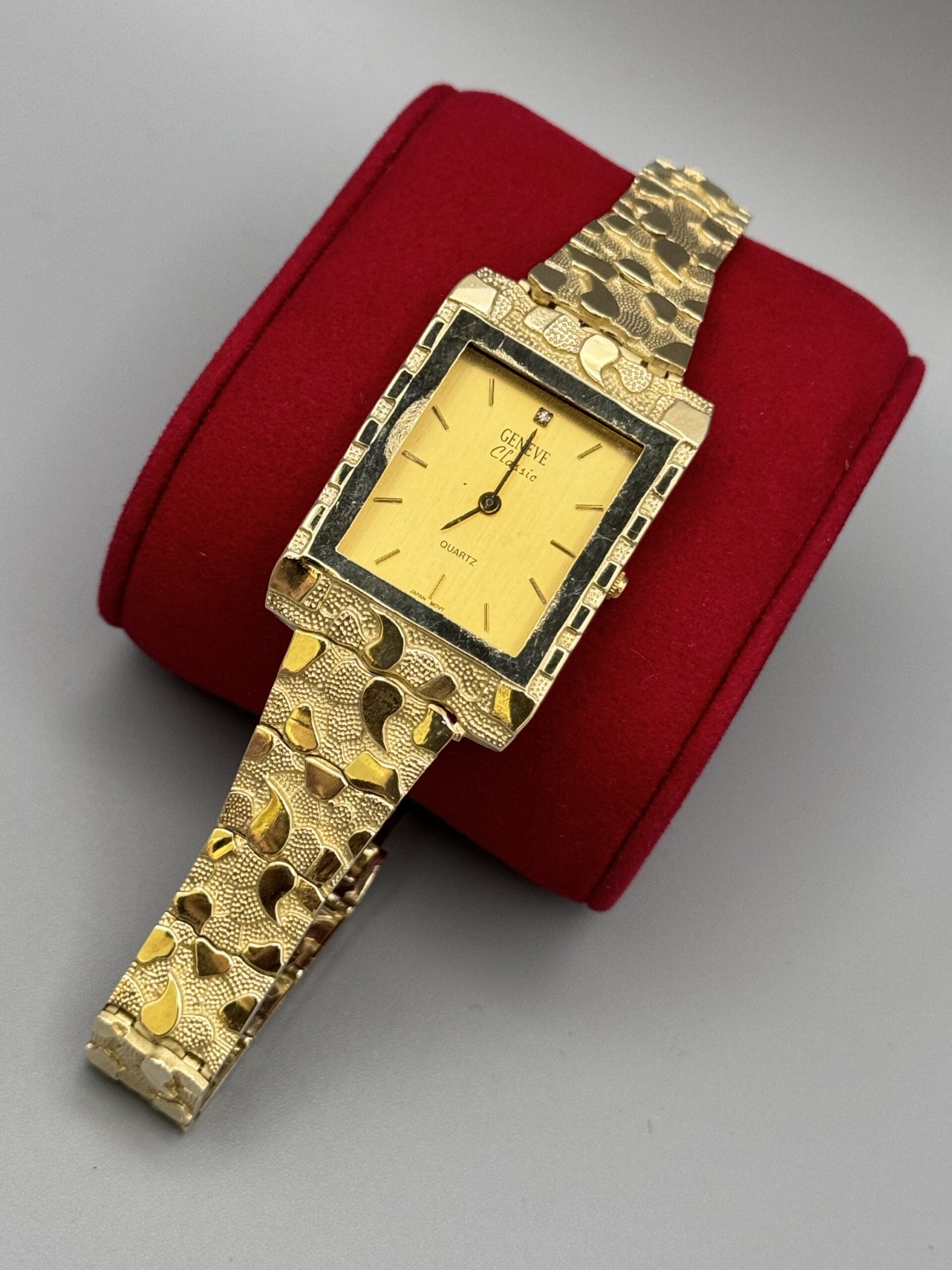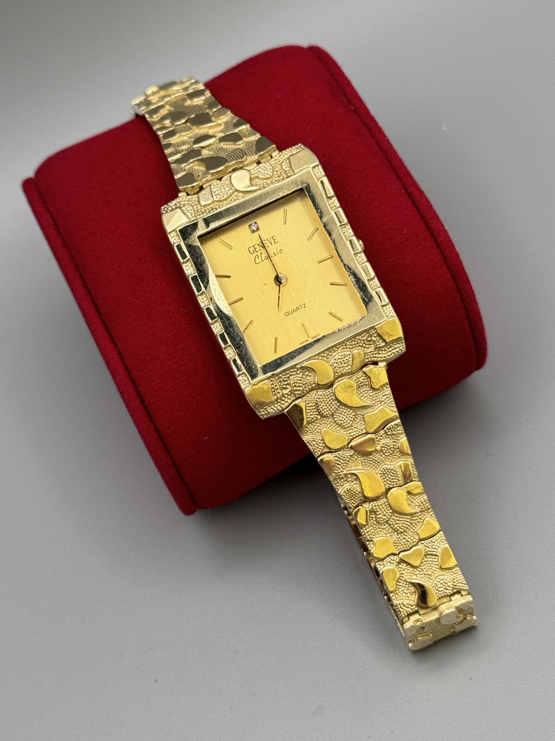 Elevate your style with this stunning 10KT Gold Nugget Watch. Size 9″, adjustable, and made from solid gold, it weighs approx. 40.6 grams, featuring a sleek 28MM head. Timeless luxury awaits!