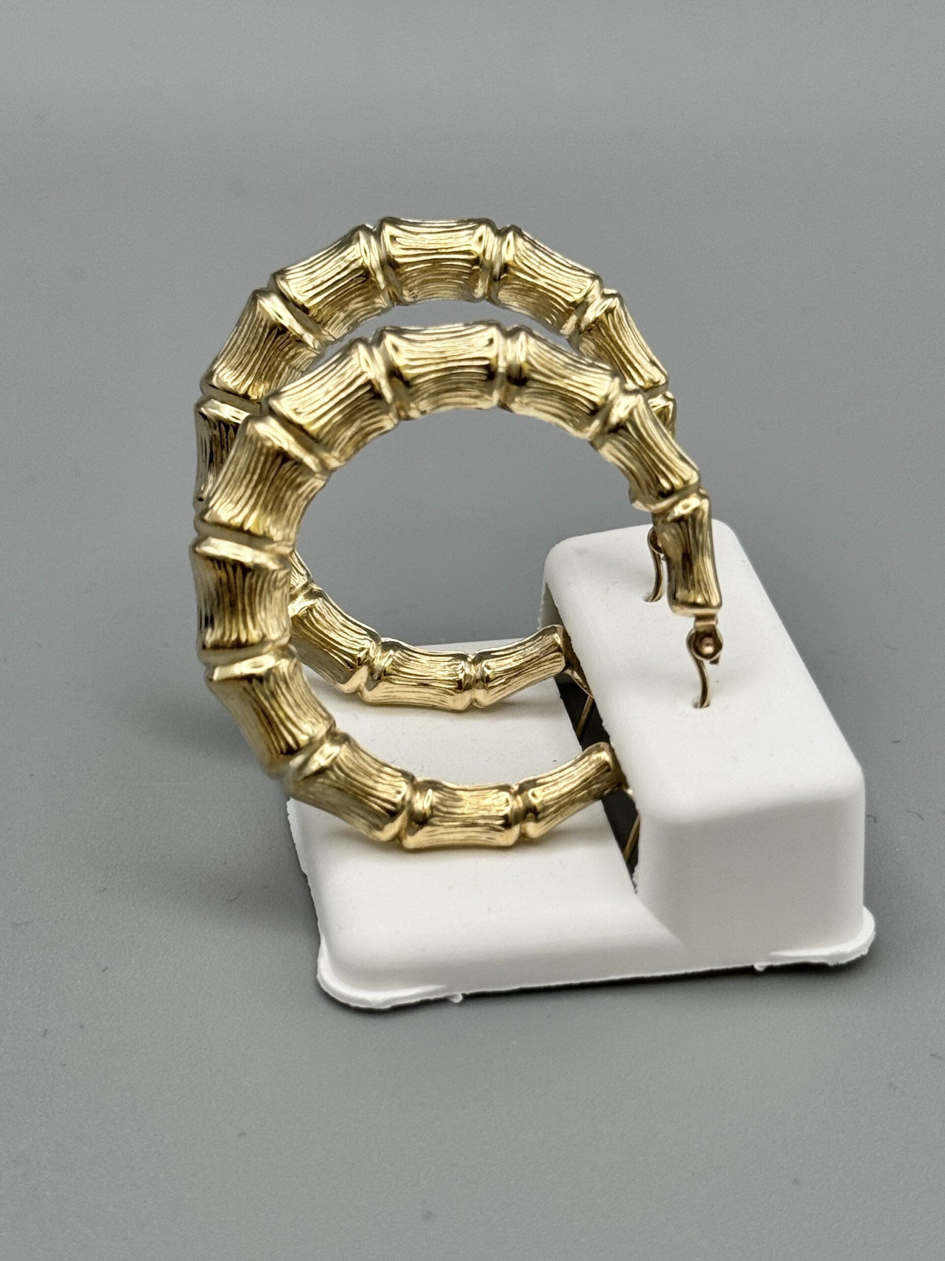 10KT Gold Old School Bamboo Earrings 1.5″ Round Approx Gold Weight 4.3 Gram 6.5 MM Width