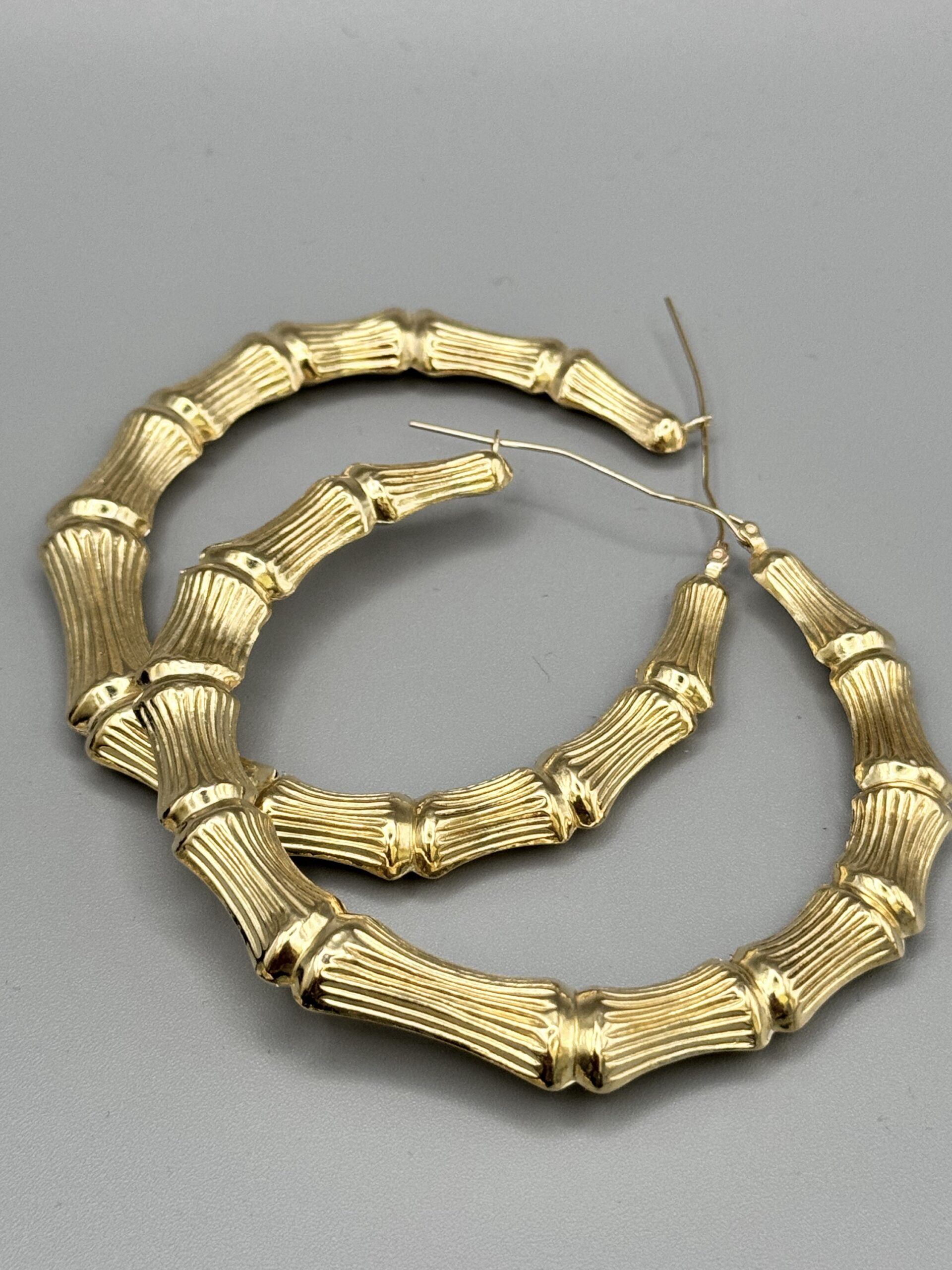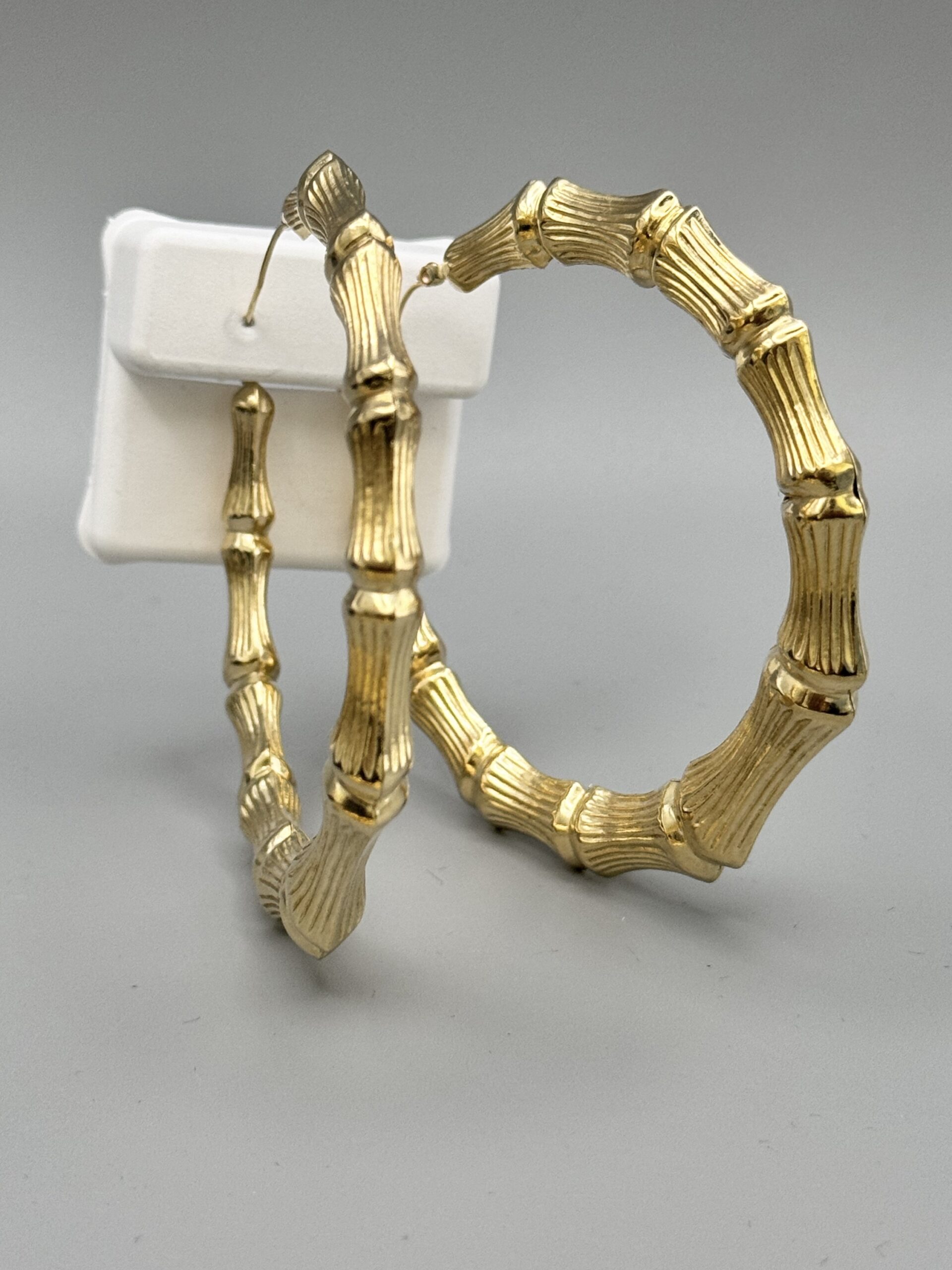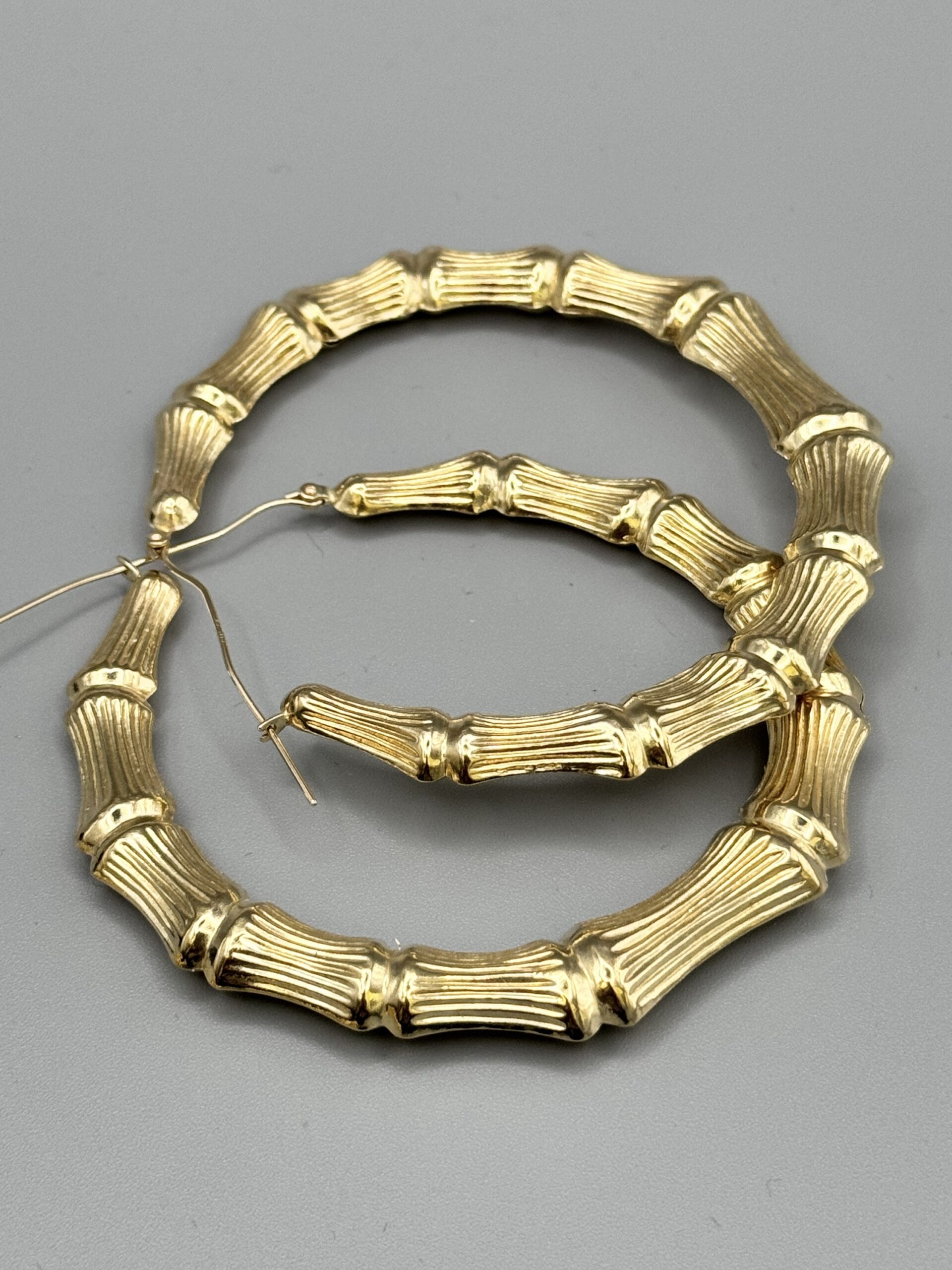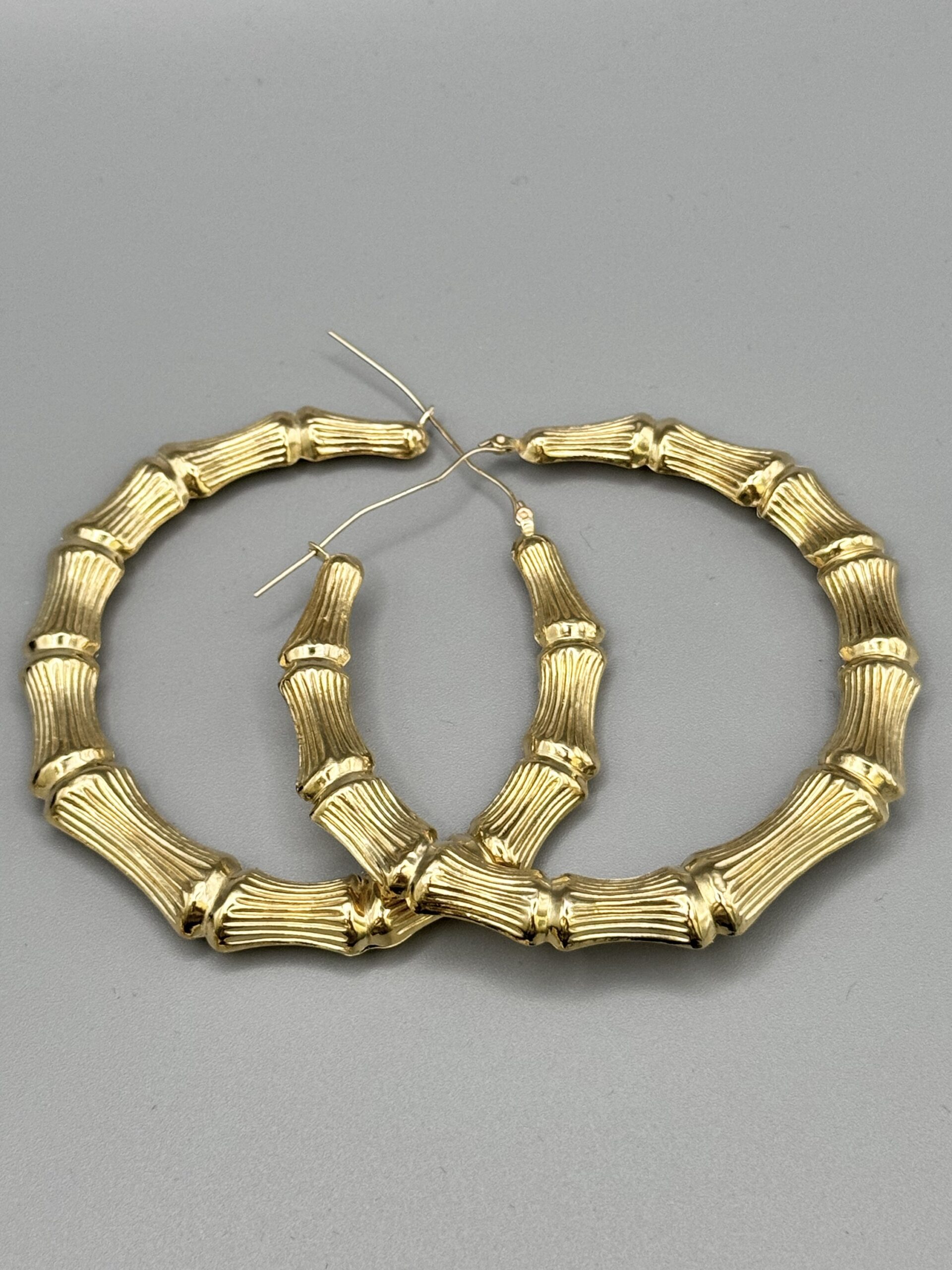 10KT Gold Old School Jumbo Bamboo Earrings 3″ Round Approx Gold Weight Gram 7 MM Width 14.8 Gram